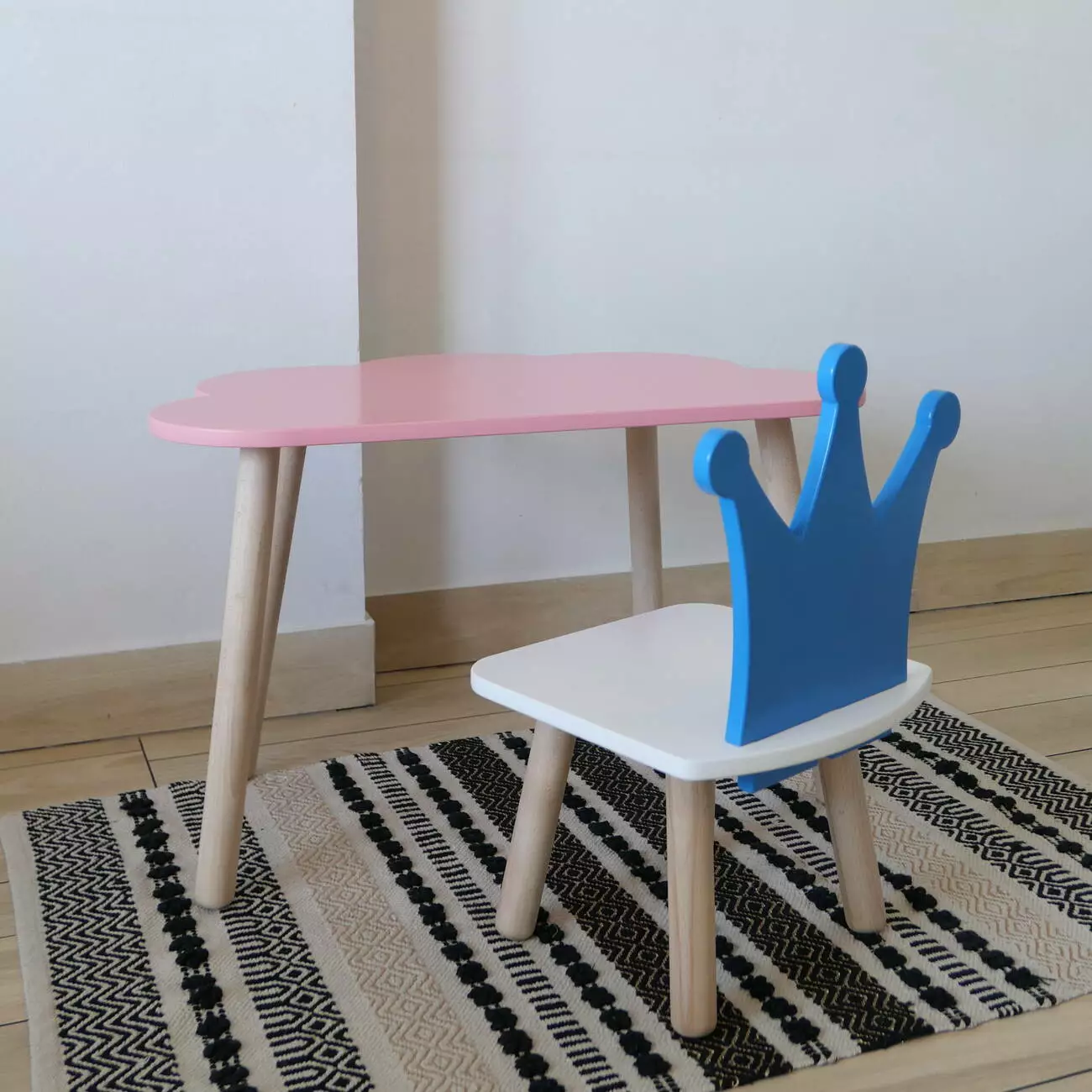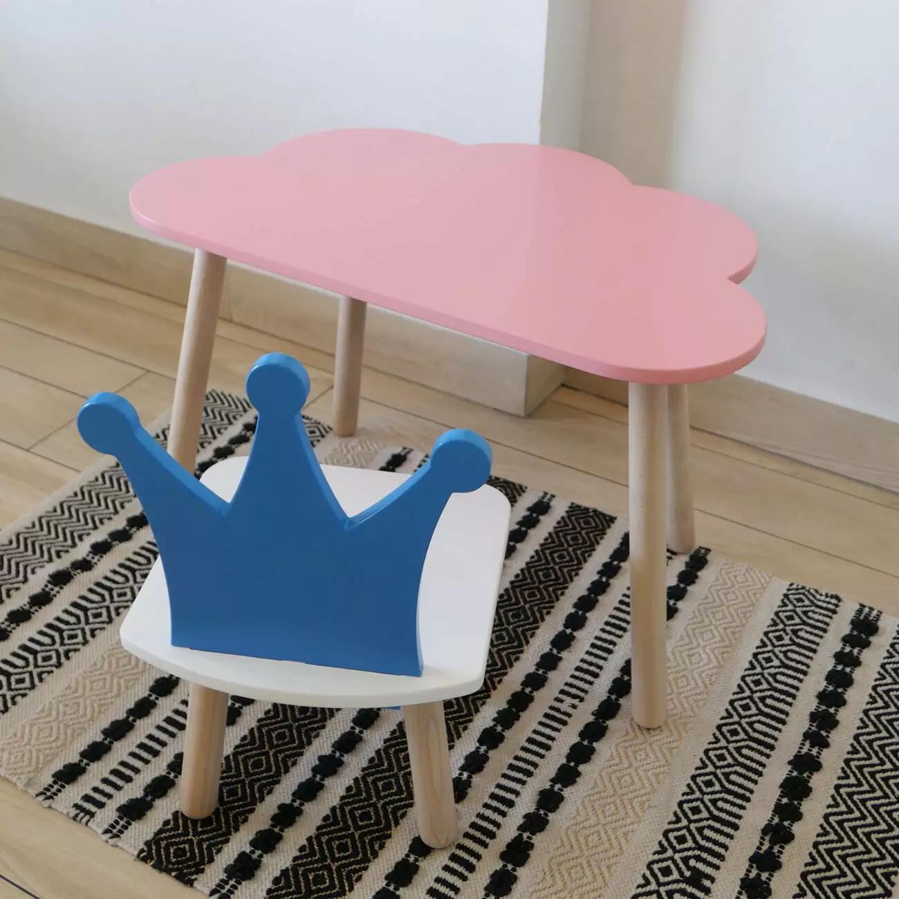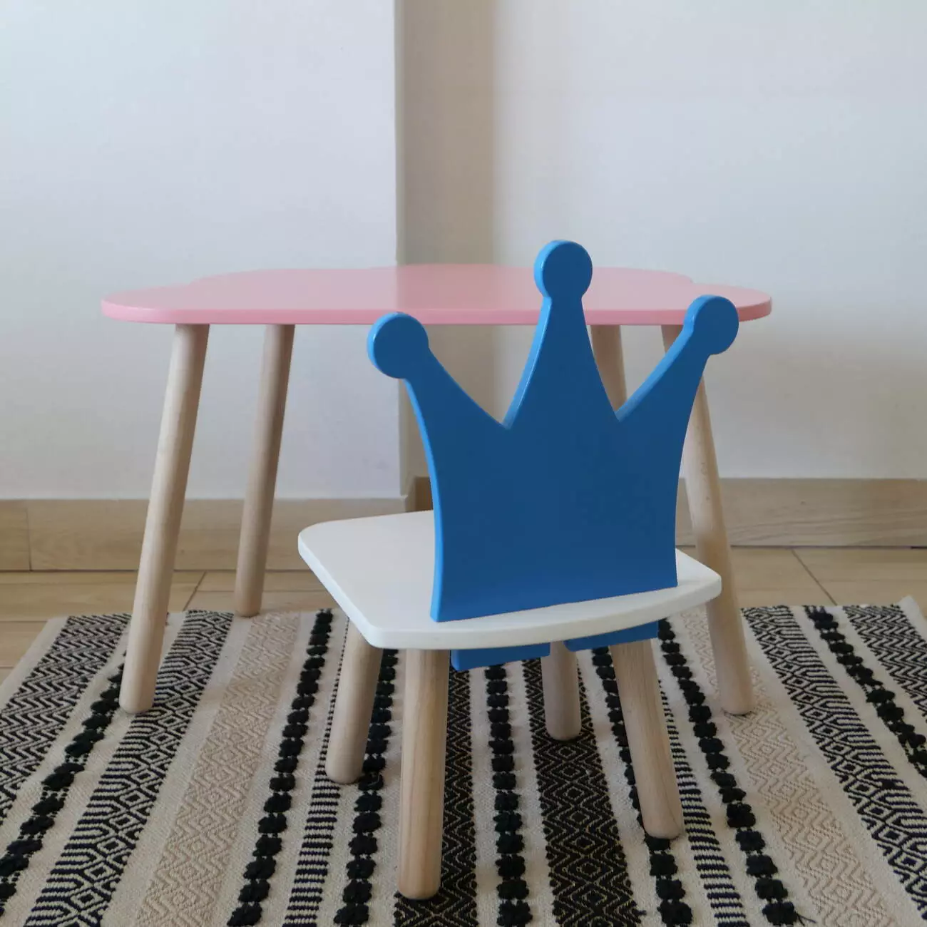 Комплект стіл та стул дитячий ChildWood - Set Стіл рожевий хмаринка + стілець білий блакитний Корона (Фанера)