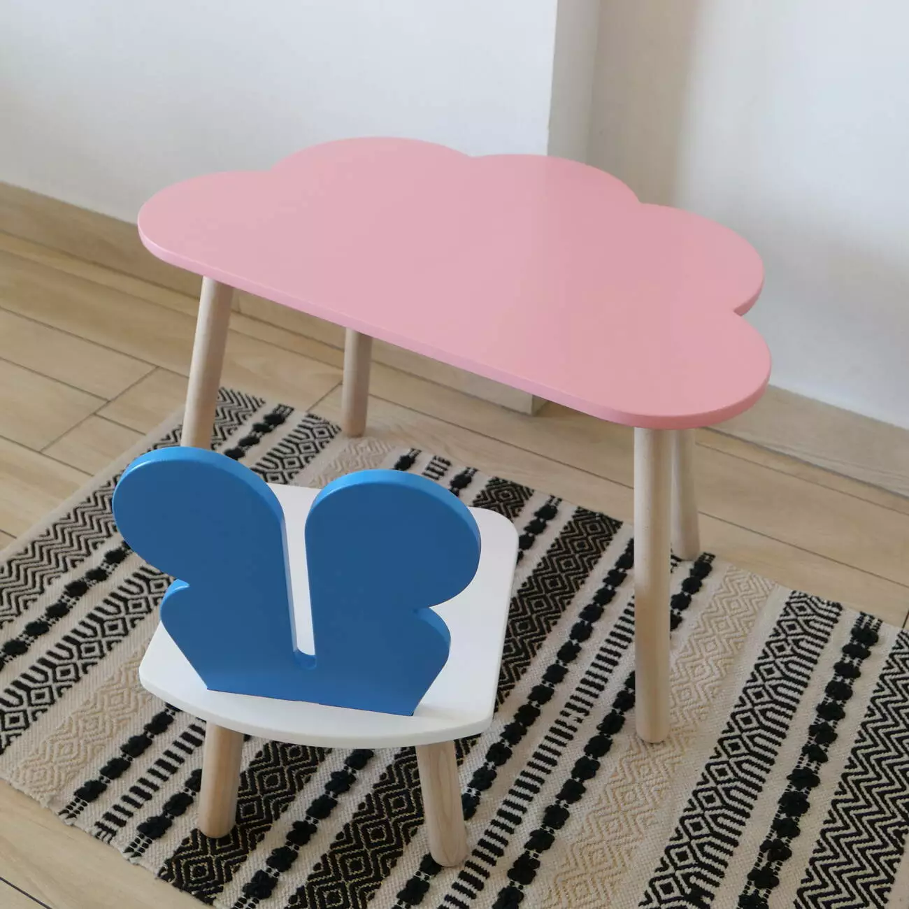 Комплект стіл та стул дитячий ChildWood - Set Стіл рожевий хмаринка + стілець білий блакийний Метелик (Фанера)