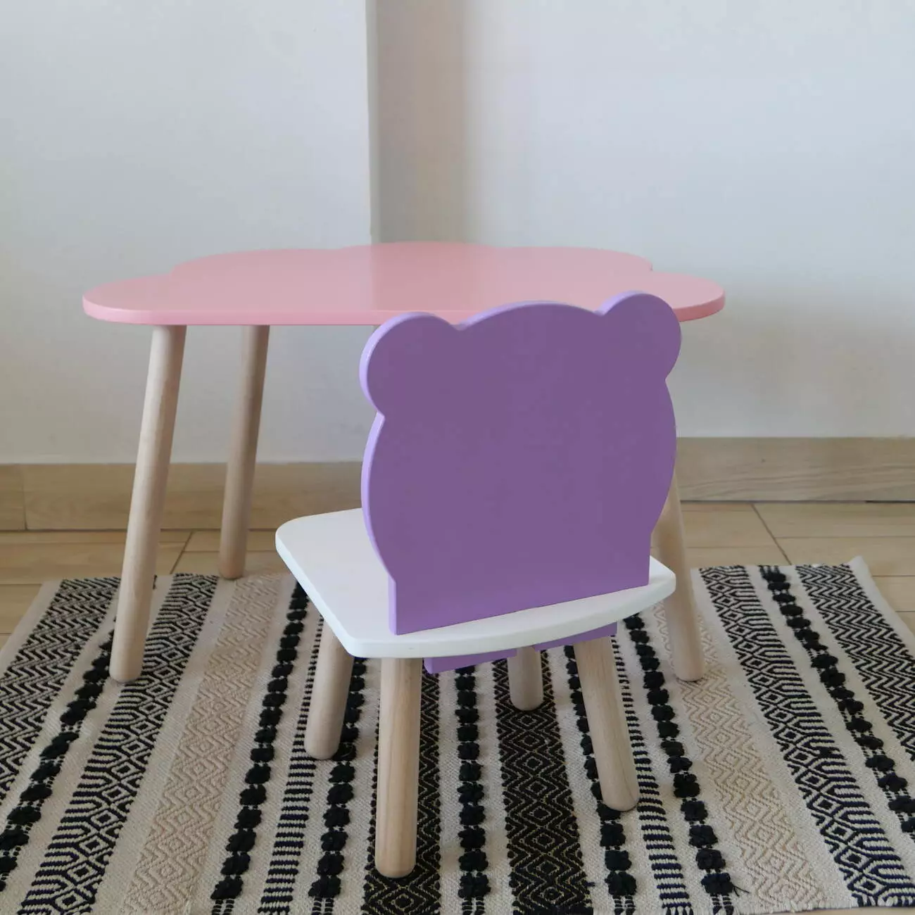Комплект стіл та стул дитячий ChildWood - Set Стіл рожевий хмаринка + стілець білий бузковий Ведмедик (Фанера)