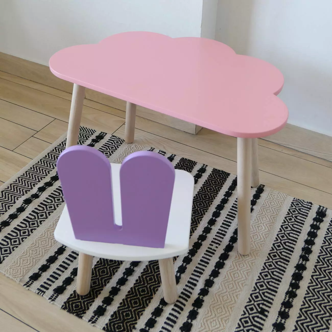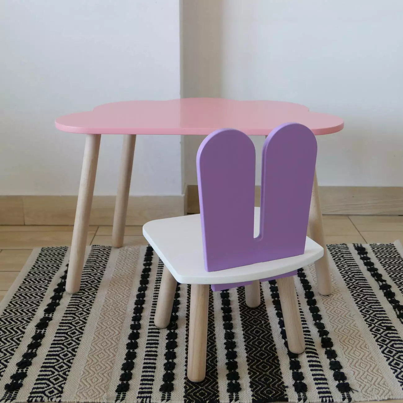 Комплект стіл та стул дитячий ChildWood - Set Стіл рожевий хмаринка + стілець білий бузковий Зайчик (Фанера)