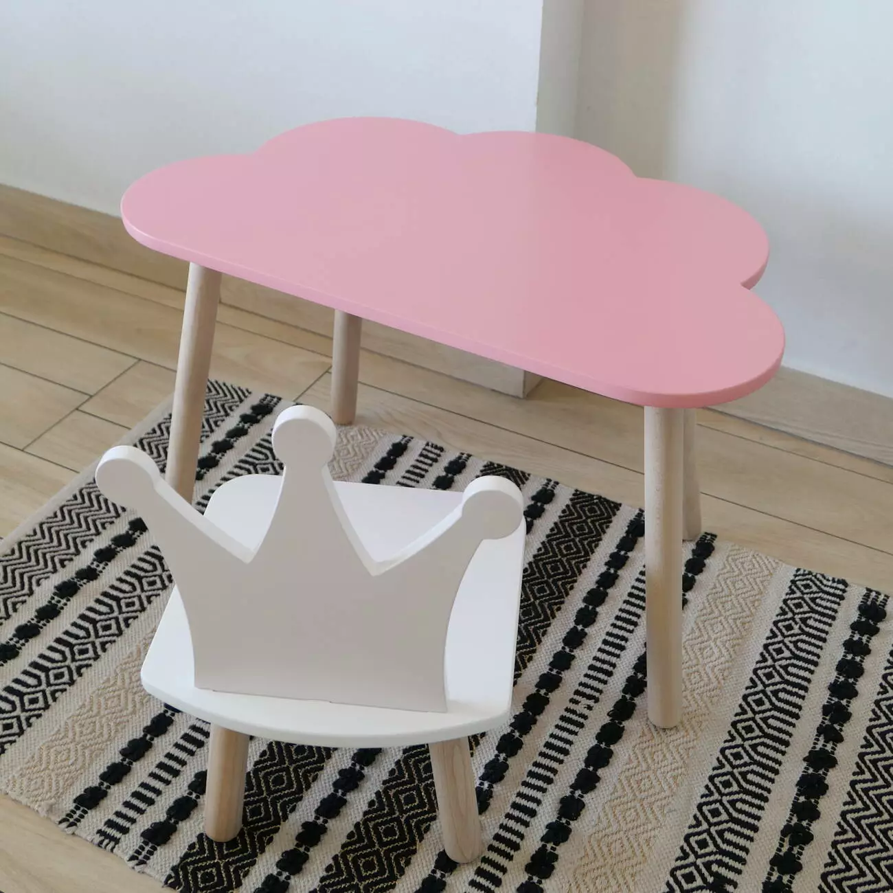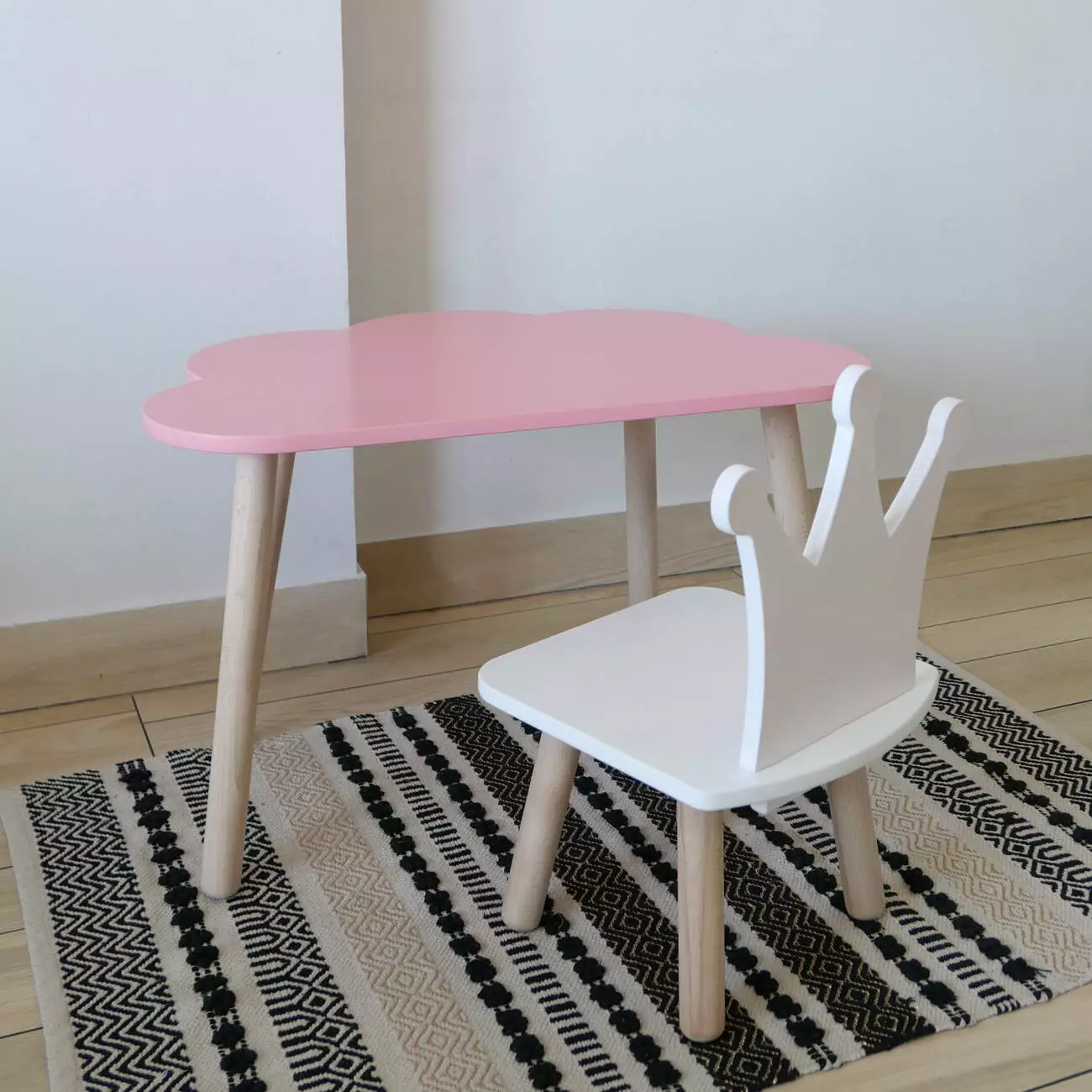 Комплект стіл та стул дитячий ChildWood - Set Стіл рожевий хмаринка + стілець білий Корона (Фанера)