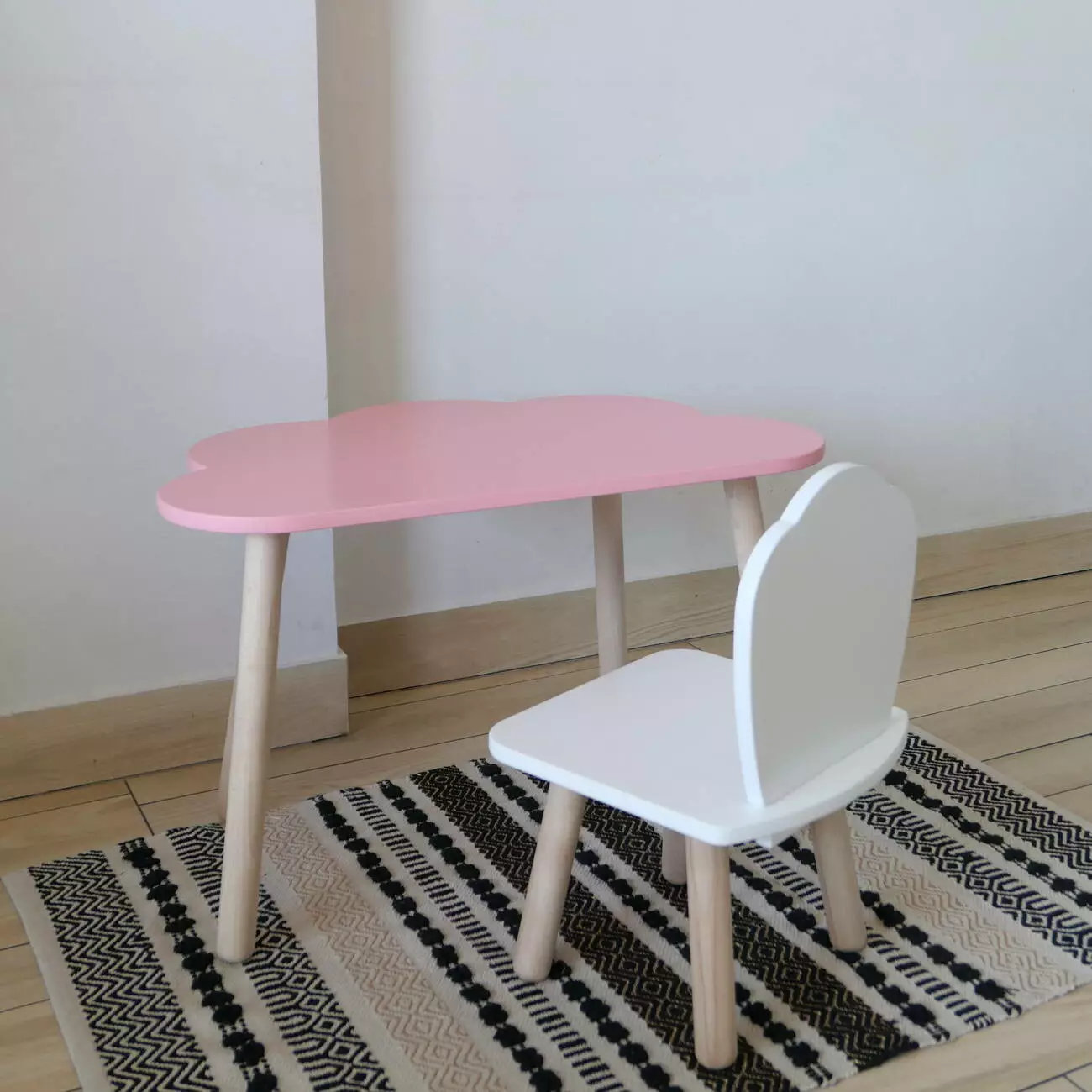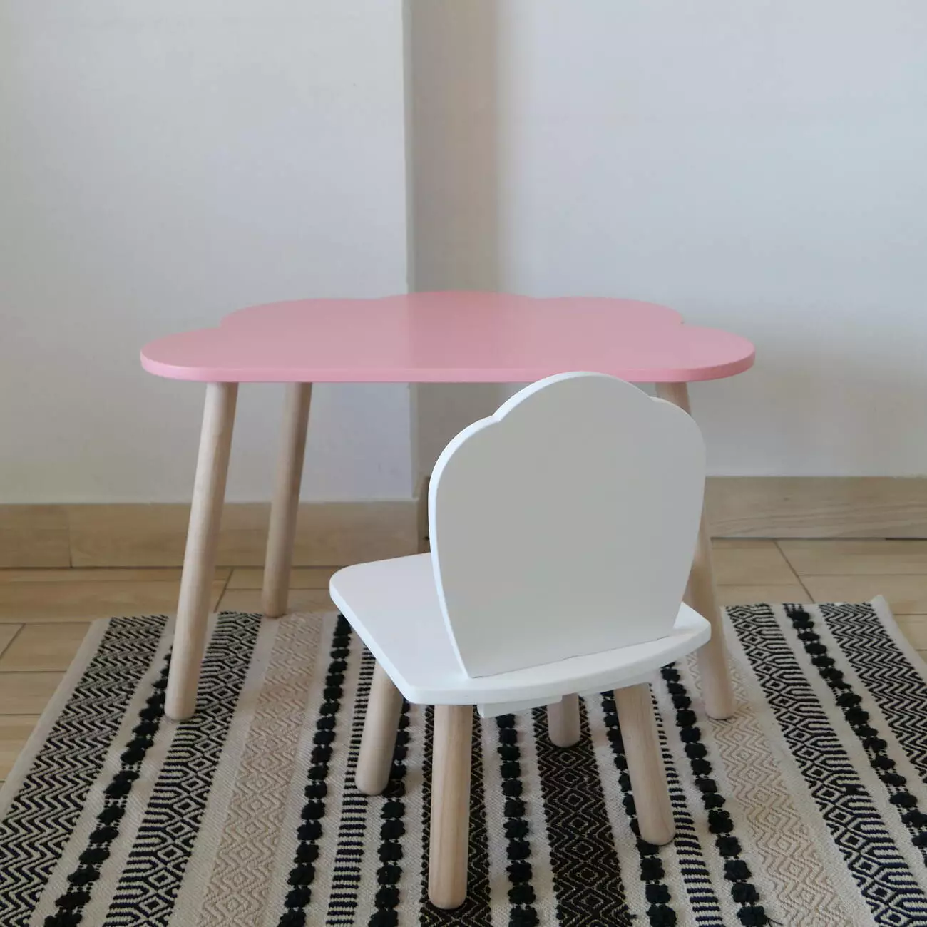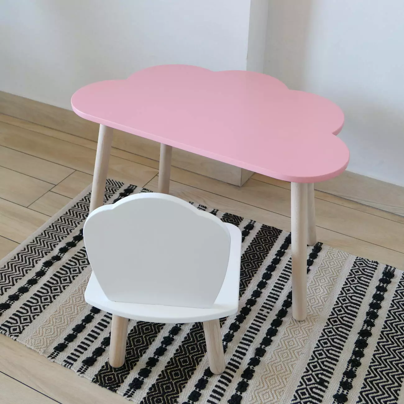Комплект стіл та стул дитячий ChildWood - Set Стіл рожевий хмаринка + стілець білий Мушля (Фанера)
