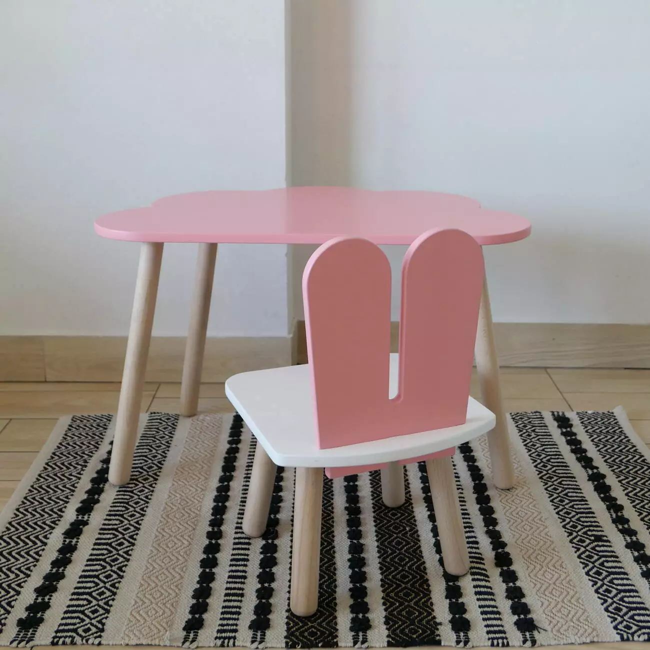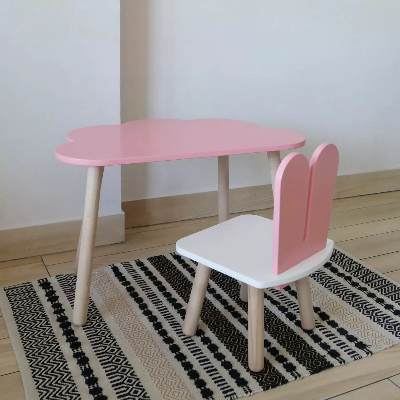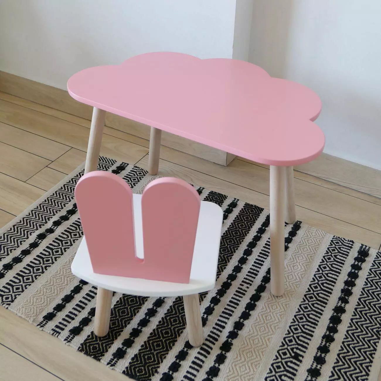 Комплект стіл та стул дитячий ChildWood - Set Стіл рожевий хмаринка + стілець білий рожевий Зайчик (Фанера)