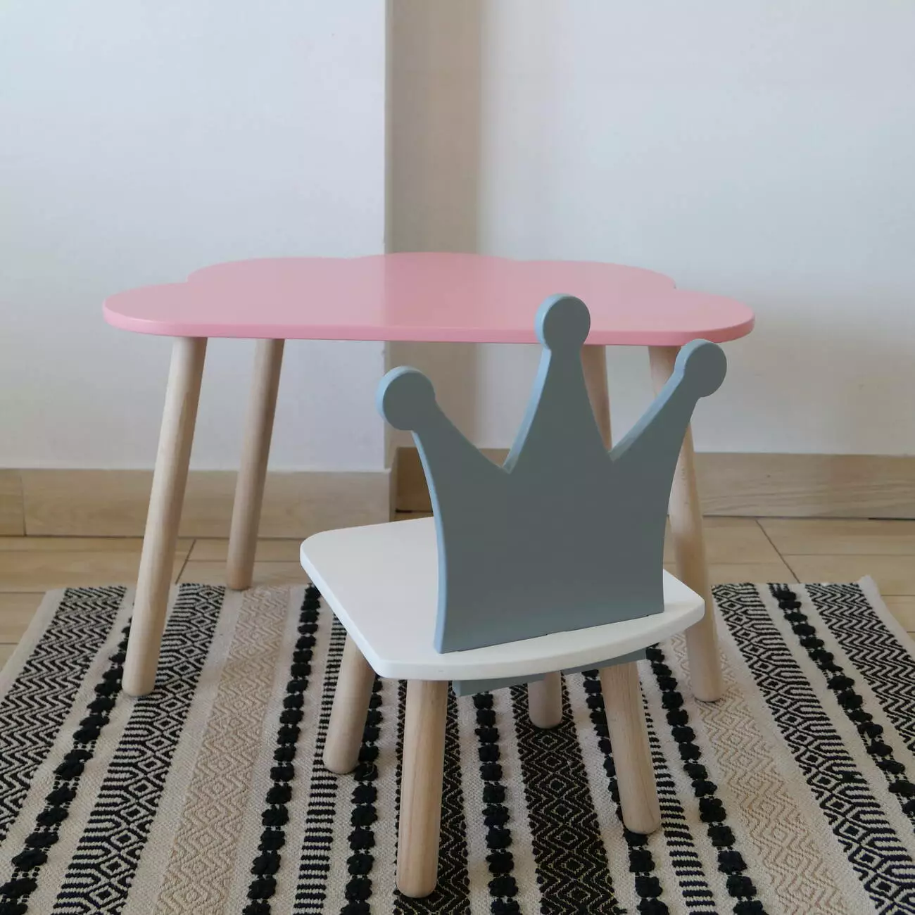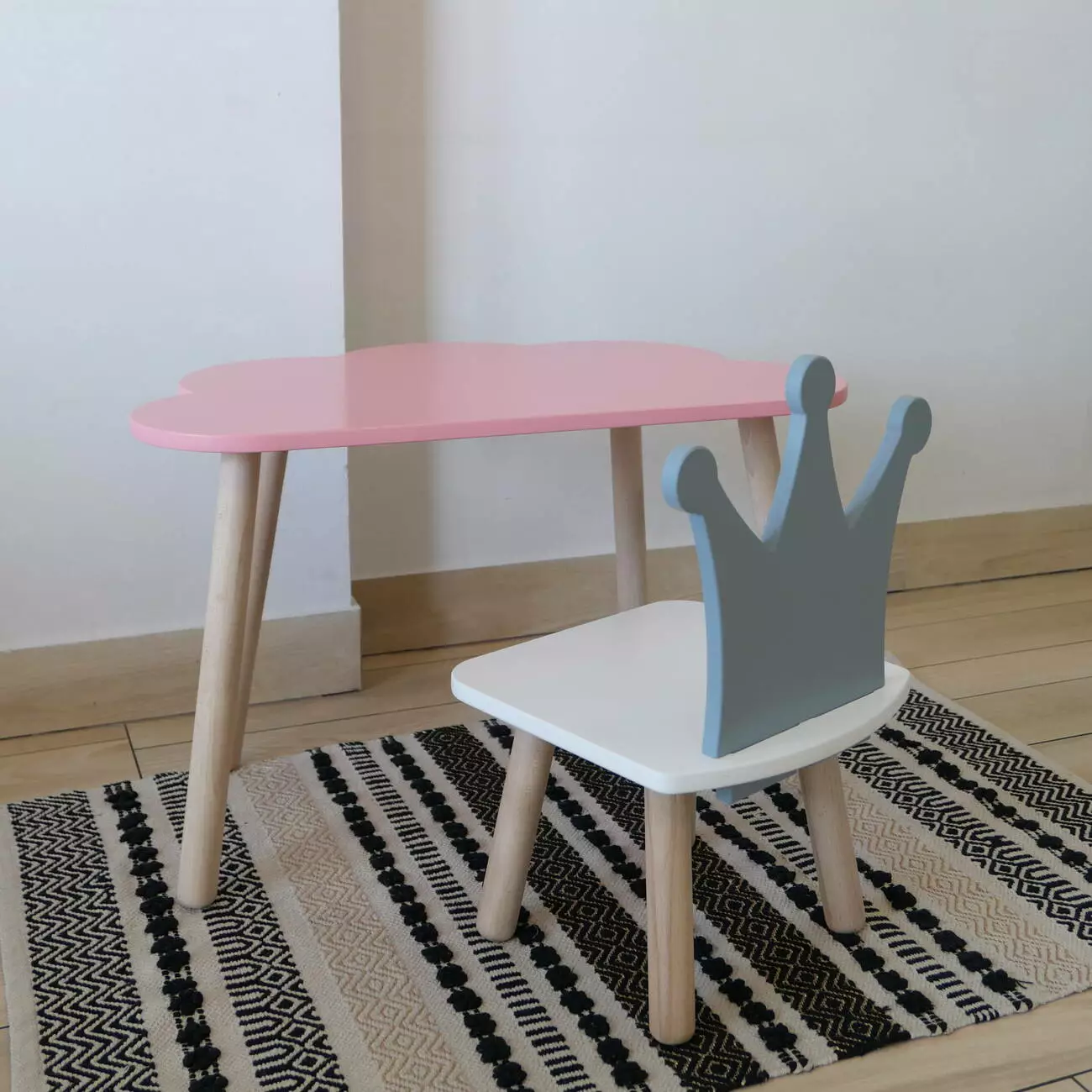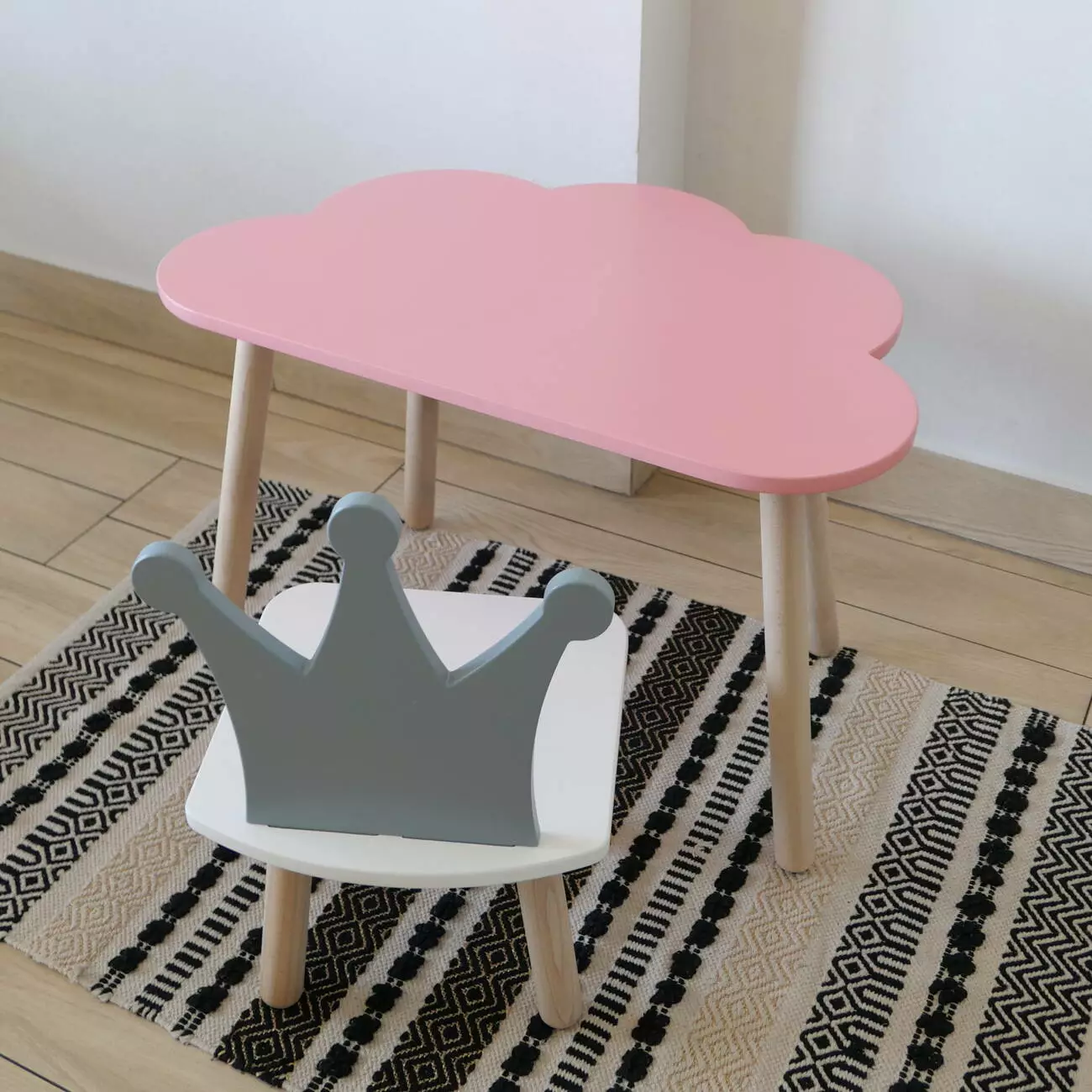 Комплект стіл та стул дитячий ChildWood - Set Стіл рожевий хмаринка + стілець білий сірий Корона (Фанера)