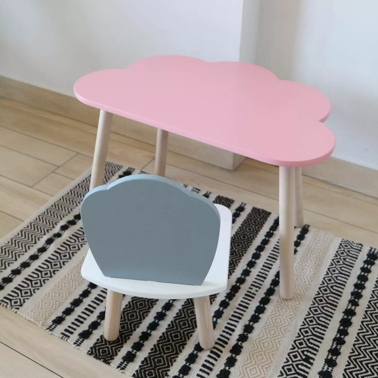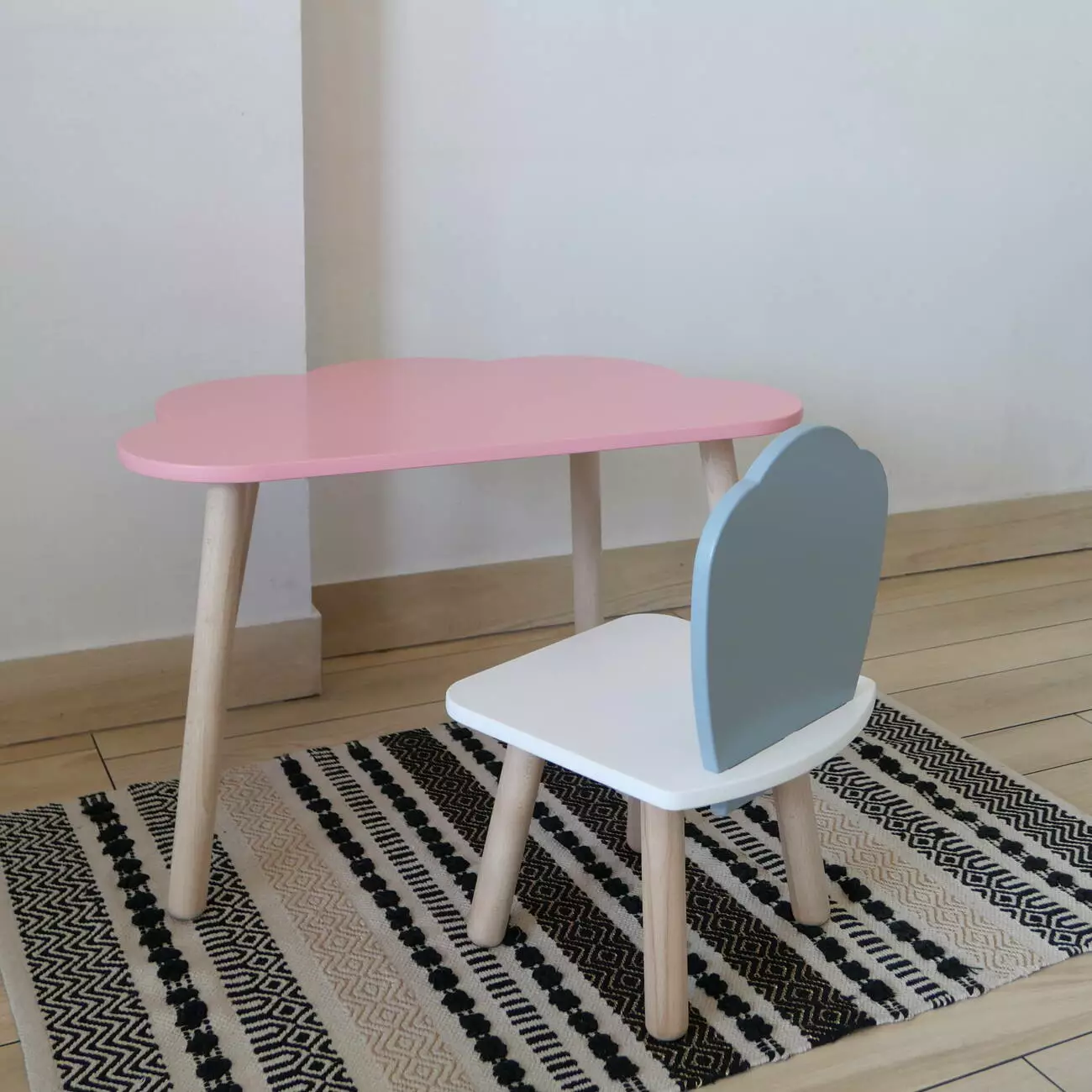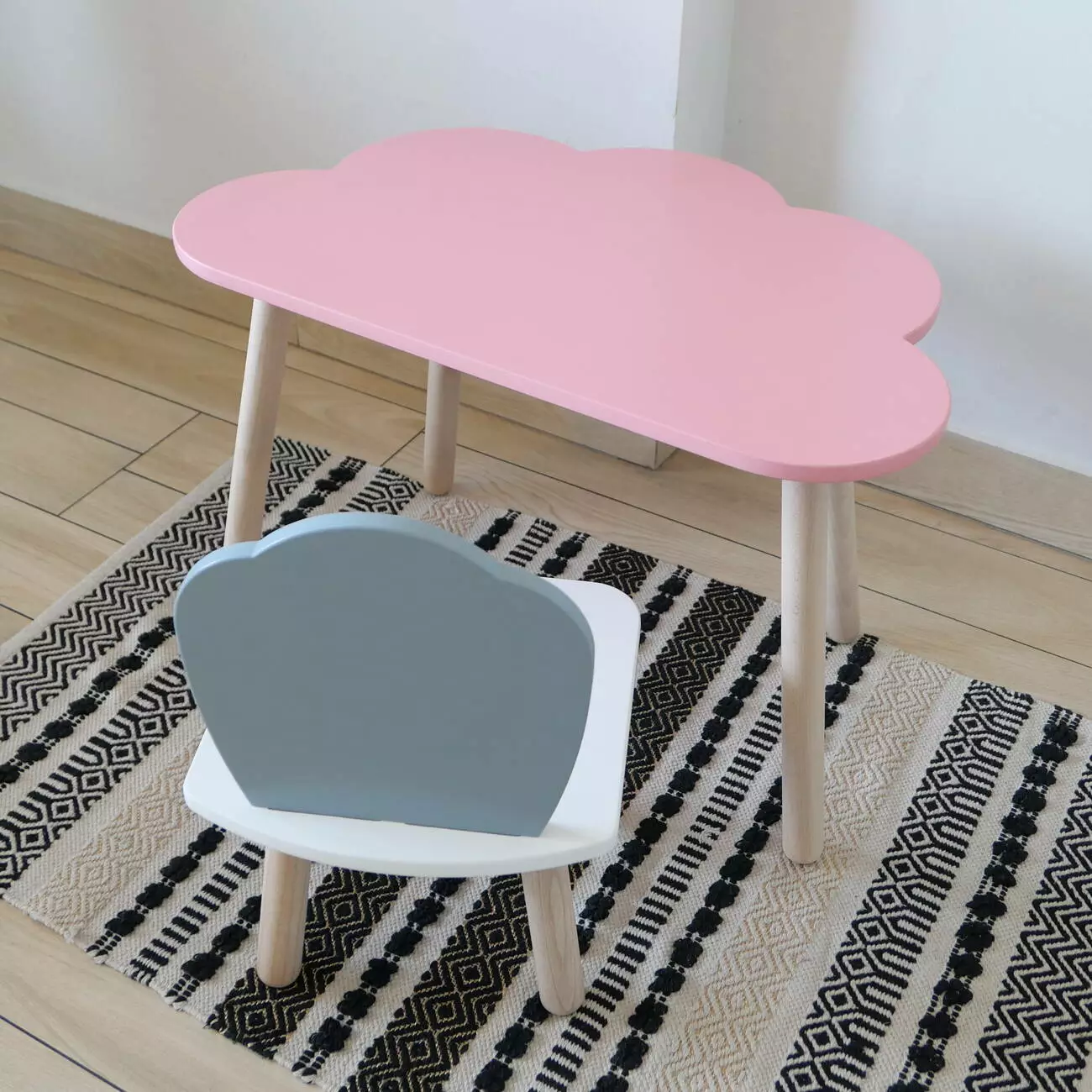 Комплект стіл та стул дитячий ChildWood - Set Стіл рожевий хмаринка + стілець білий сірий Мушля (Фанера)