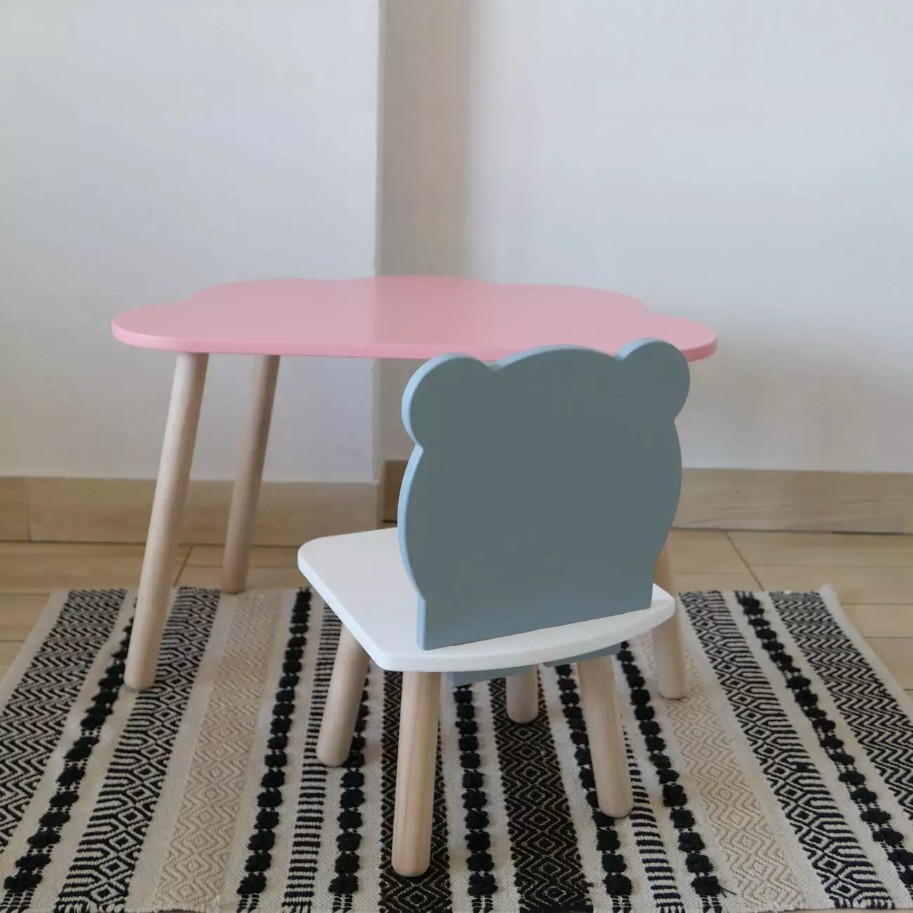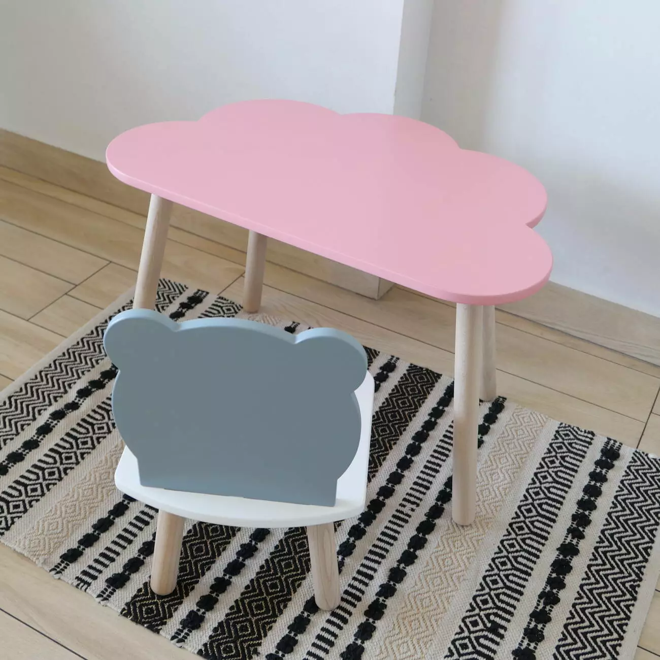 Комплект стіл та стул дитячий ChildWood - Set Стіл рожевий хмаринка + стілець білий сірий Ведмедик (Фанера)