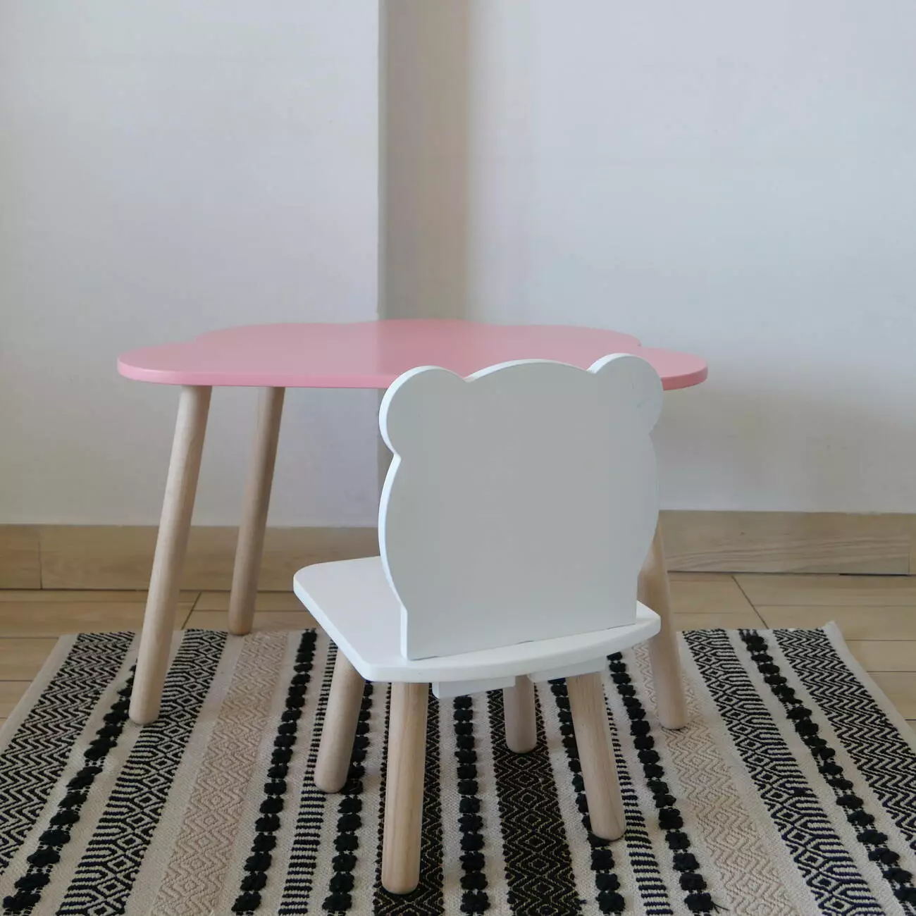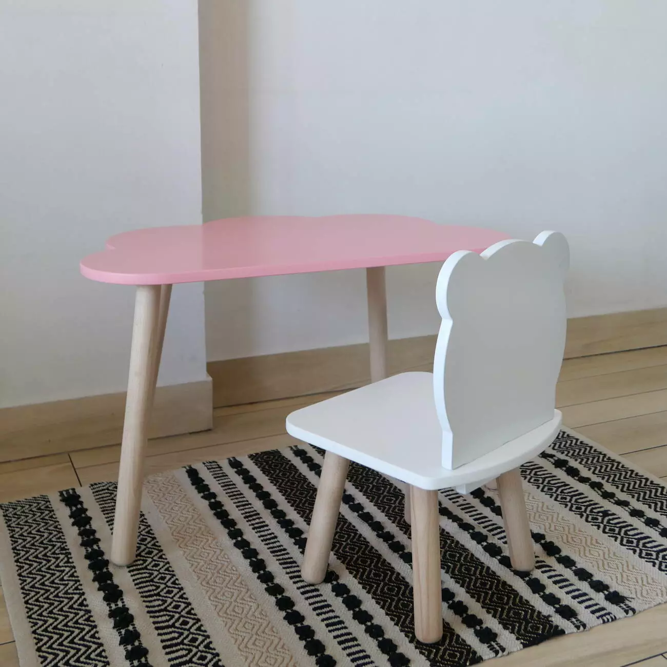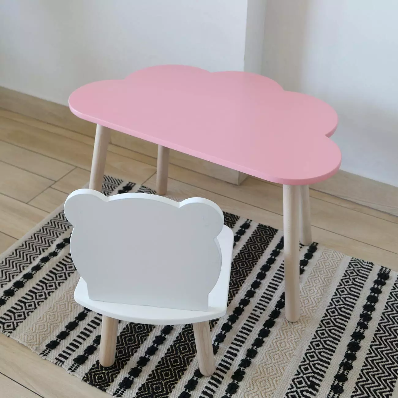 Комплект стіл та стул дитячий ChildWood - Set Стіл рожевий хмаринка + стілець білий Ведмедик (Фанера)