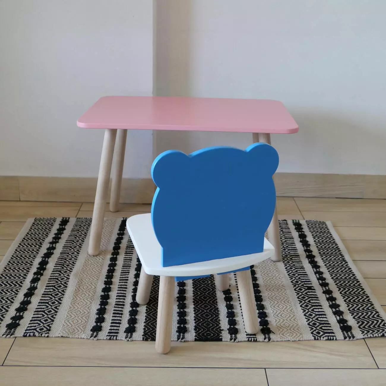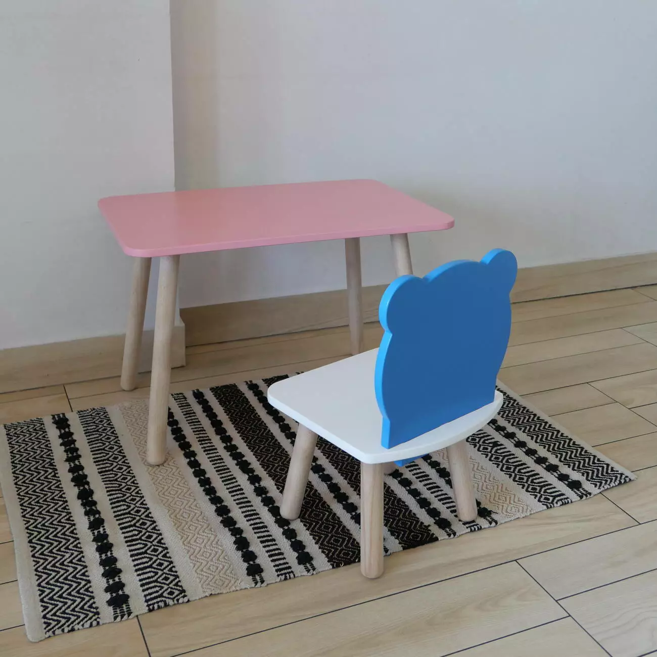 Комплект стіл та стул дитячий ChildWood - Set Стіл рожевий прямокутний + стілець білий блакитний Ведмедик (Фанера)