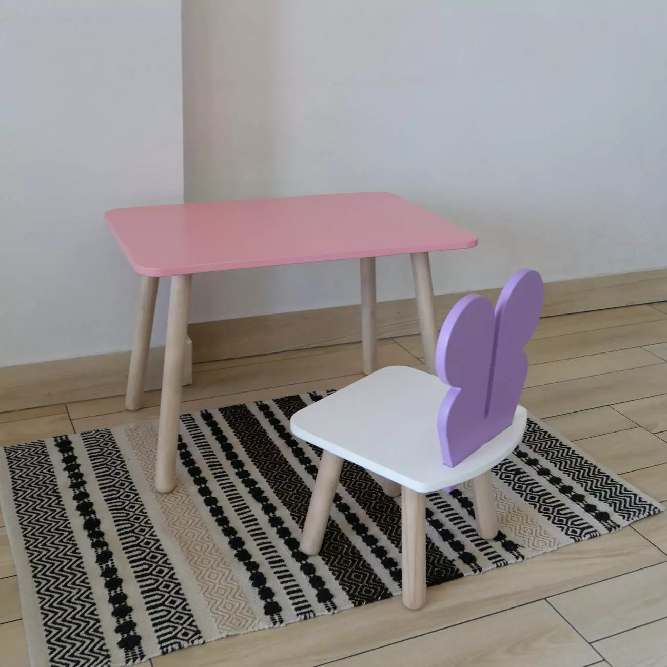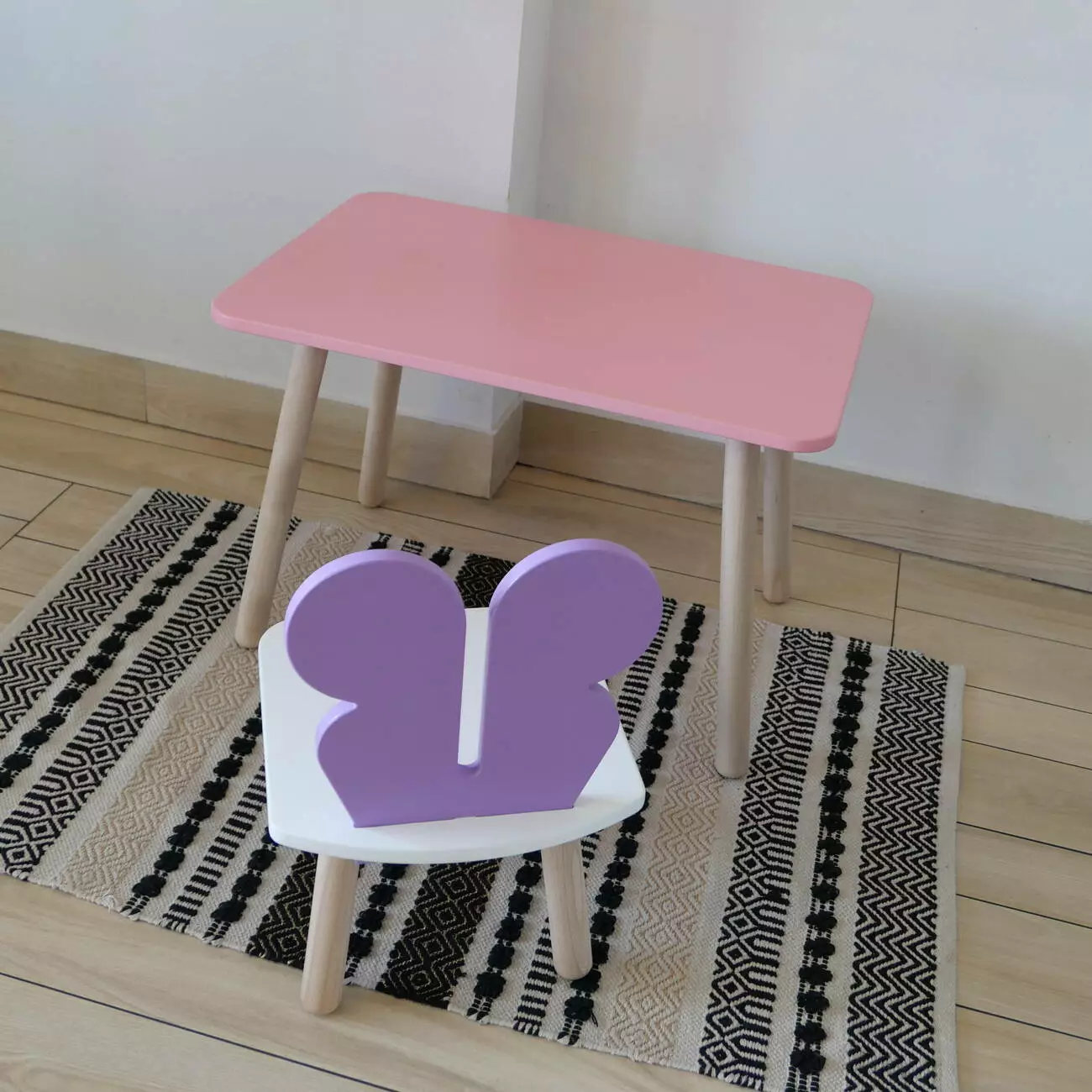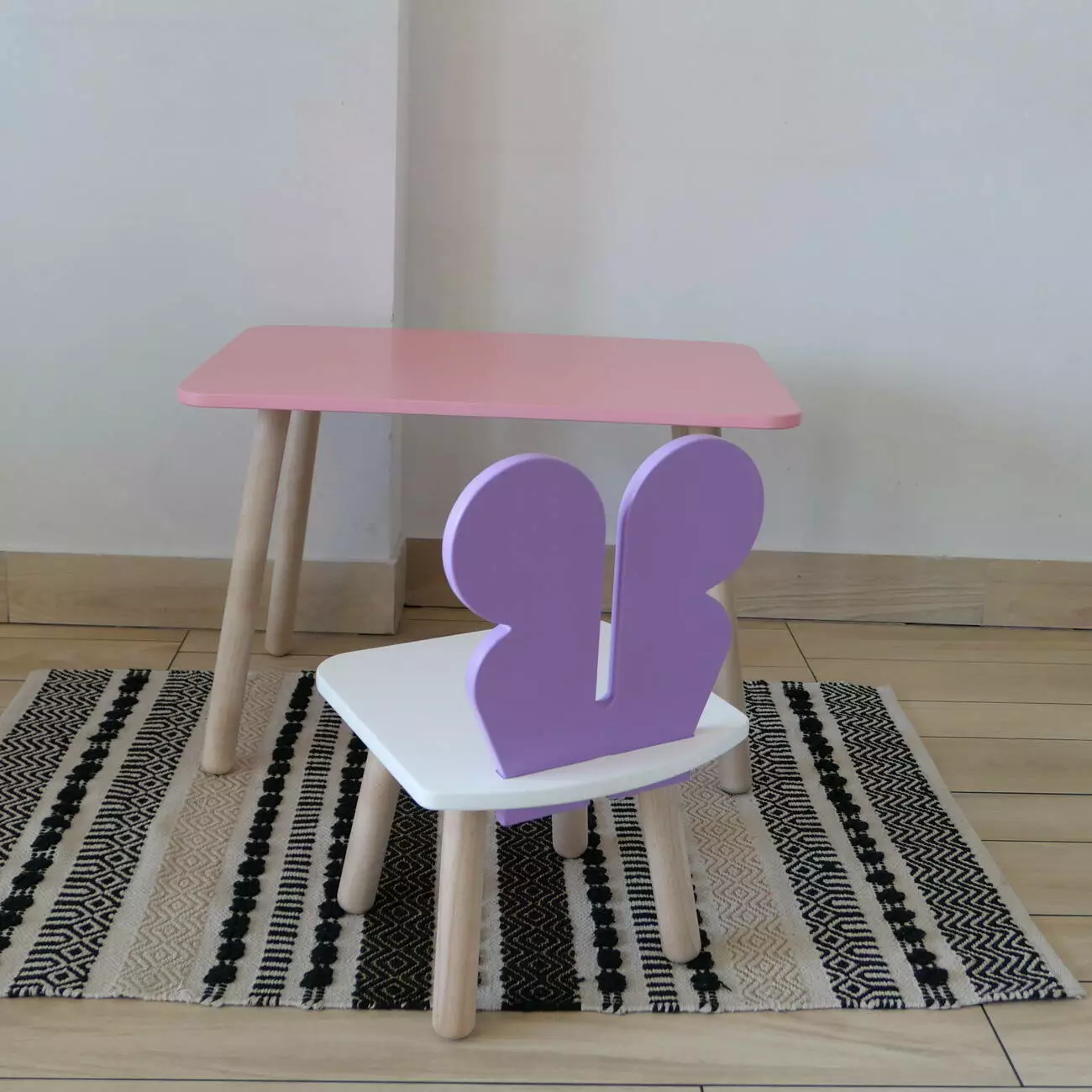 Комплект стіл та стул дитячий ChildWood - Set Стіл рожевий прямокутний + стілець білий бузковий Метелик (Фанера)
