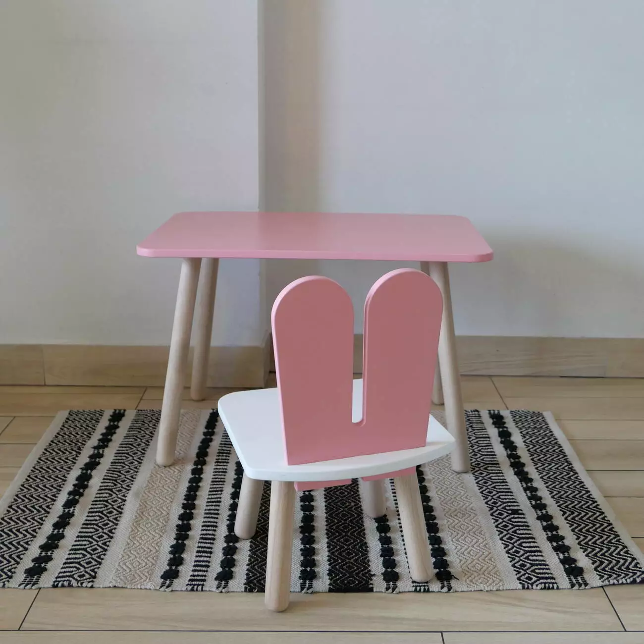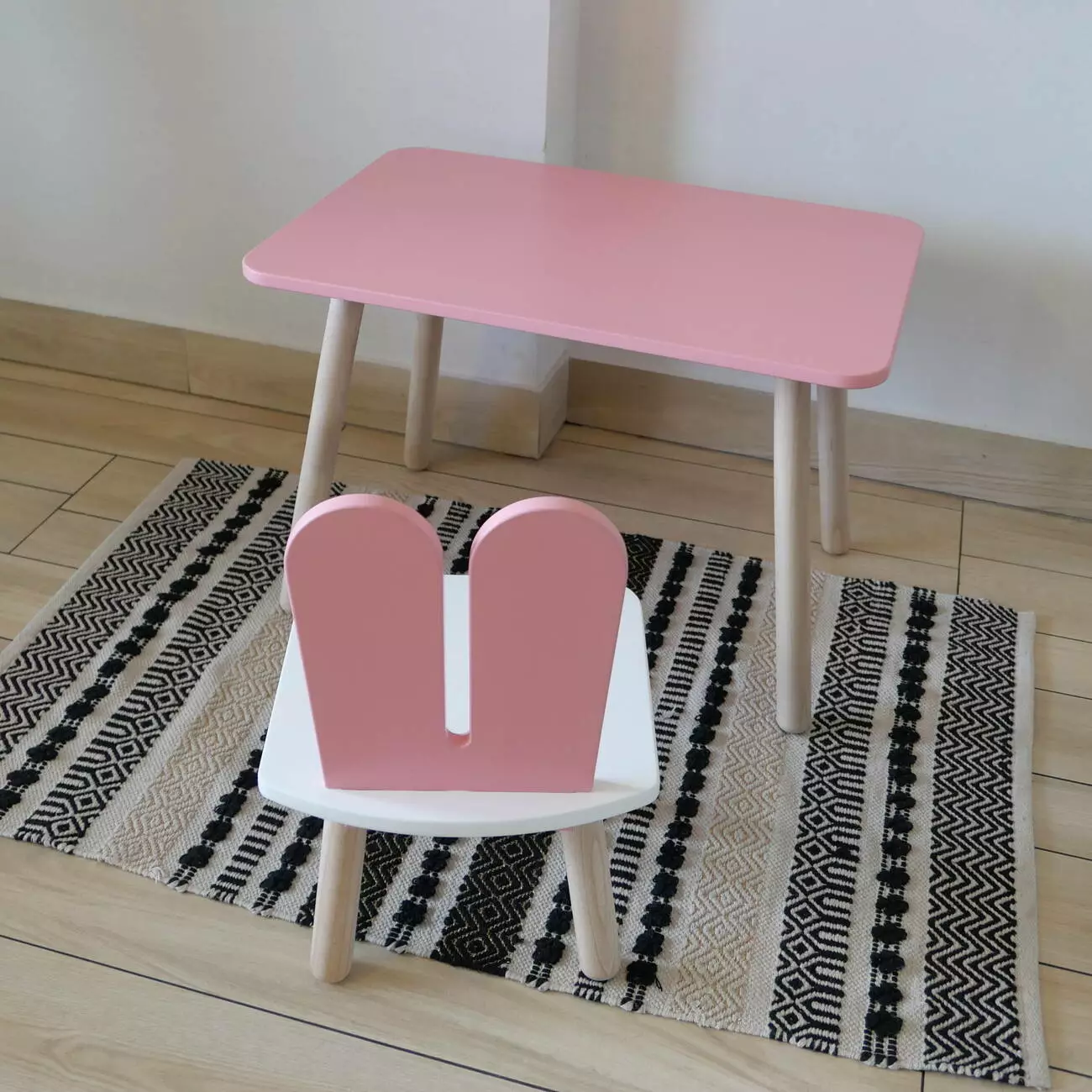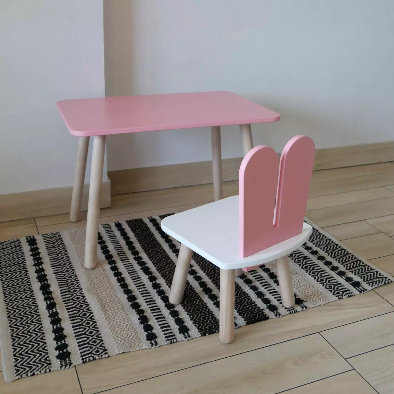 Комплект стіл та стул дитячий ChildWood - Set Стіл рожевий прямокутний + стілець білий рожевий Зайчик (Фанера)