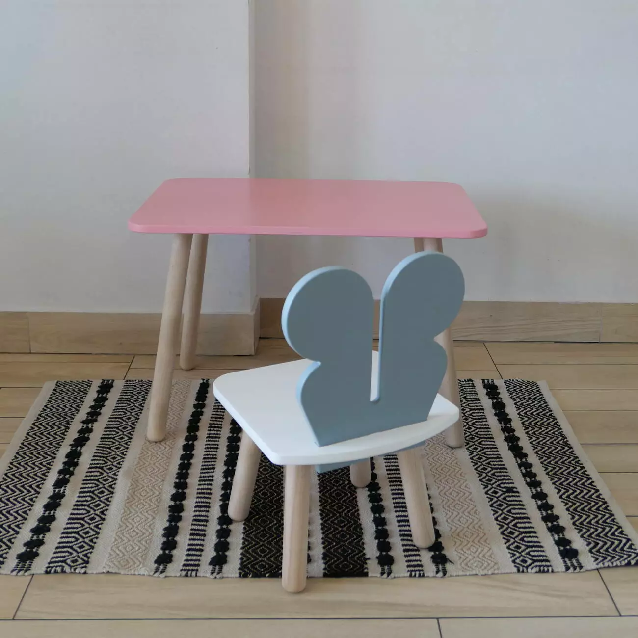 Комплект стіл та стул дитячий ChildWood - Set Стіл рожевий прямокутний + стілець білий сірий Метелик (Фанера)