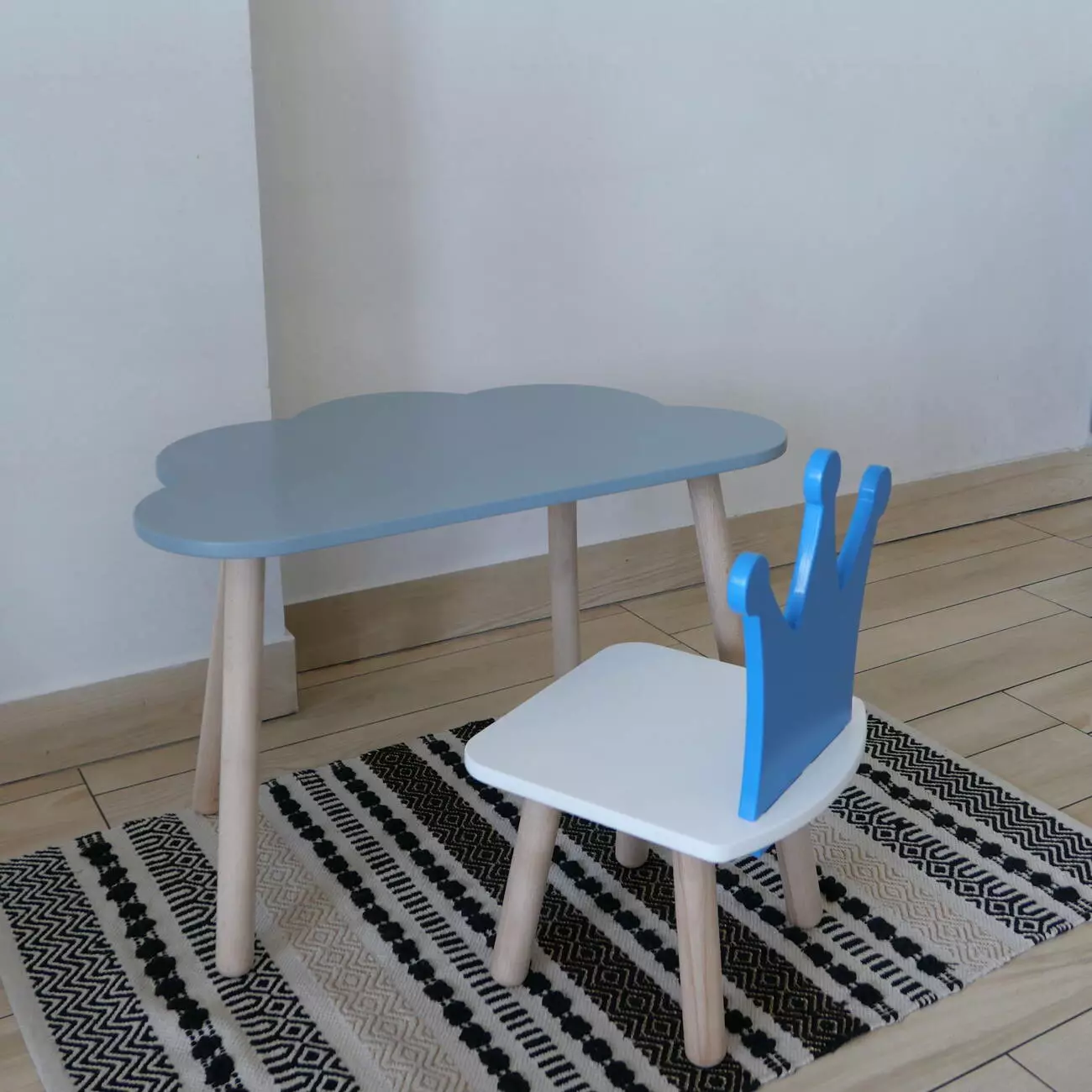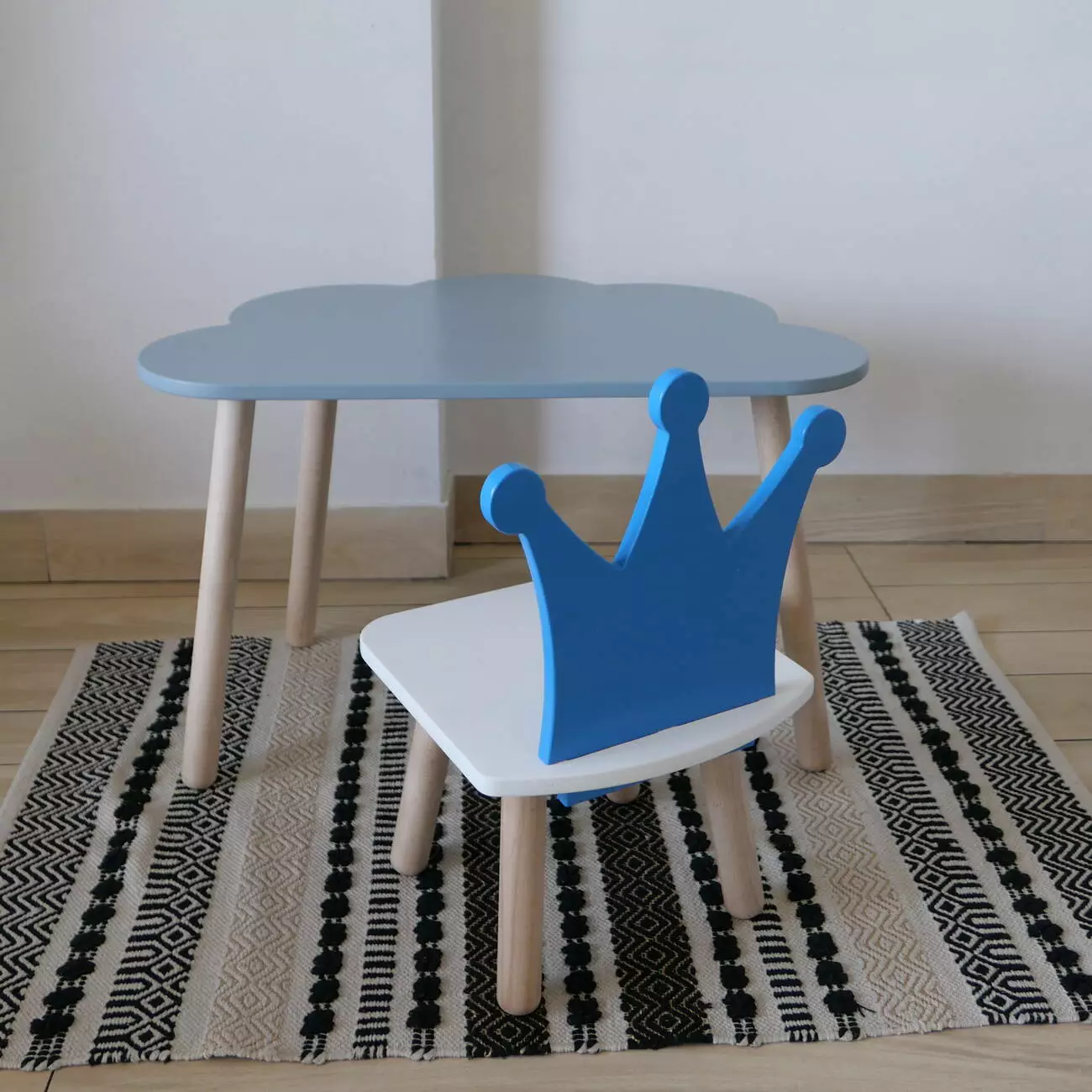 Комплект стіл та стул дитячий ChildWood - Set Стіл сірий хмаринка + стілець білий блакитний Корона (Фанера)