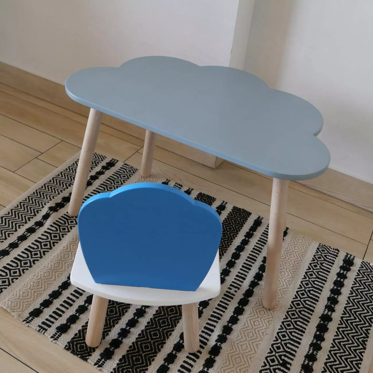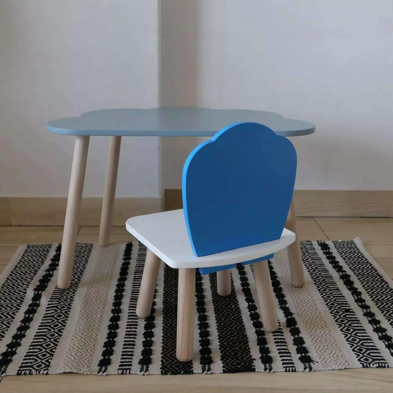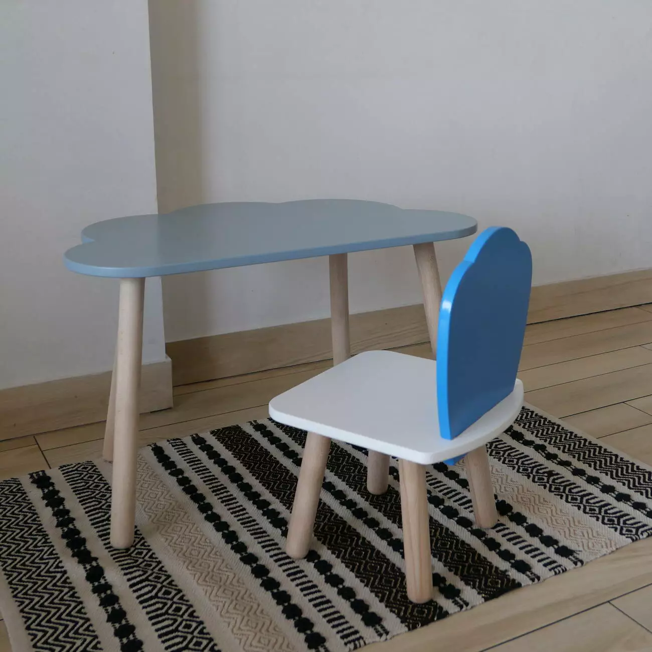 Комплект стіл та стул дитячий ChildWood - Set Стіл сірий хмаринка + стілець білий блакитний Мушля (Фанера)
