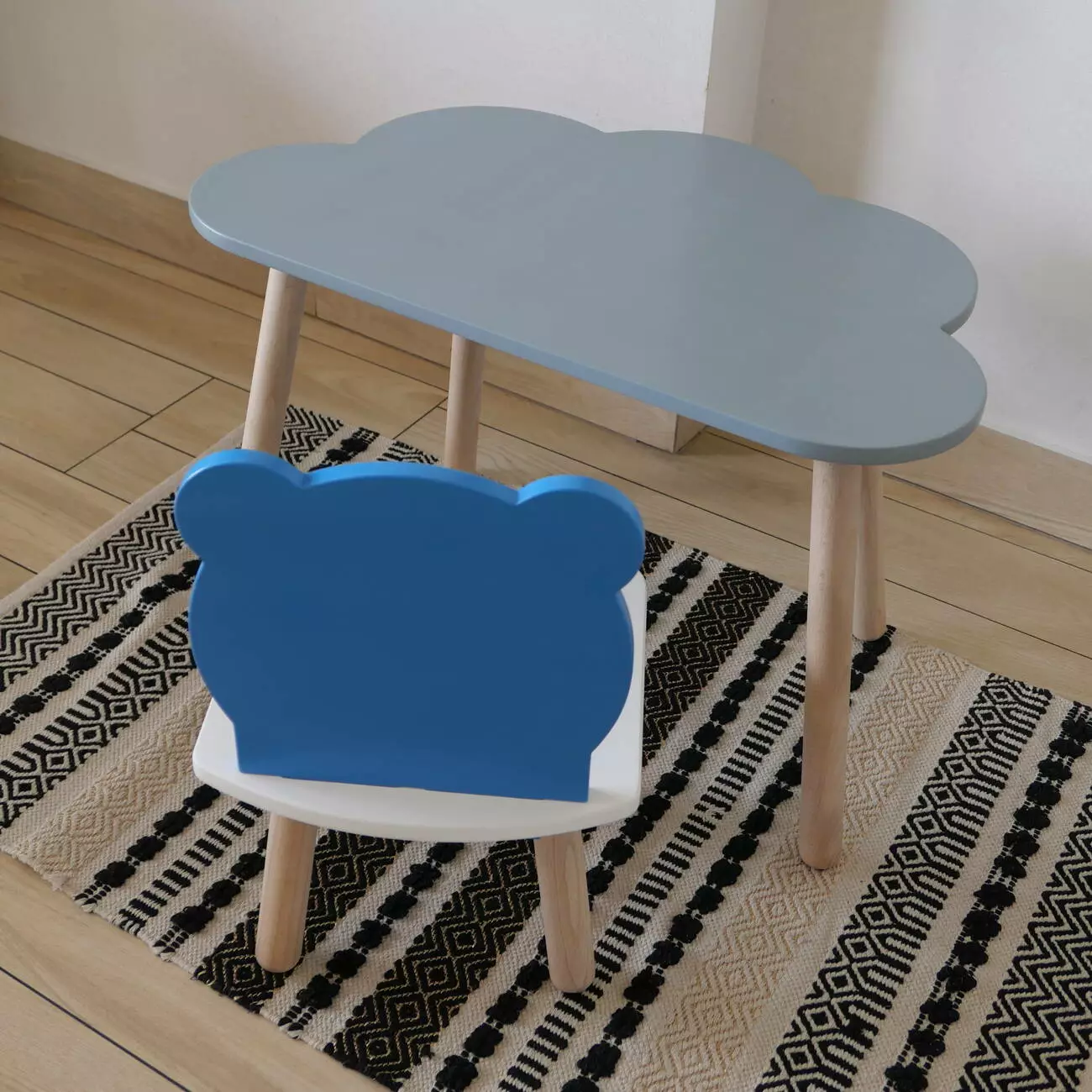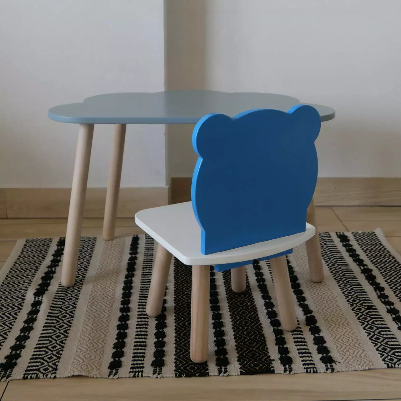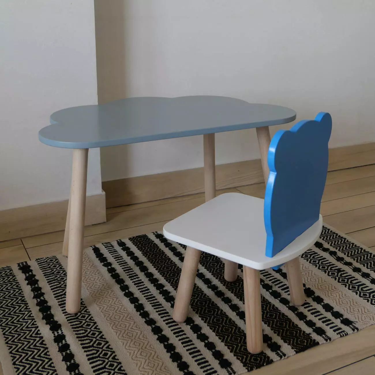 Комплект стіл та стул дитячий ChildWood - Set Стіл сірий хмаринка + стілець білий блакитний Ведмедик (Фанера)