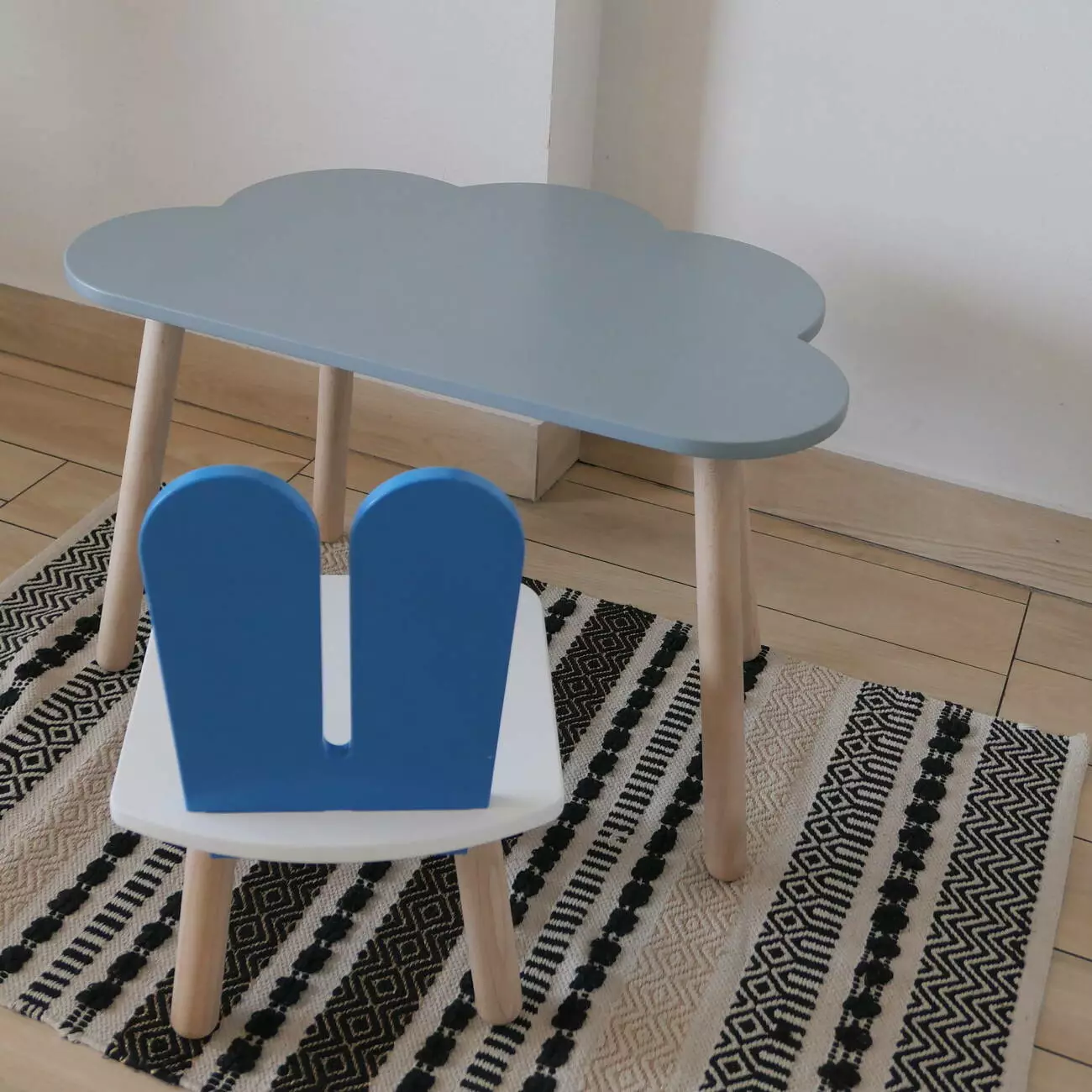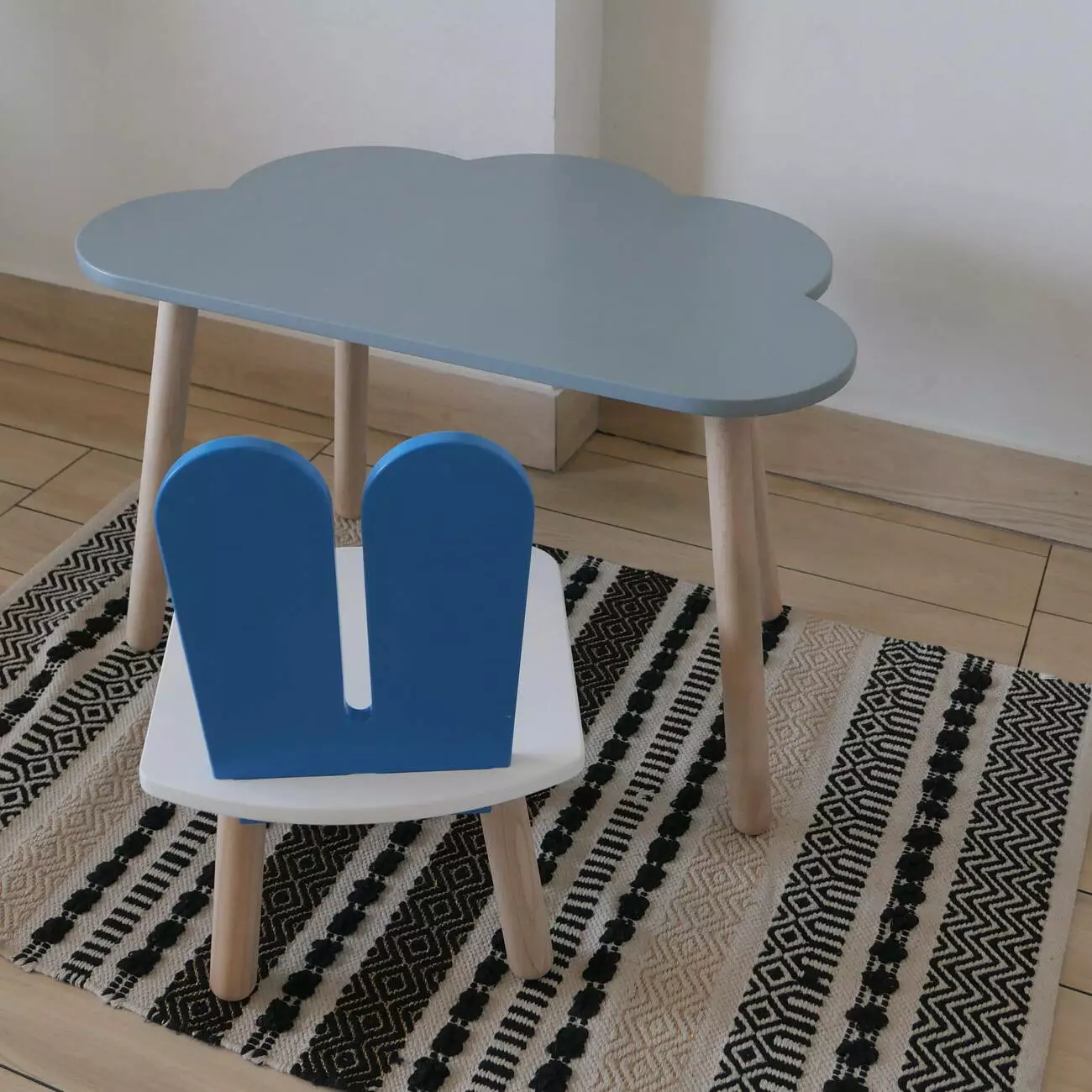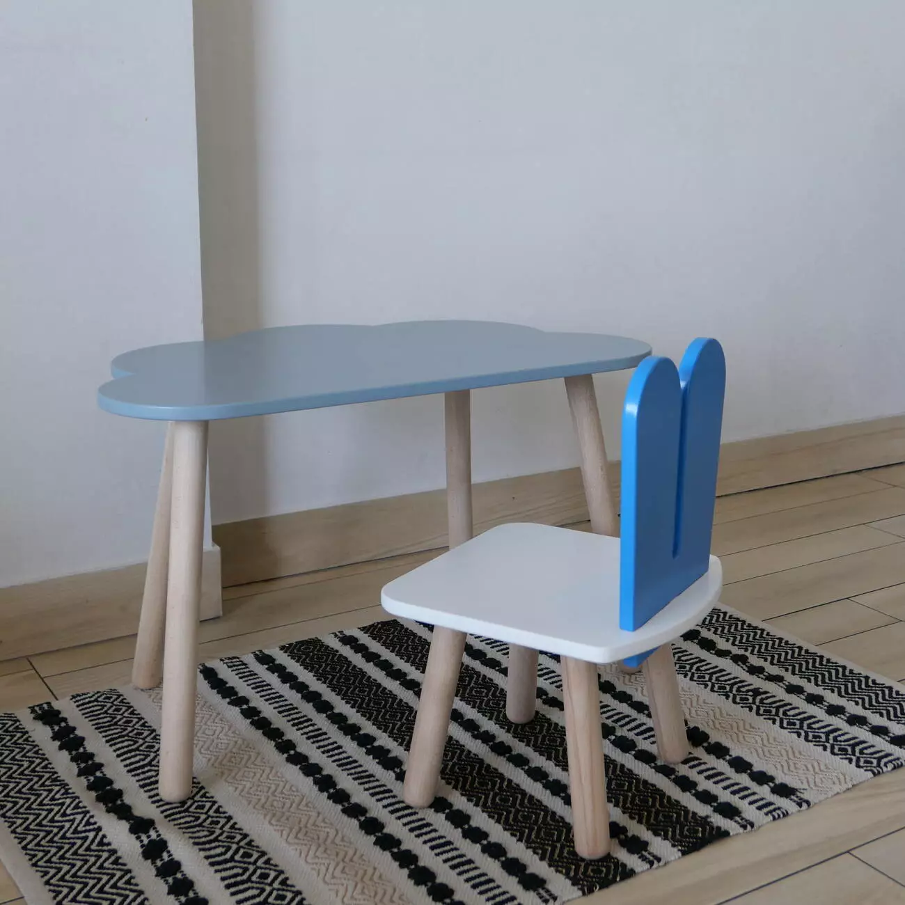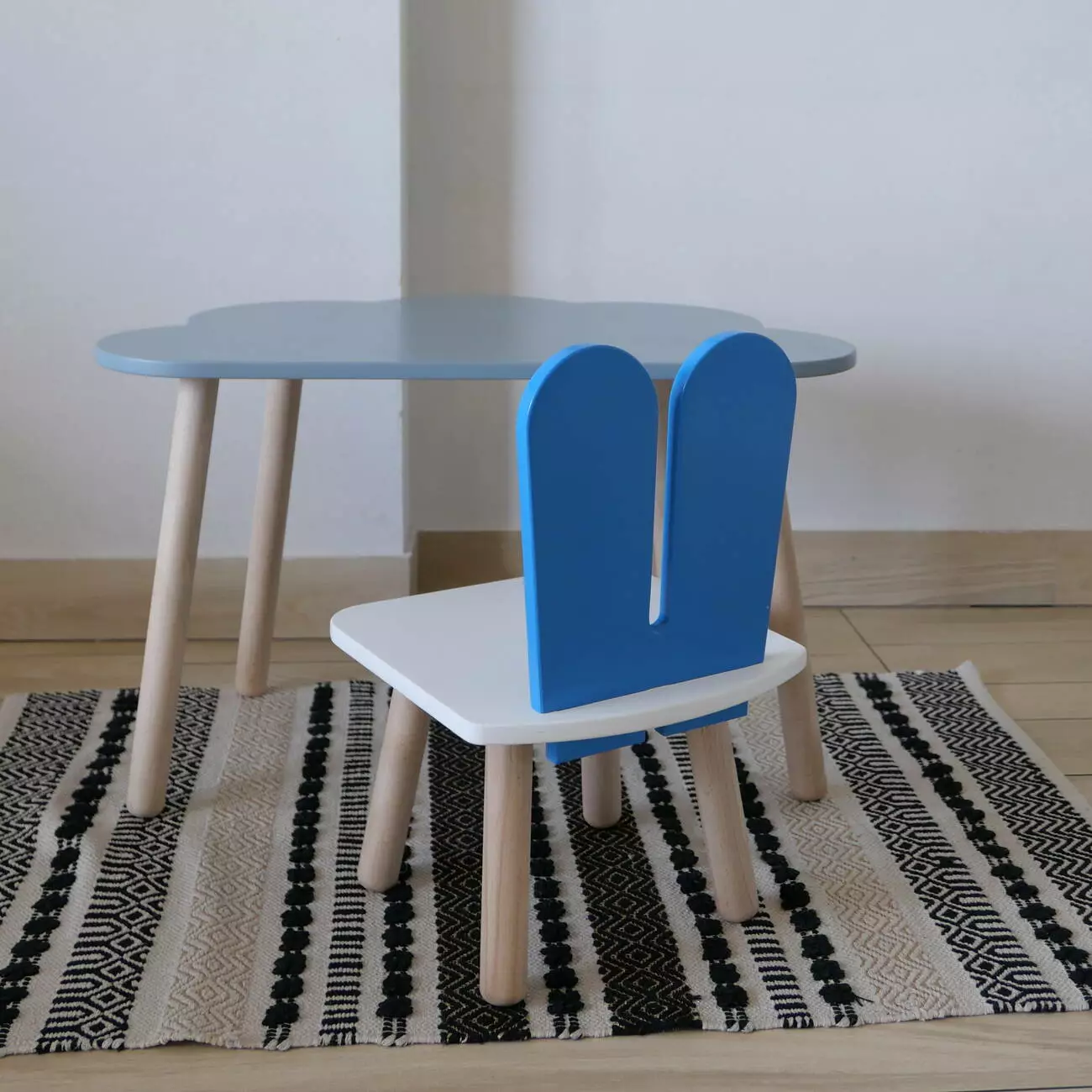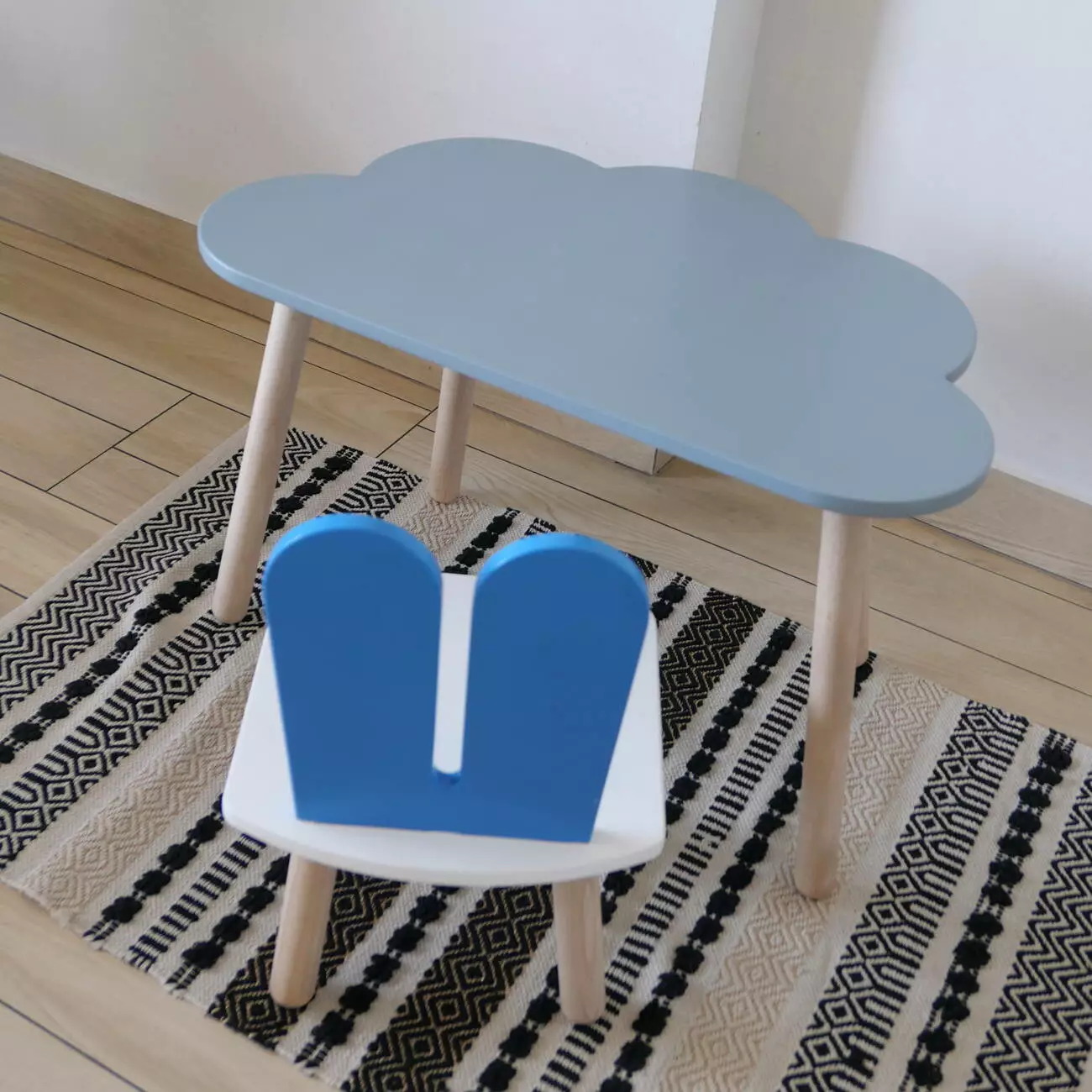 Комплект стіл та стул дитячий ChildWood - Set Стіл сірий хмаринка + стілець білий блакитний Зайчик (Фанера)