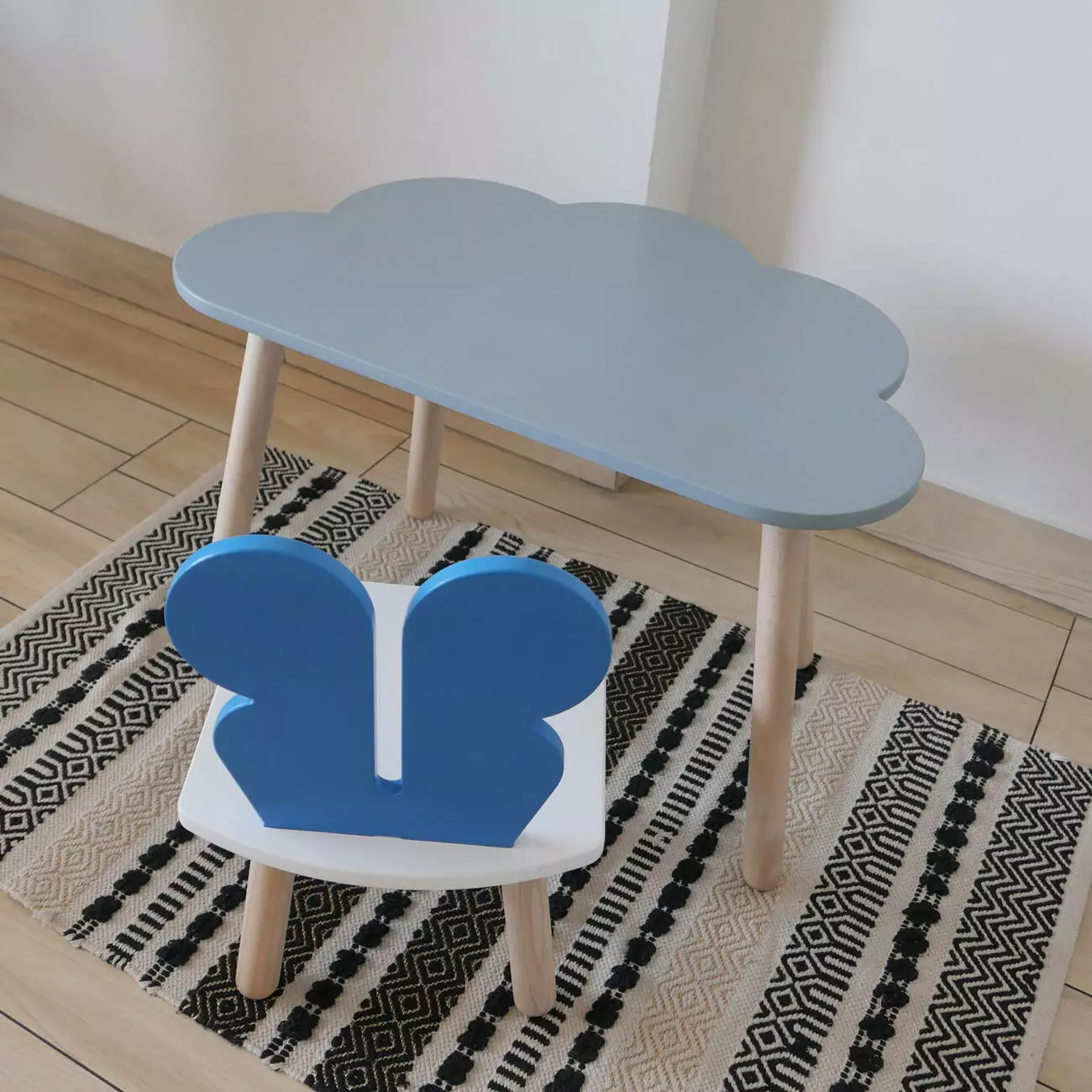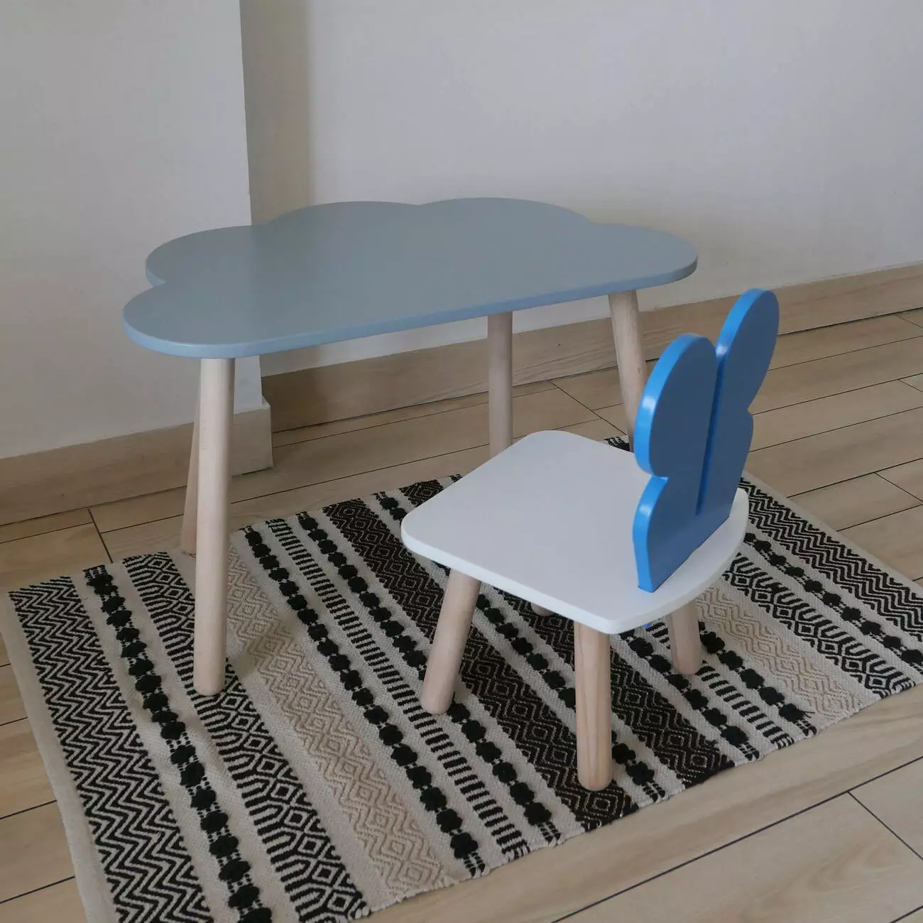 Комплект стіл та стул дитячий ChildWood - Set Стіл сірий хмаринка + стілець білий блакийний Метелик (Фанера)