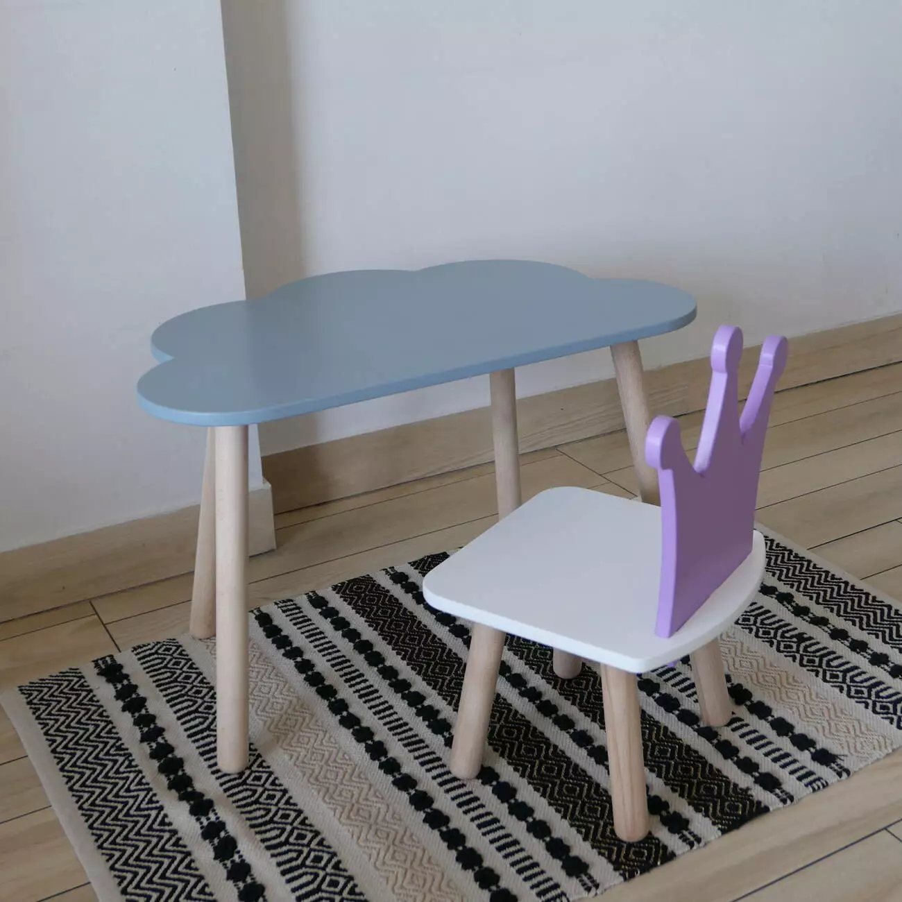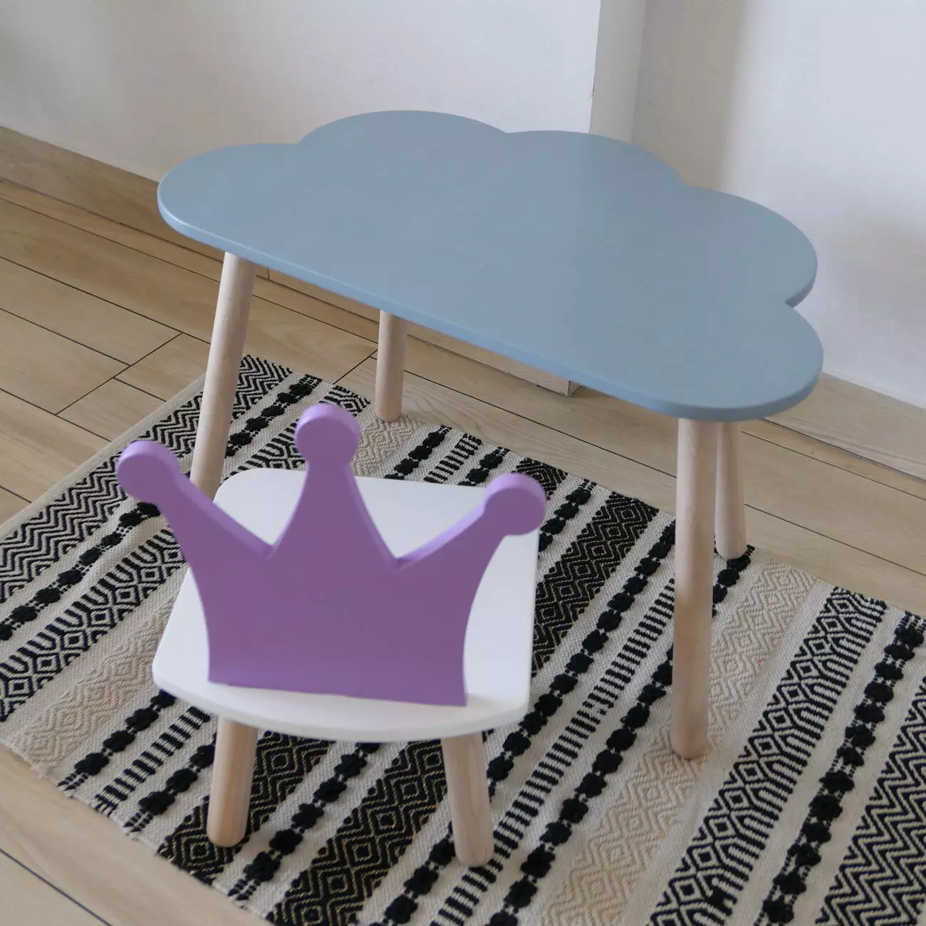 Комплект стіл та стул дитячий ChildWood - Set Стіл сірий хмаринка + стілець білий бузковий Корона (Фанера)