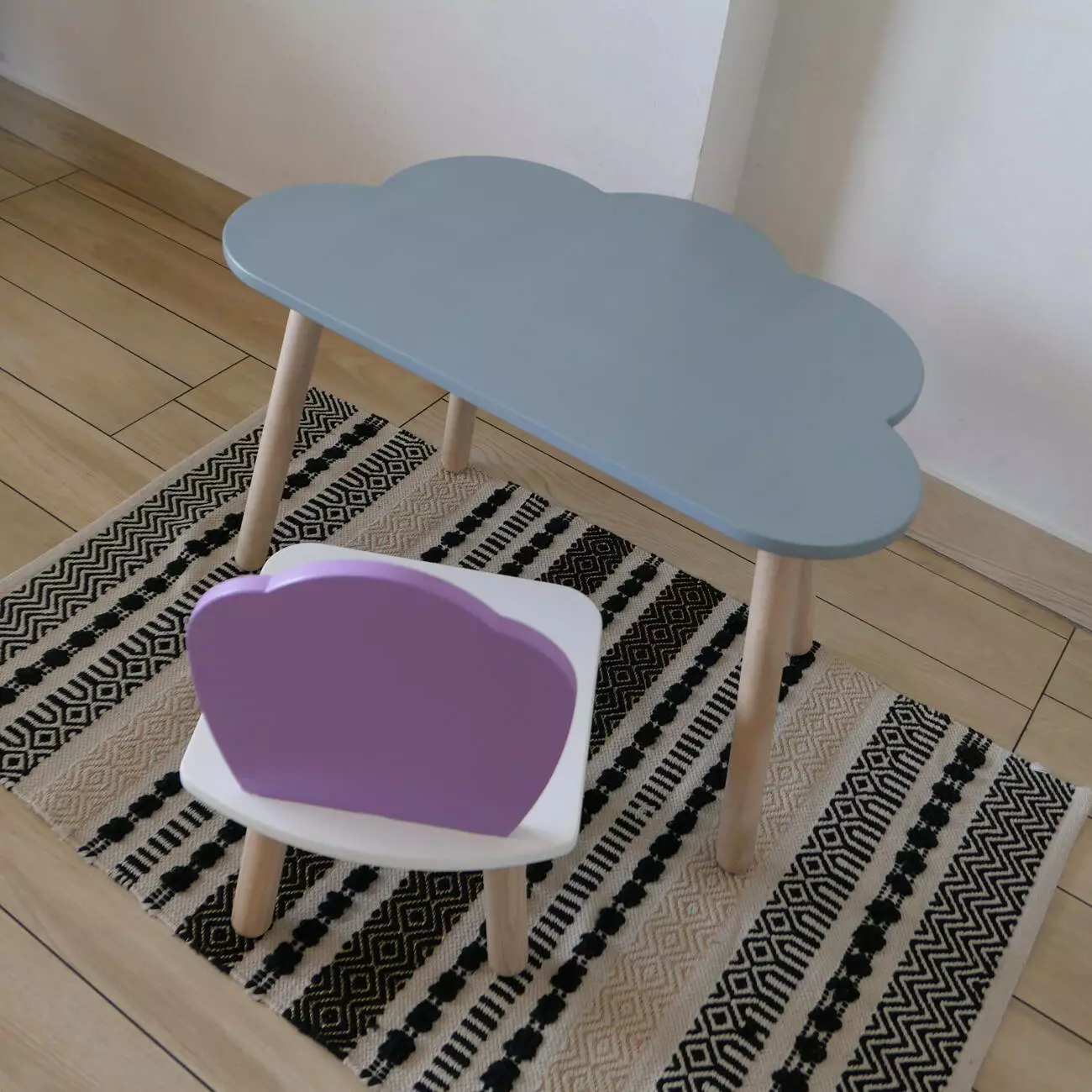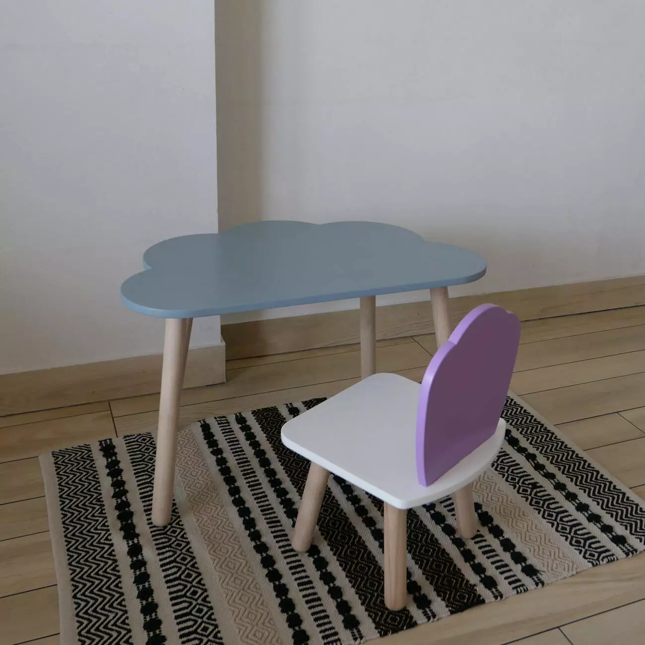 Комплект стіл та стул дитячий ChildWood - Set Стіл сірий хмаринка + стілець білий бузковий Мушля (Фанера)