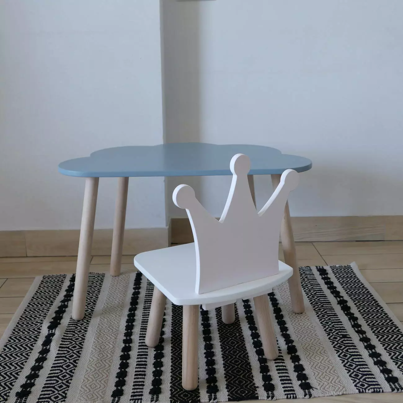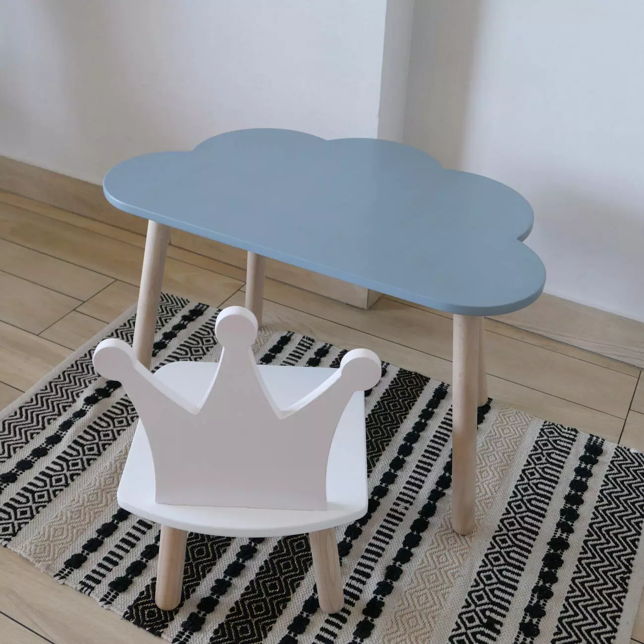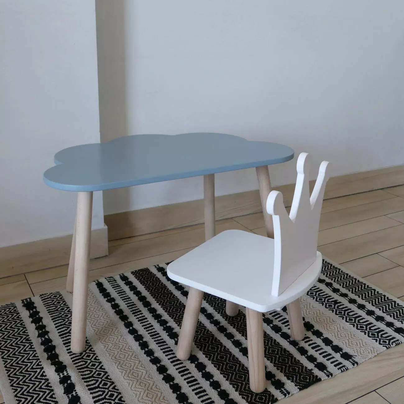 Комплект стіл та стул дитячий ChildWood - Set Стіл сірий хмаринка + стілець білий Корона (Фанера)