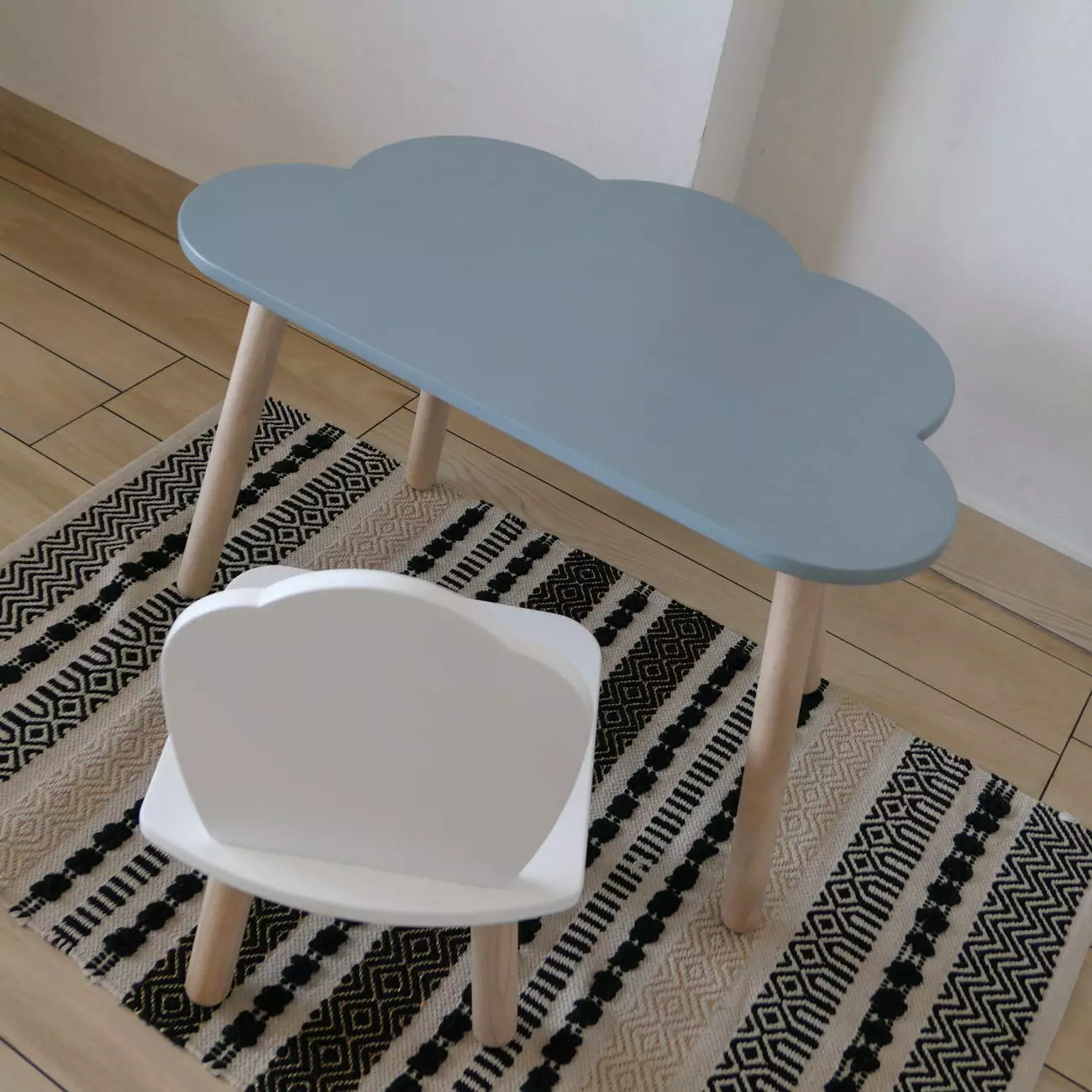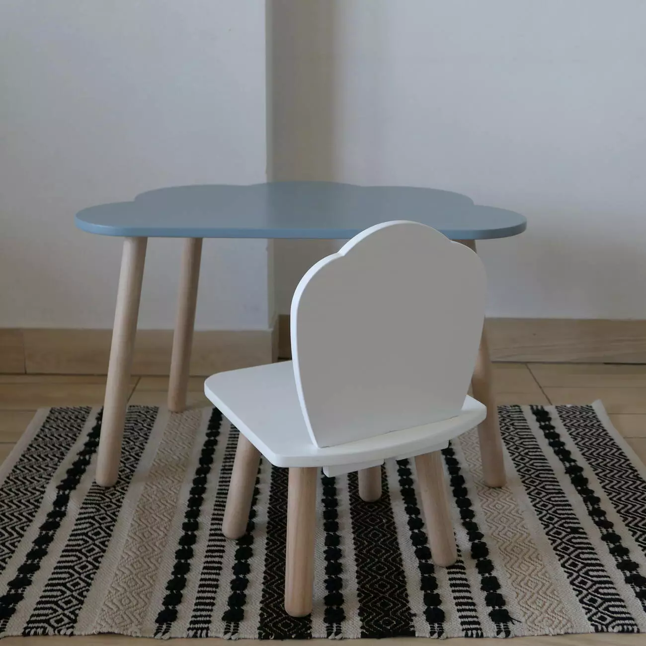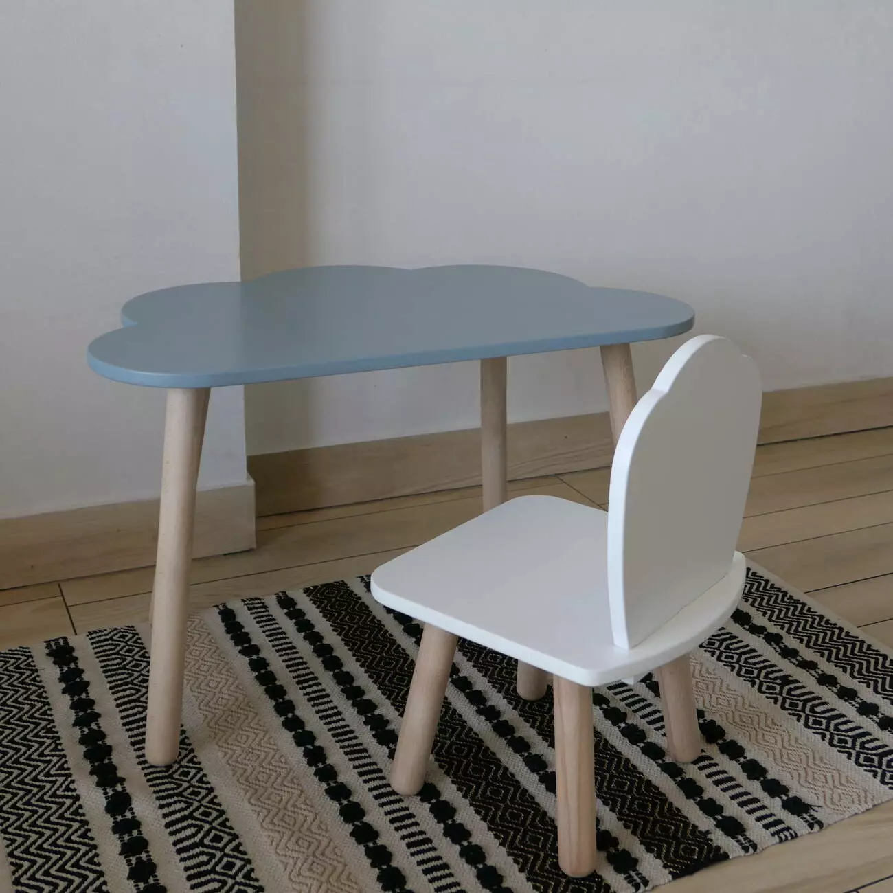 Комплект стіл та стул дитячий ChildWood - Set Стіл сірий хмаринка + стілець білий Мушля (Фанера)