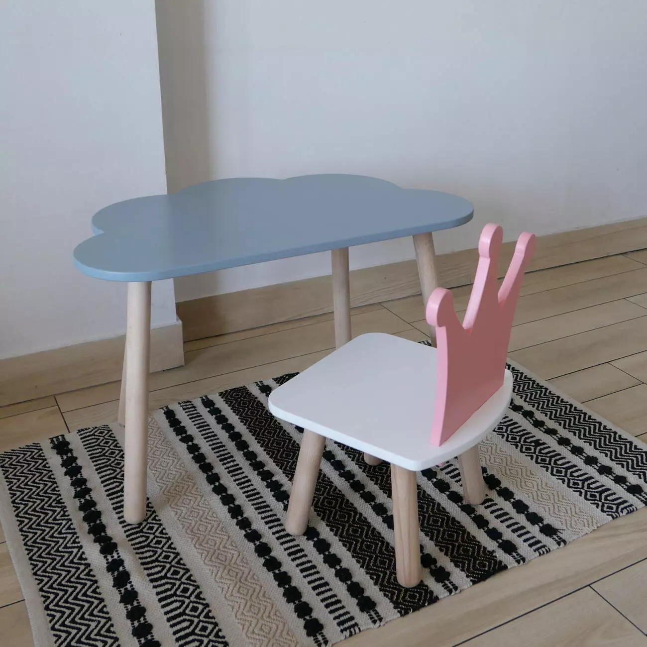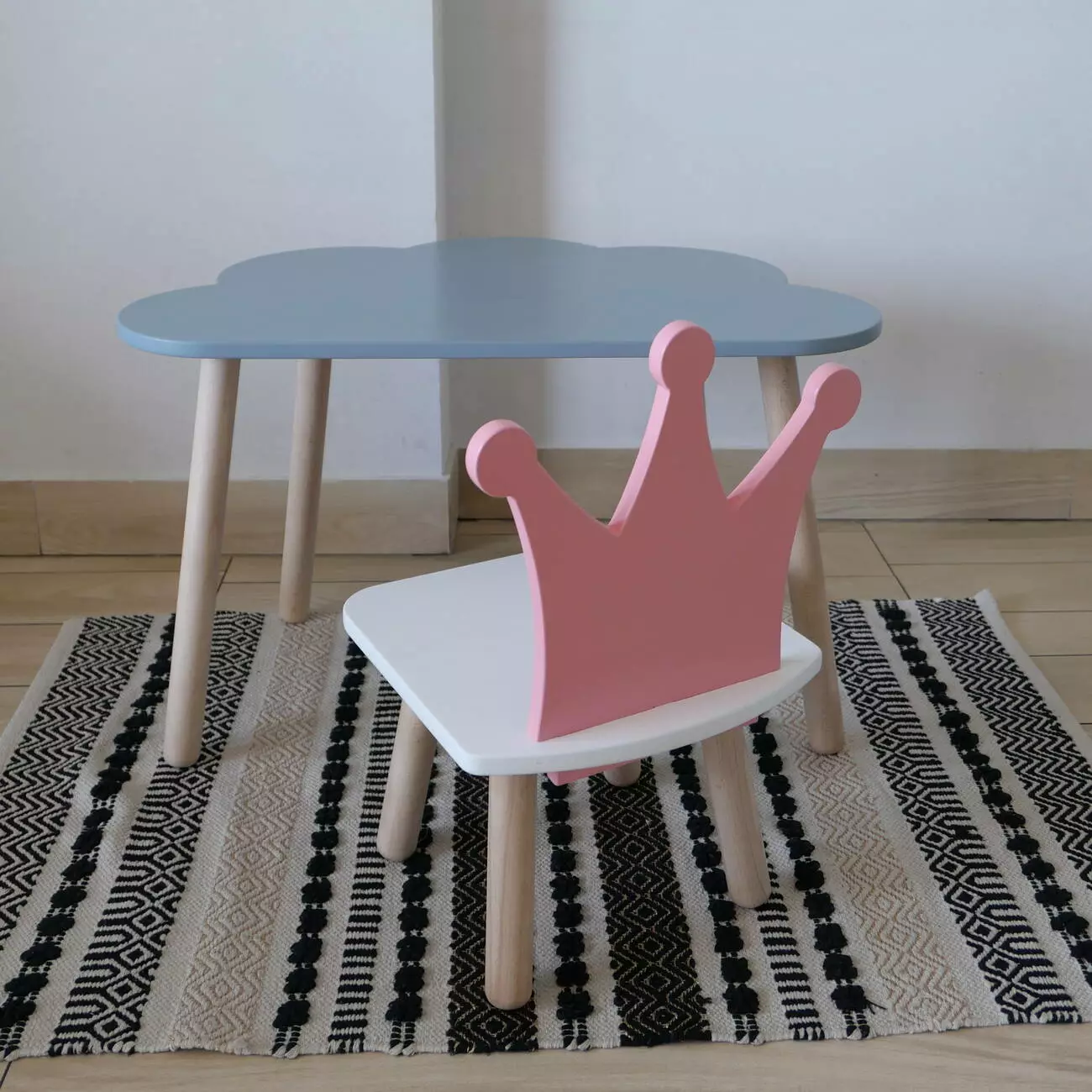 Комплект стіл та стул дитячий ChildWood - Set Стіл сірий хмаринка + стілець білий рожевий Корона (Фанера)