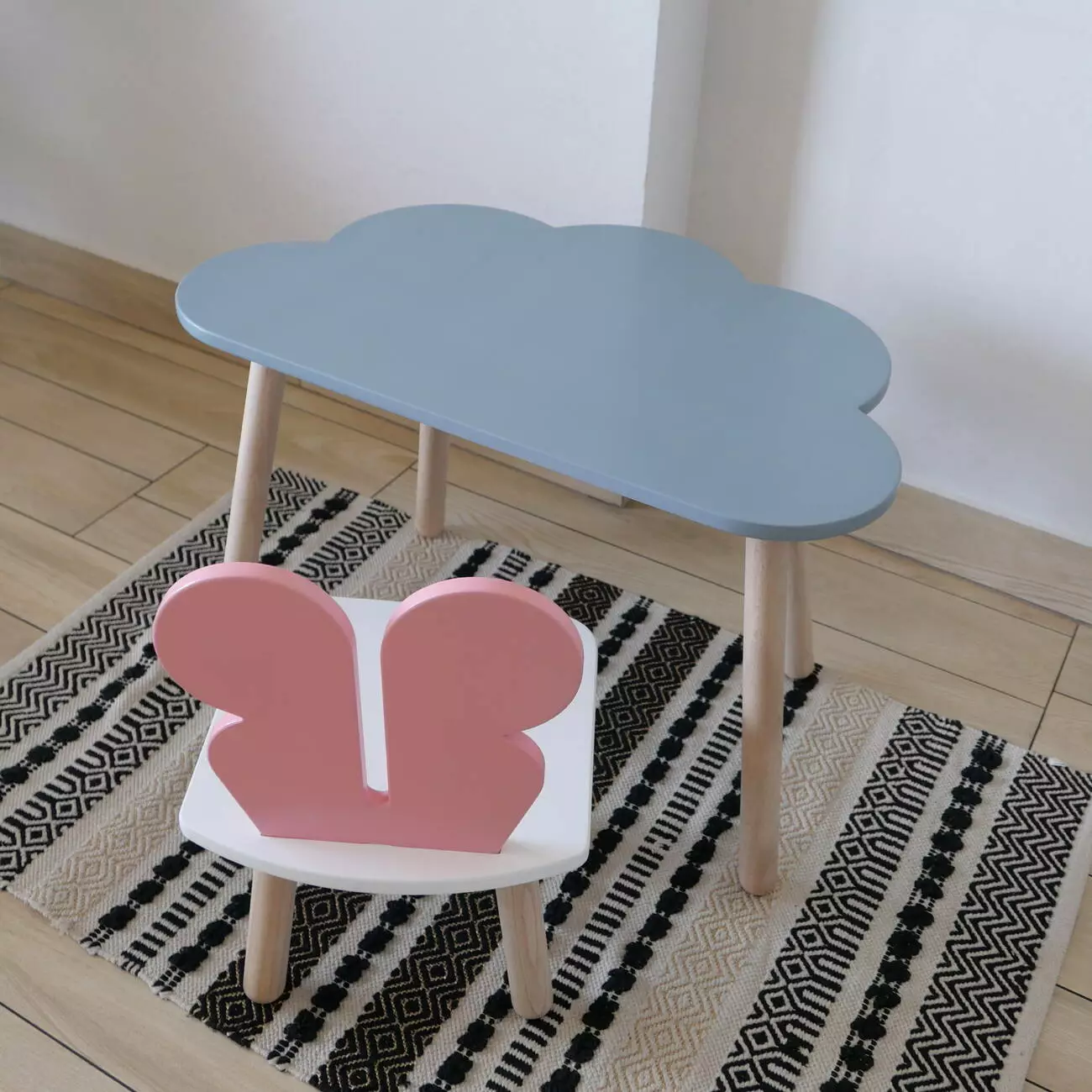 Комплект стіл та стул дитячий ChildWood - Set Стіл сірий хмаринка + стілець білий рожевий Метелик (Фанера)