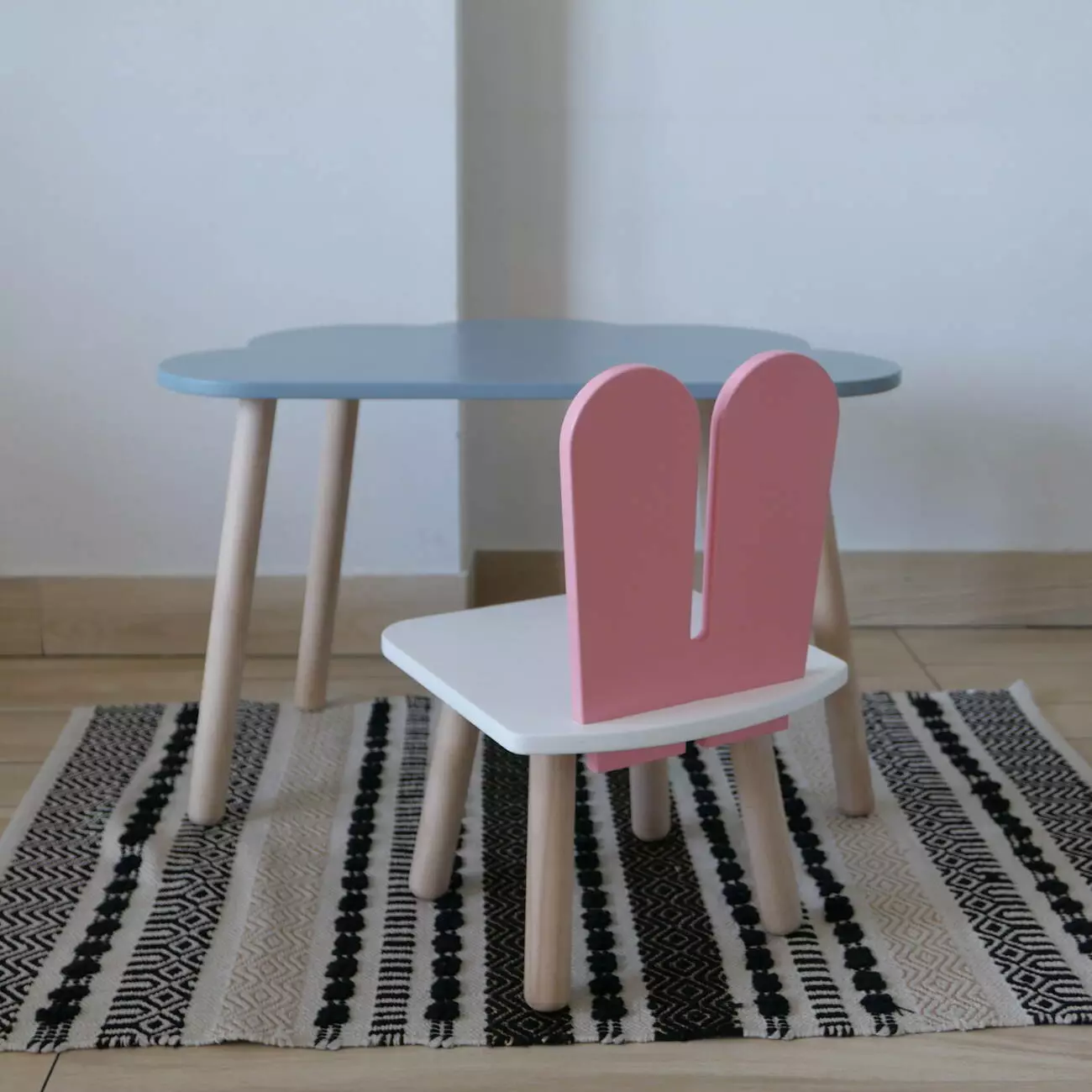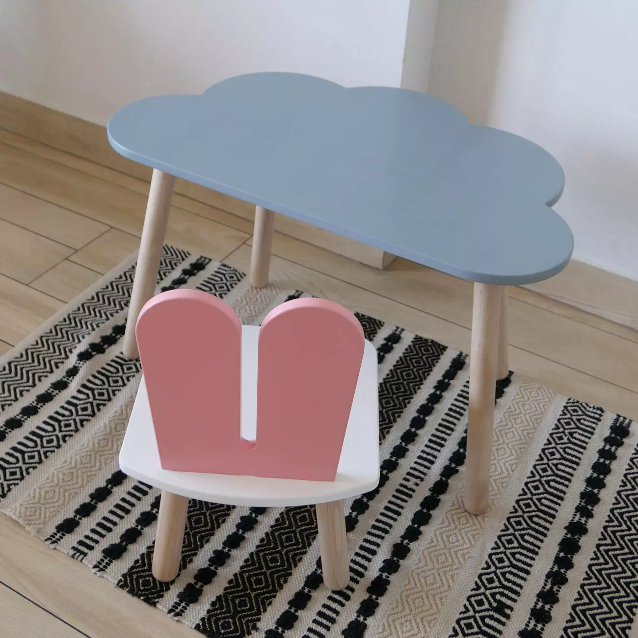 Комплект стіл та стул дитячий ChildWood - Set Стіл сірий хмаринка + стілець білий рожевий Зайчик (Фанера)