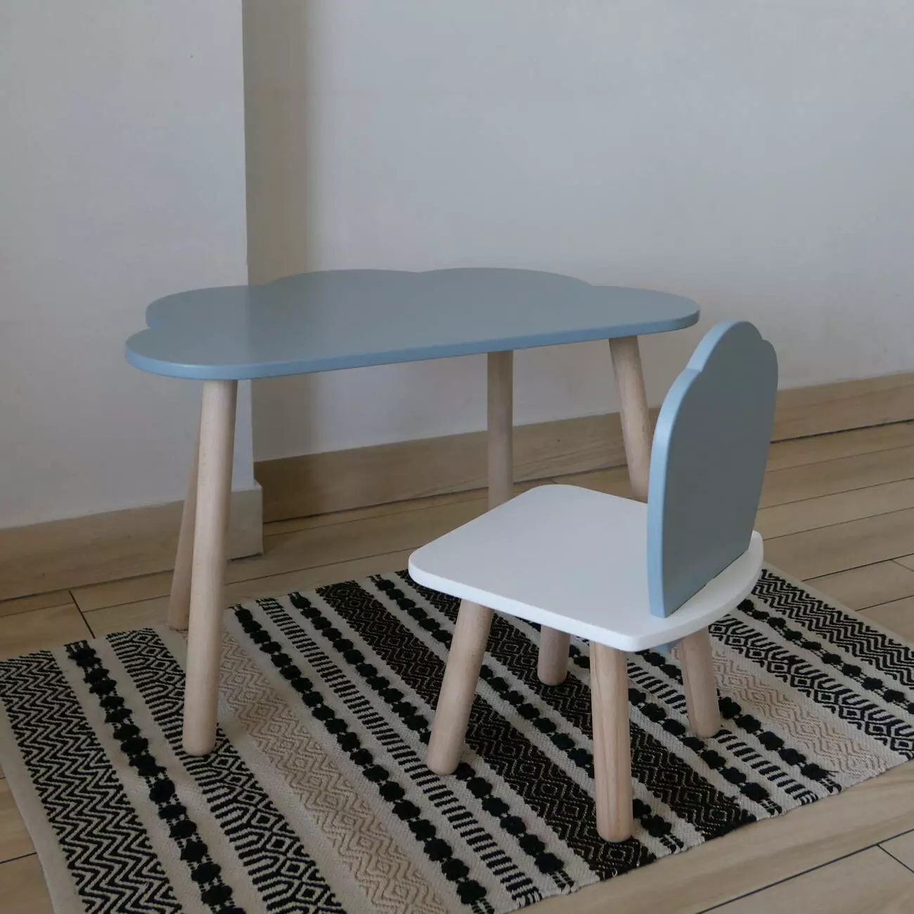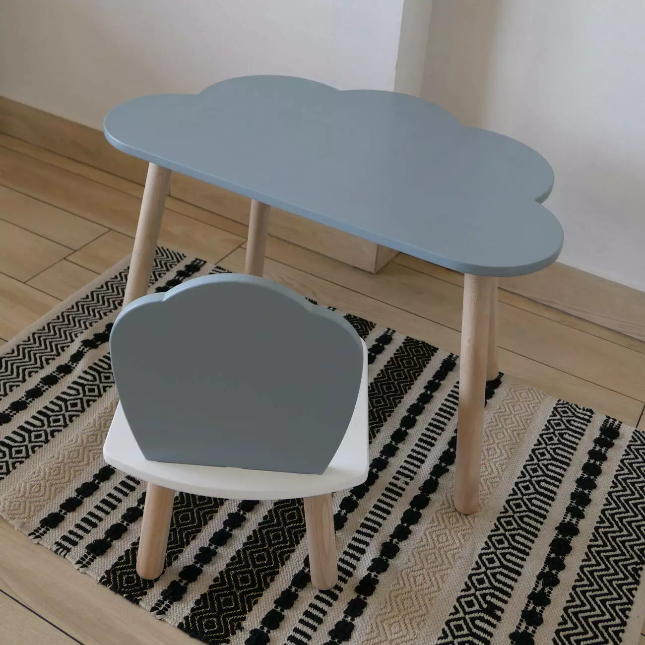 Комплект стіл та стул дитячий ChildWood - Set Стіл сірий хмаринка + стілець білий сірий Мушля (Фанера)