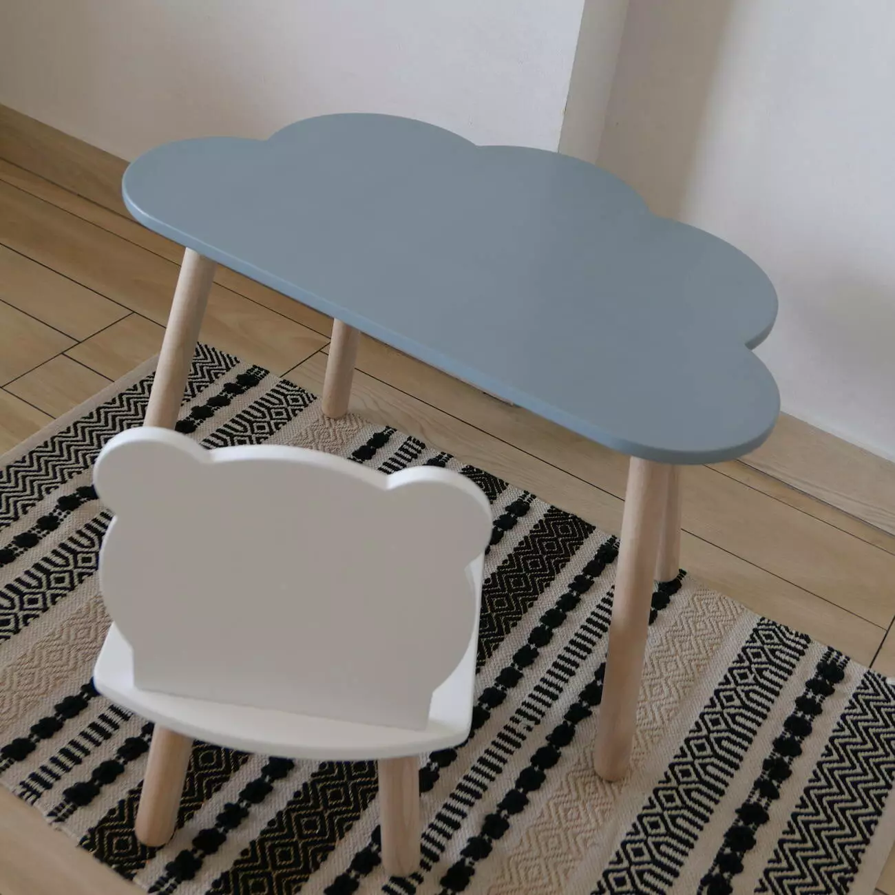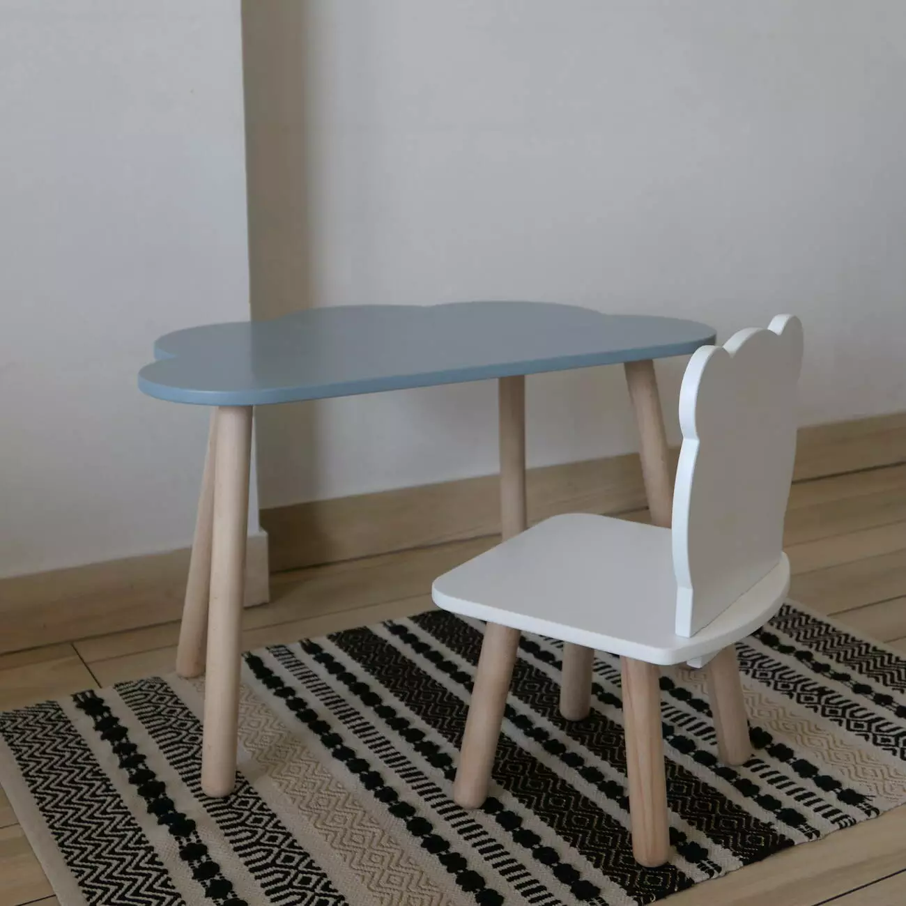 Комплект стіл та стул дитячий ChildWood - Set Стіл сірий хмаринка + стілець білий Ведмедик (Фанера)