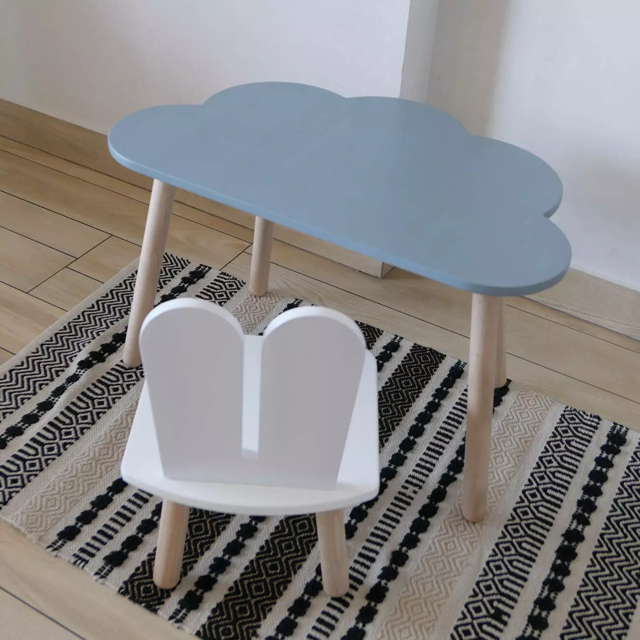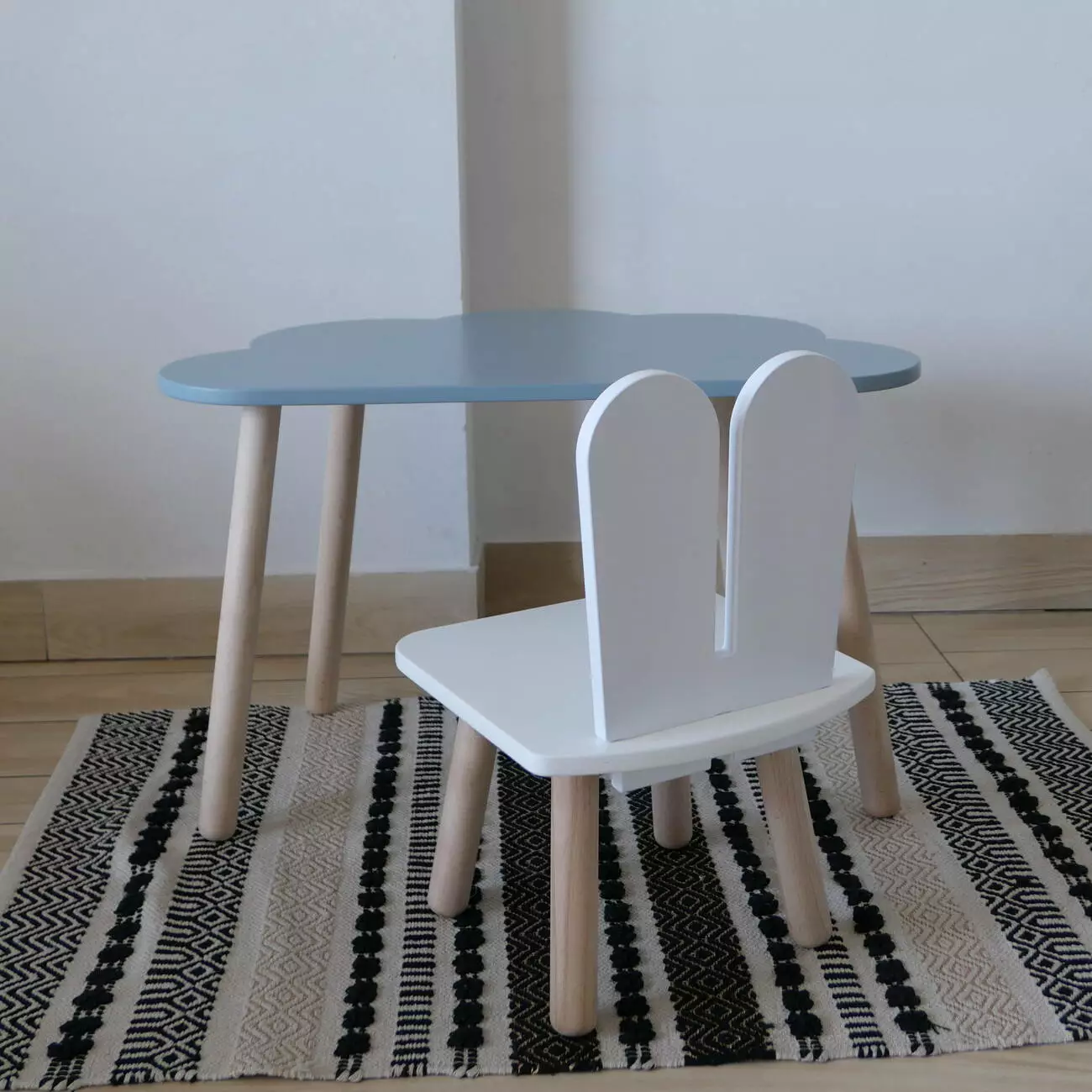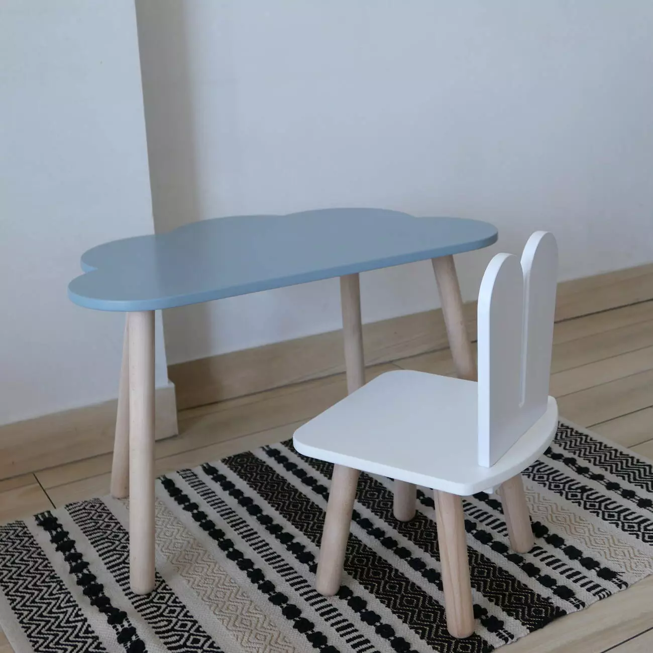 Комплект стіл та стул дитячий ChildWood - Set Стіл сірий хмаринка + стілець білий Зайчик (Фанера)