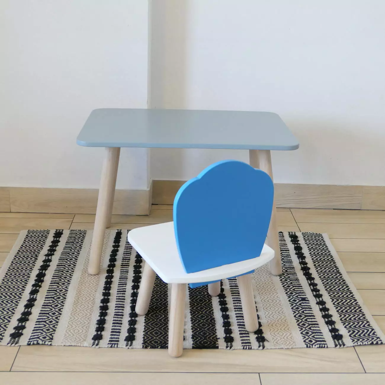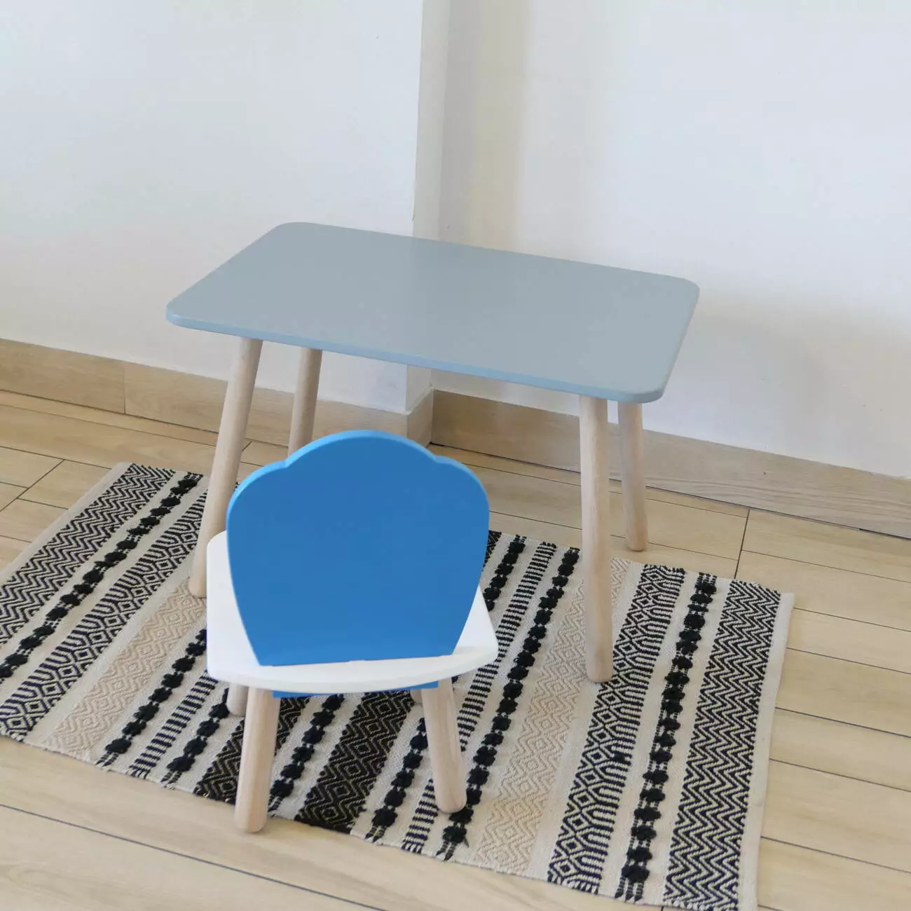 Комплект стіл та стул дитячий ChildWood - Set Стіл сірий прямокутний + стілець білий блакитний Мушля (Фанера)