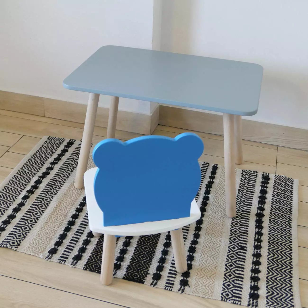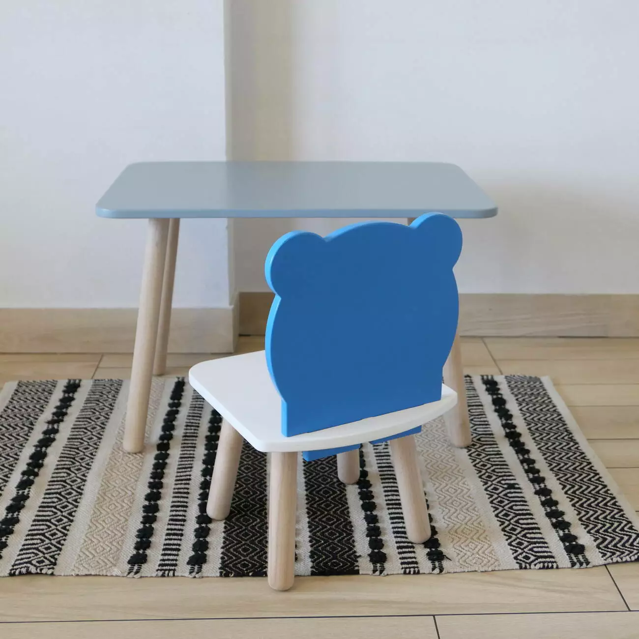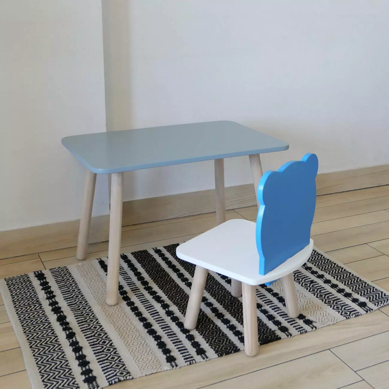 Комплект стіл та стул дитячий ChildWood - Set Стіл сірий прямокутний + стілець білий блакитний Ведмедик (Фанера)