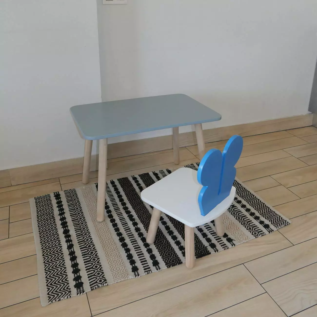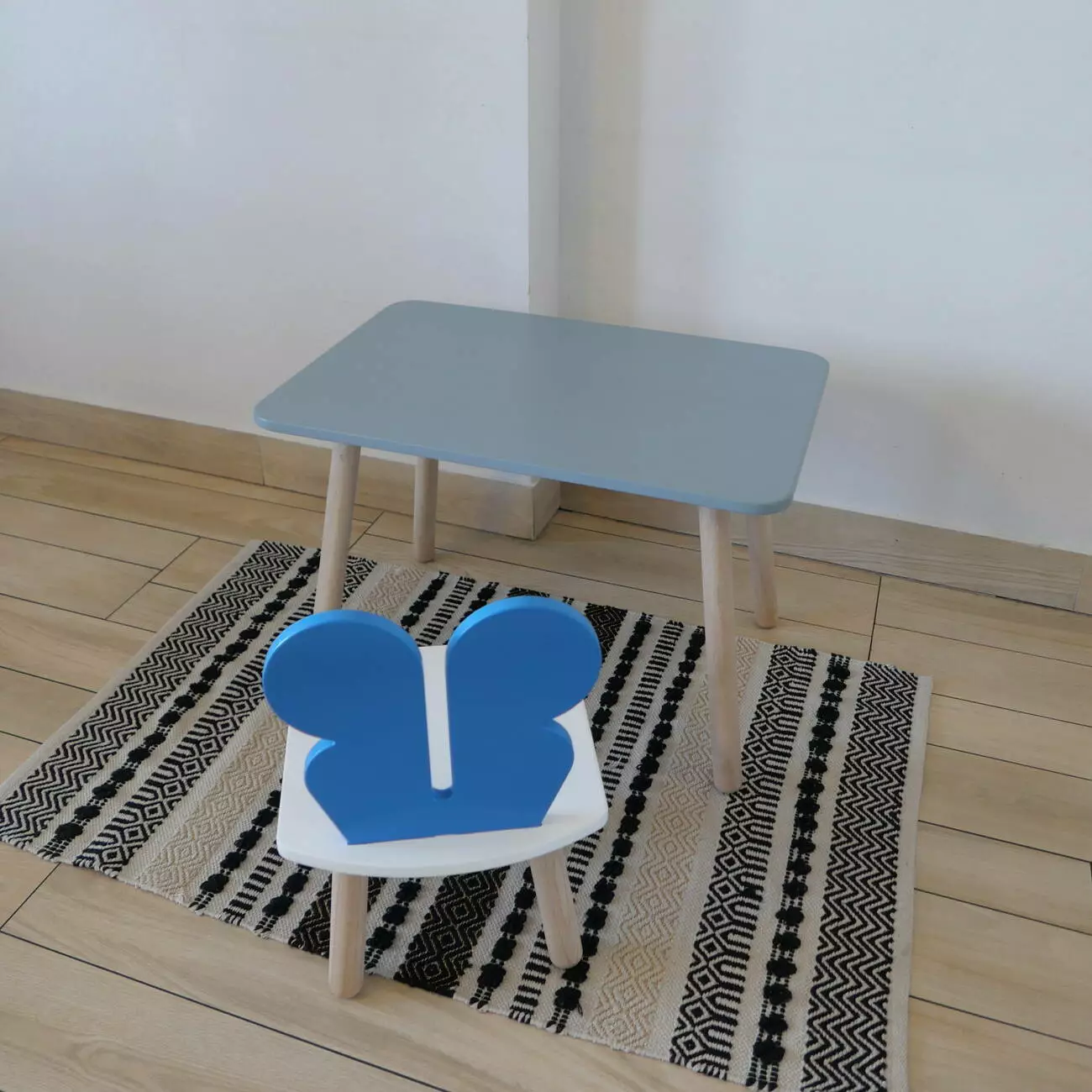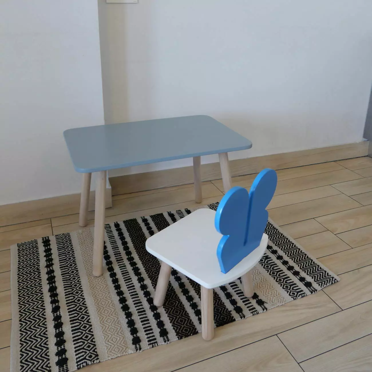 Комплект стіл та стул дитячий ChildWood - Set Стіл сірий прямокутний + стілець білий блакийний Метелик (Фанера)