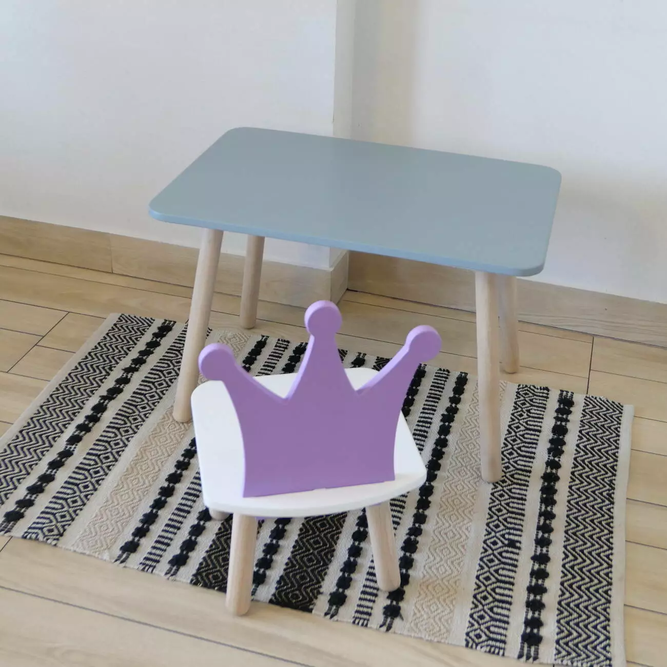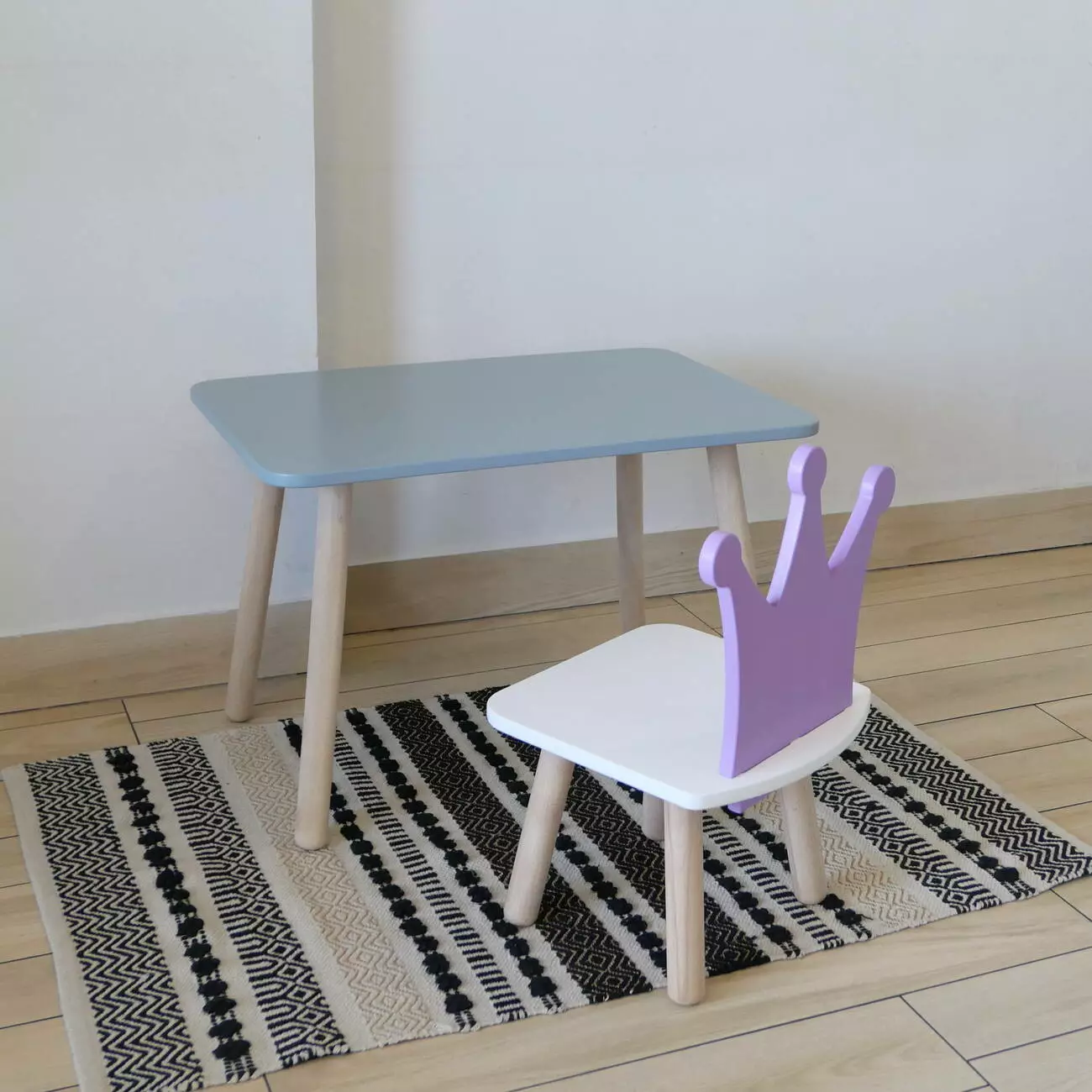 Комплект стіл та стул дитячий ChildWood - Set Стіл сірий прямокутний + стілець білий бузковий Корона (Фанера)