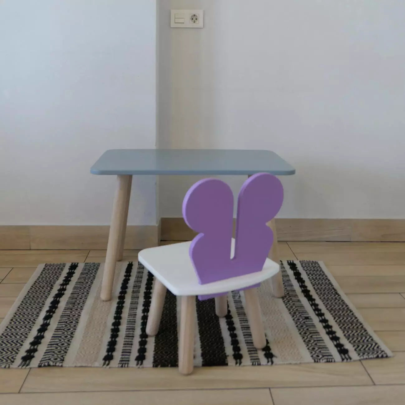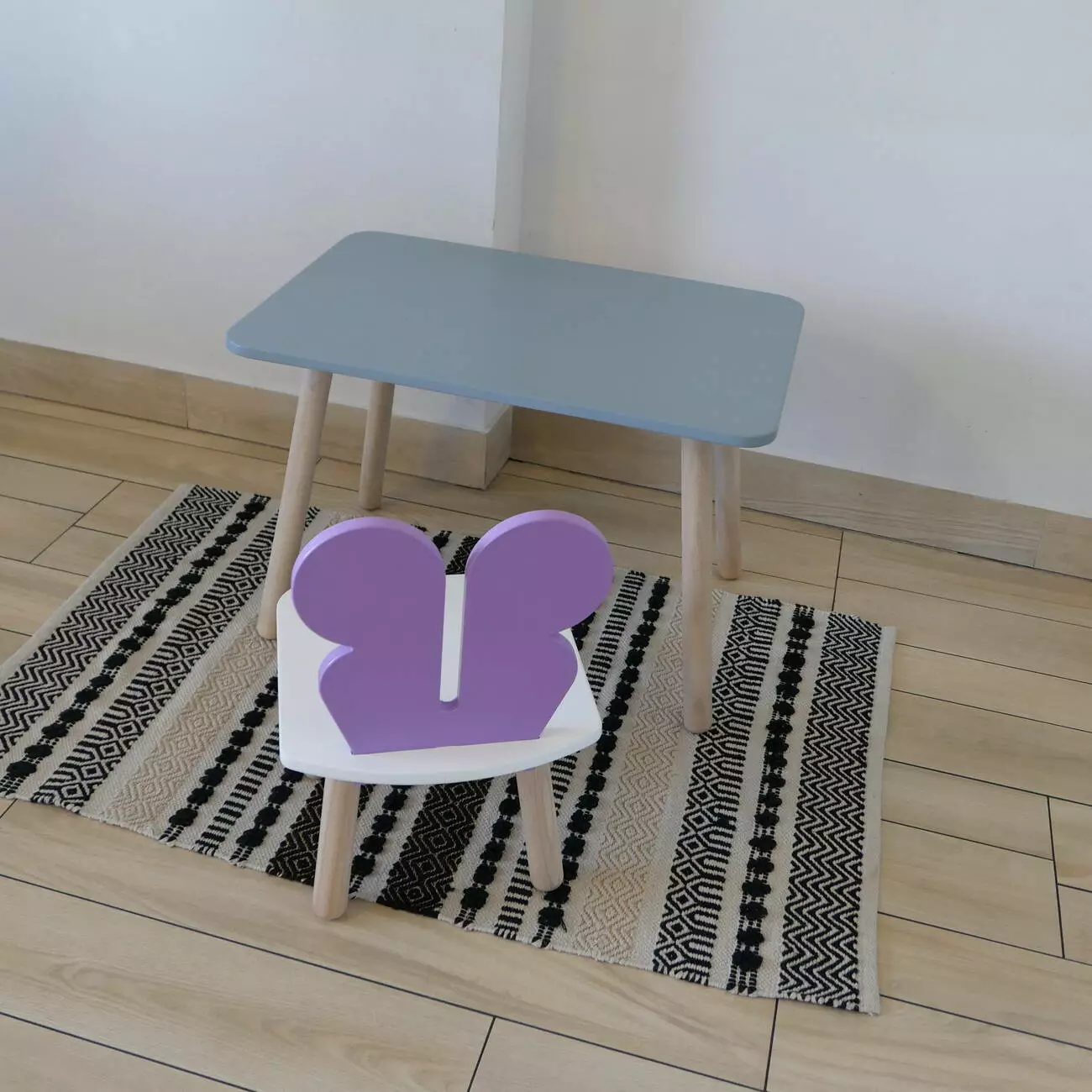 Комплект стіл та стул дитячий ChildWood - Set Стіл сірий прямокутний + стілець білий бузковий Метелик (Фанера)
