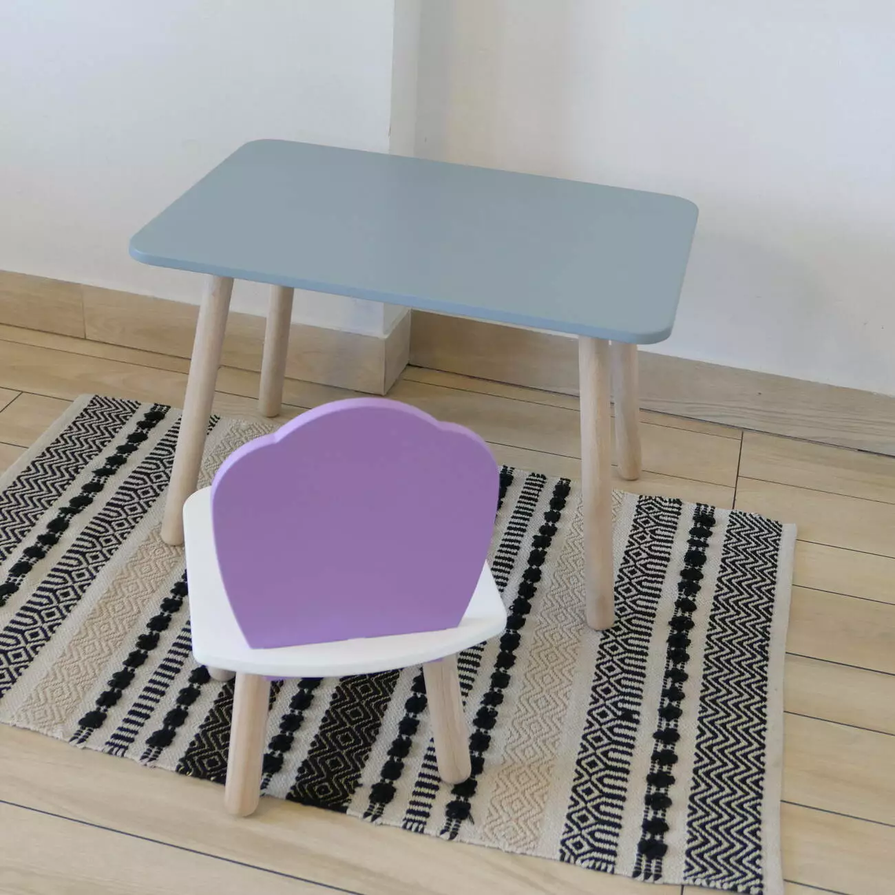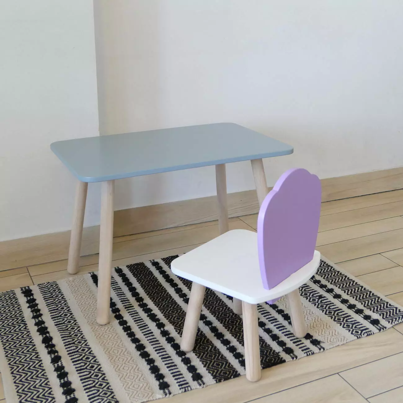 Комплект стіл та стул дитячий ChildWood - Set Стіл сірий прямокутний + стілець білий бузковий Мушля (Фанера)