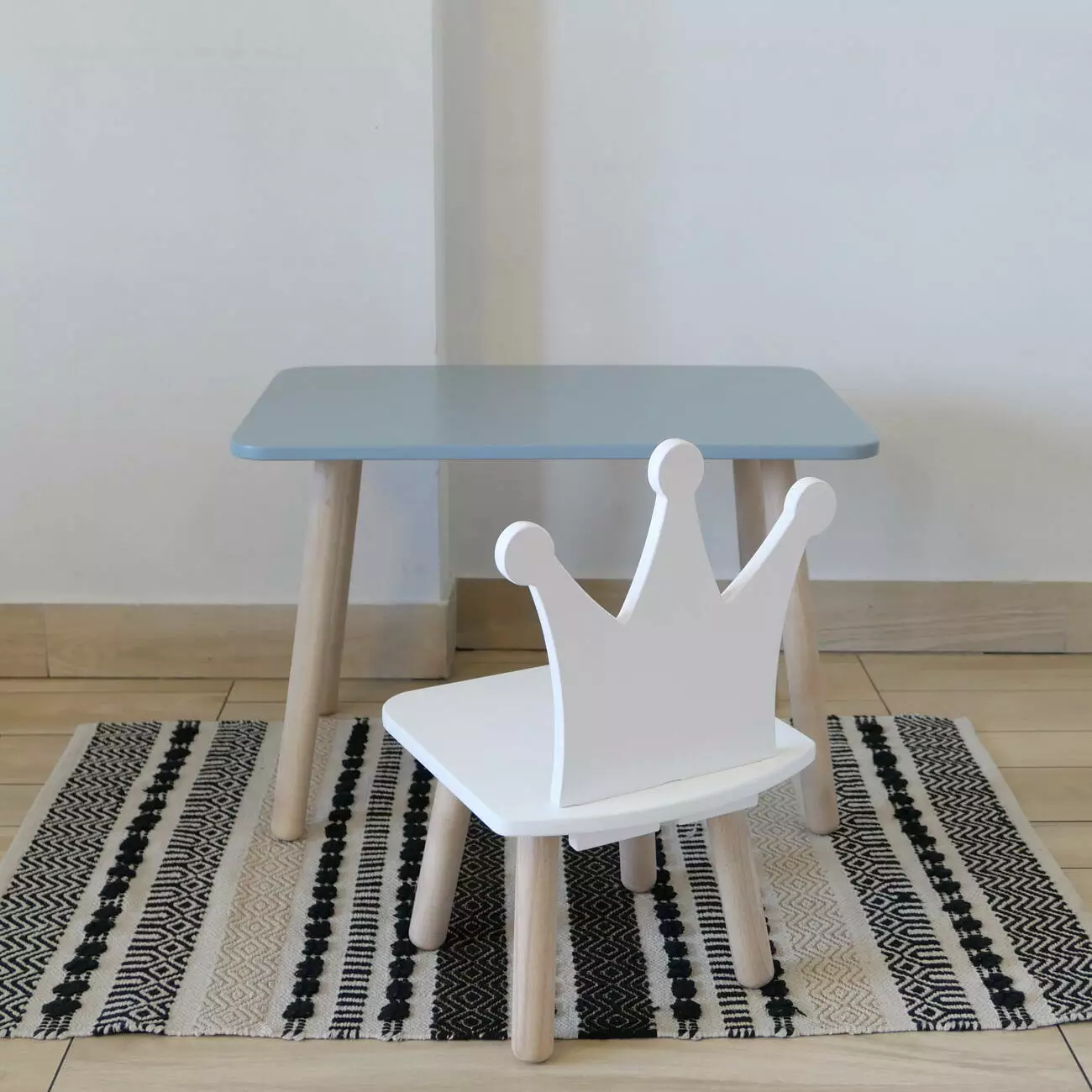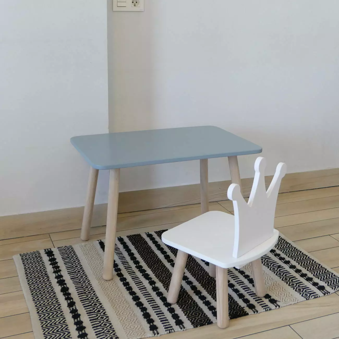Комплект стіл та стул дитячий ChildWood - Set Стіл сірий прямокутний + стілець білий Корона (Фанера)