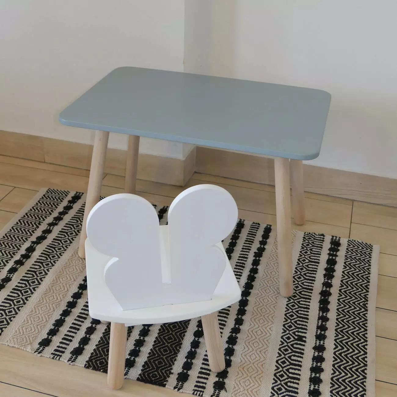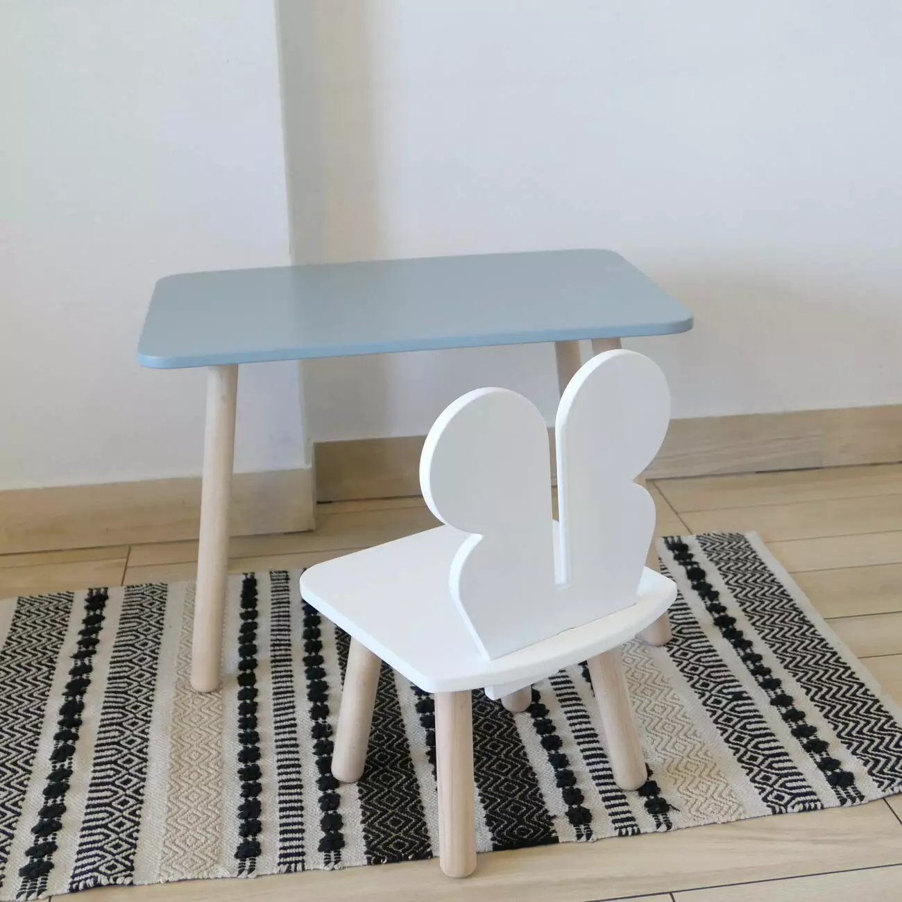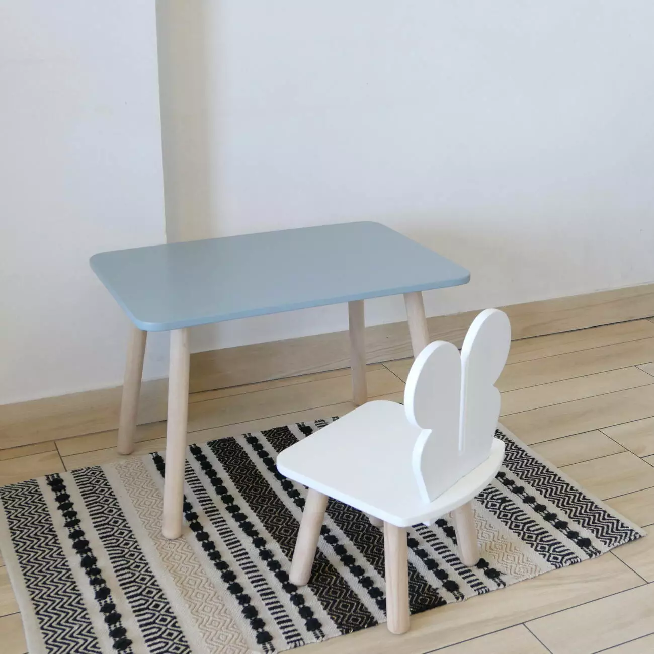 Комплект стіл та стул дитячий ChildWood - Set Стіл сірий прямокутний + стілець білий Метелик (Фанера)