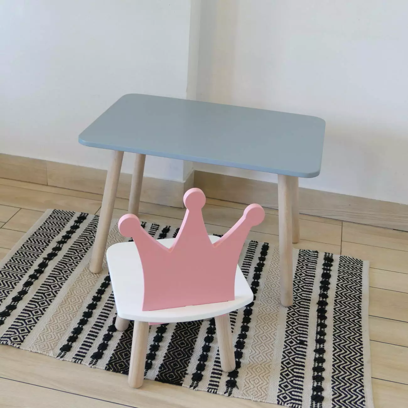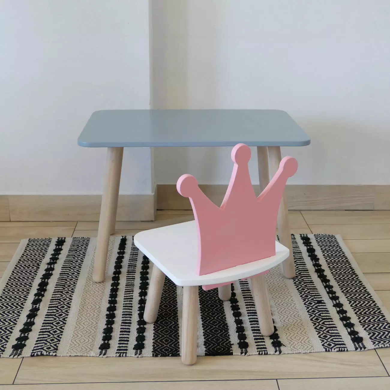 Комплект стіл та стул дитячий ChildWood - Set Стіл сірий прямокутний + стілець білий рожевий Корона (Фанера)