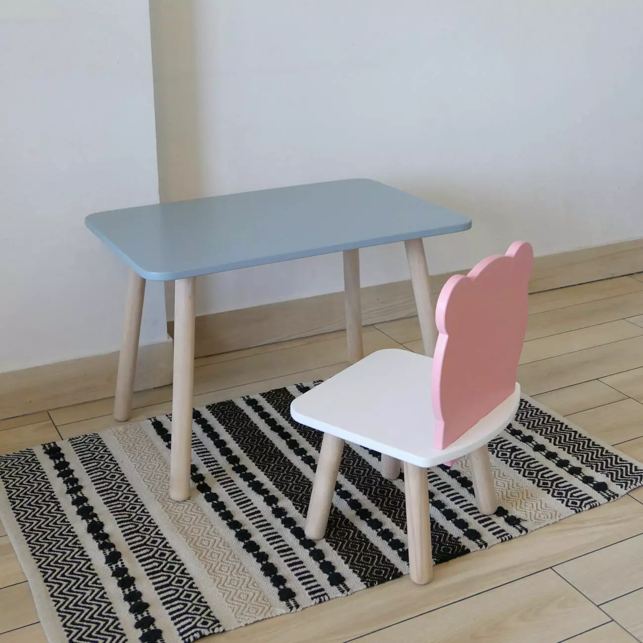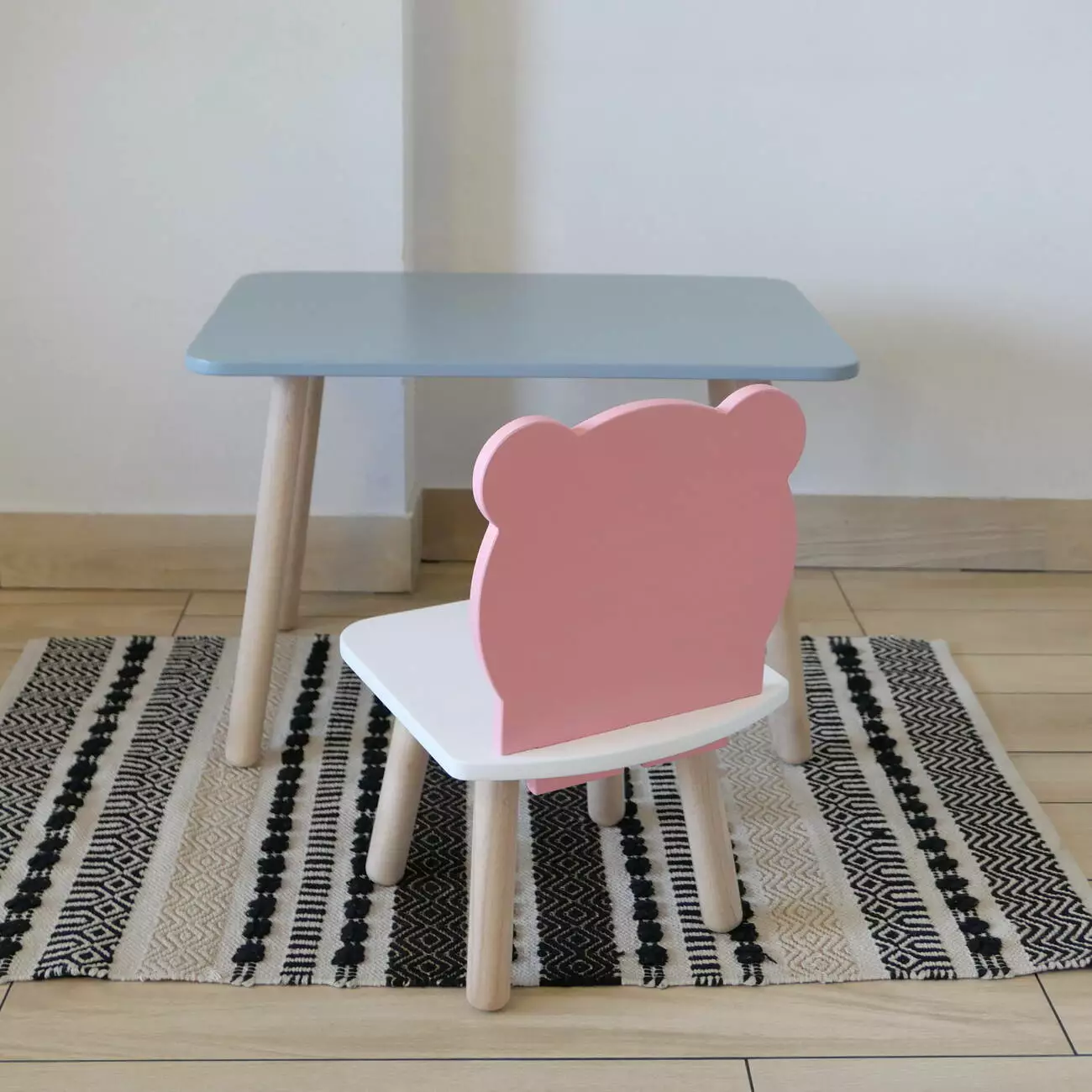 Комплект стіл та стул дитячий ChildWood - Set Стіл сірий прямокутний + стілець білий рожевий Ведмедик (Фанера)