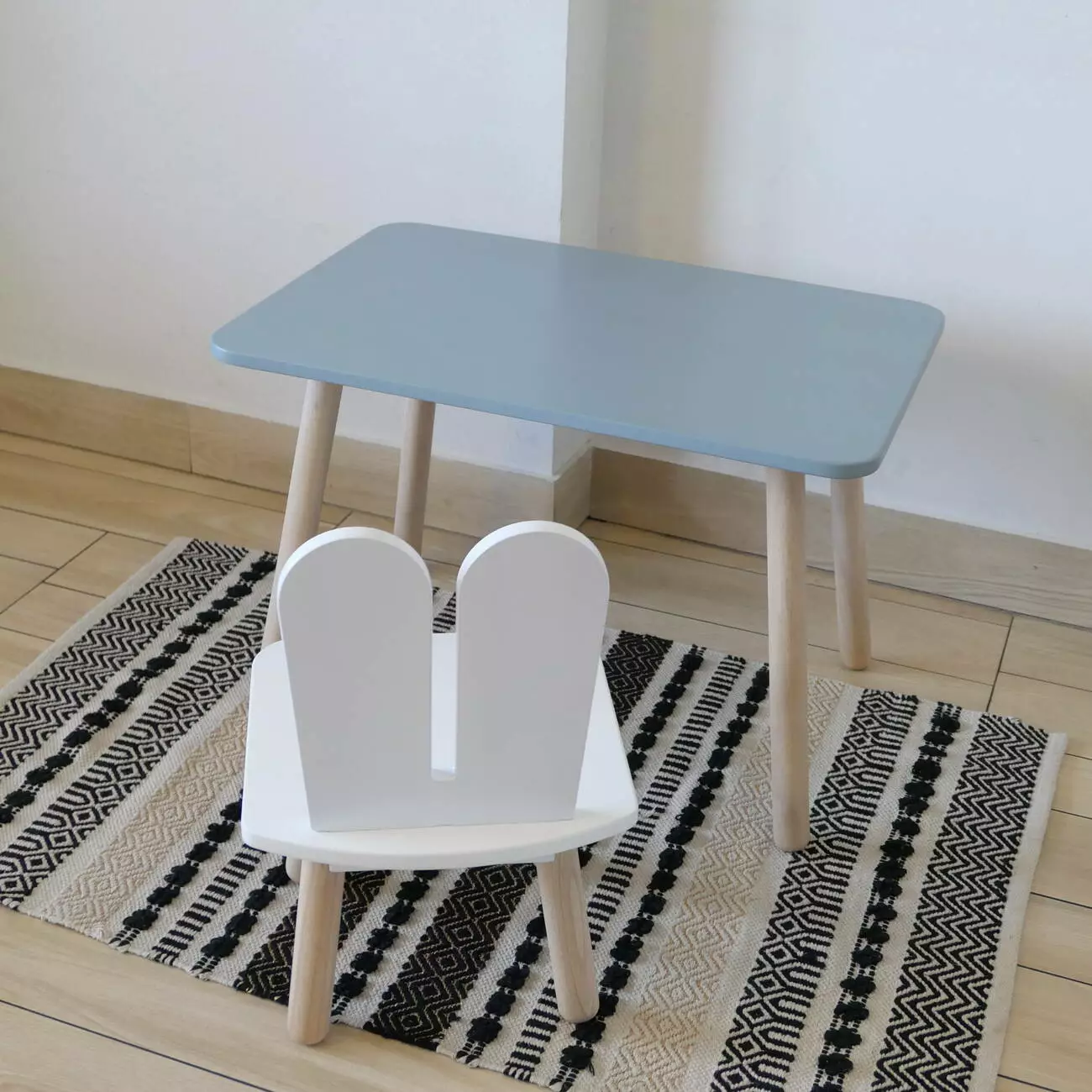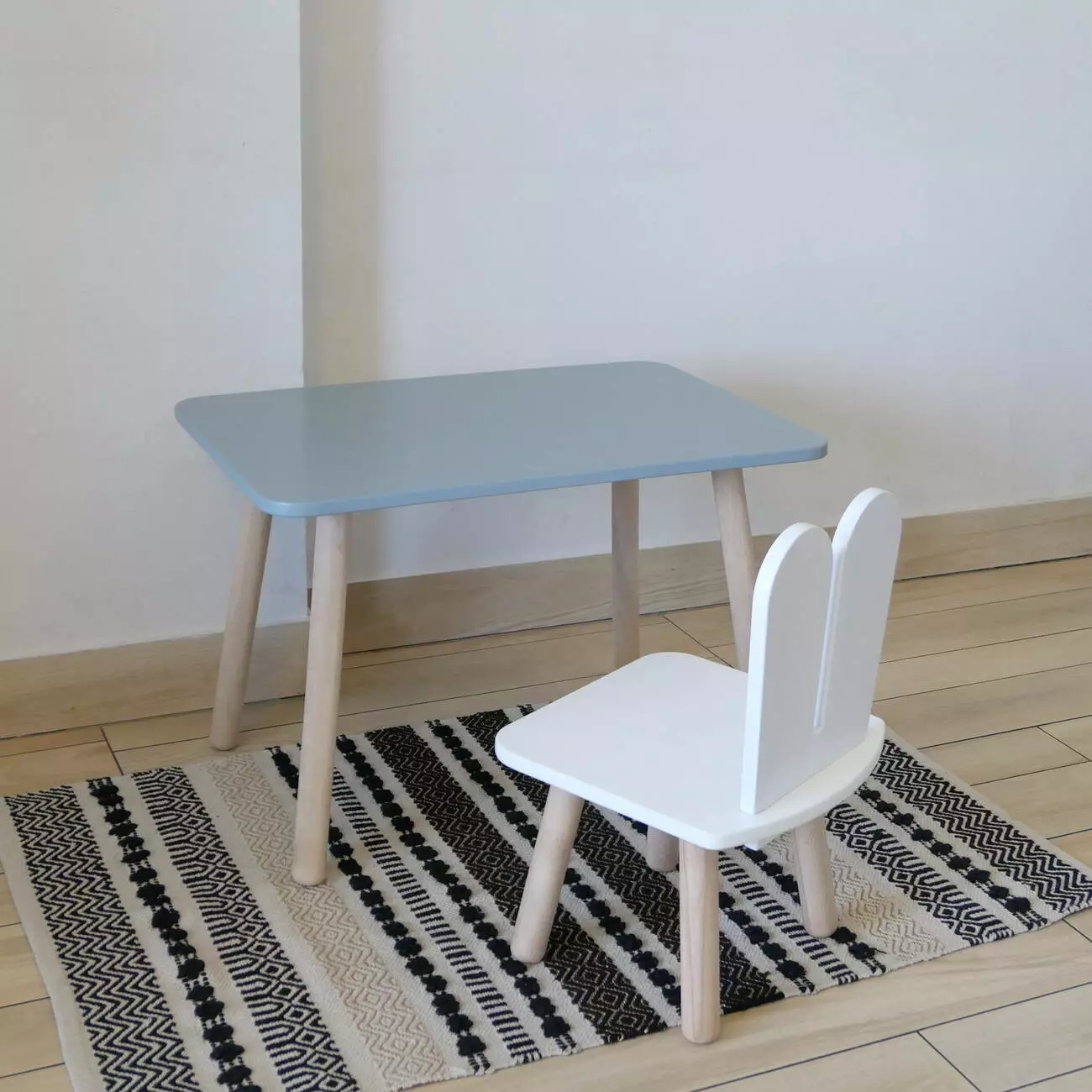 Комплект стіл та стул дитячий ChildWood - Set Стіл сірий прямокутний + стілець білий Зайчик (Фанера)
