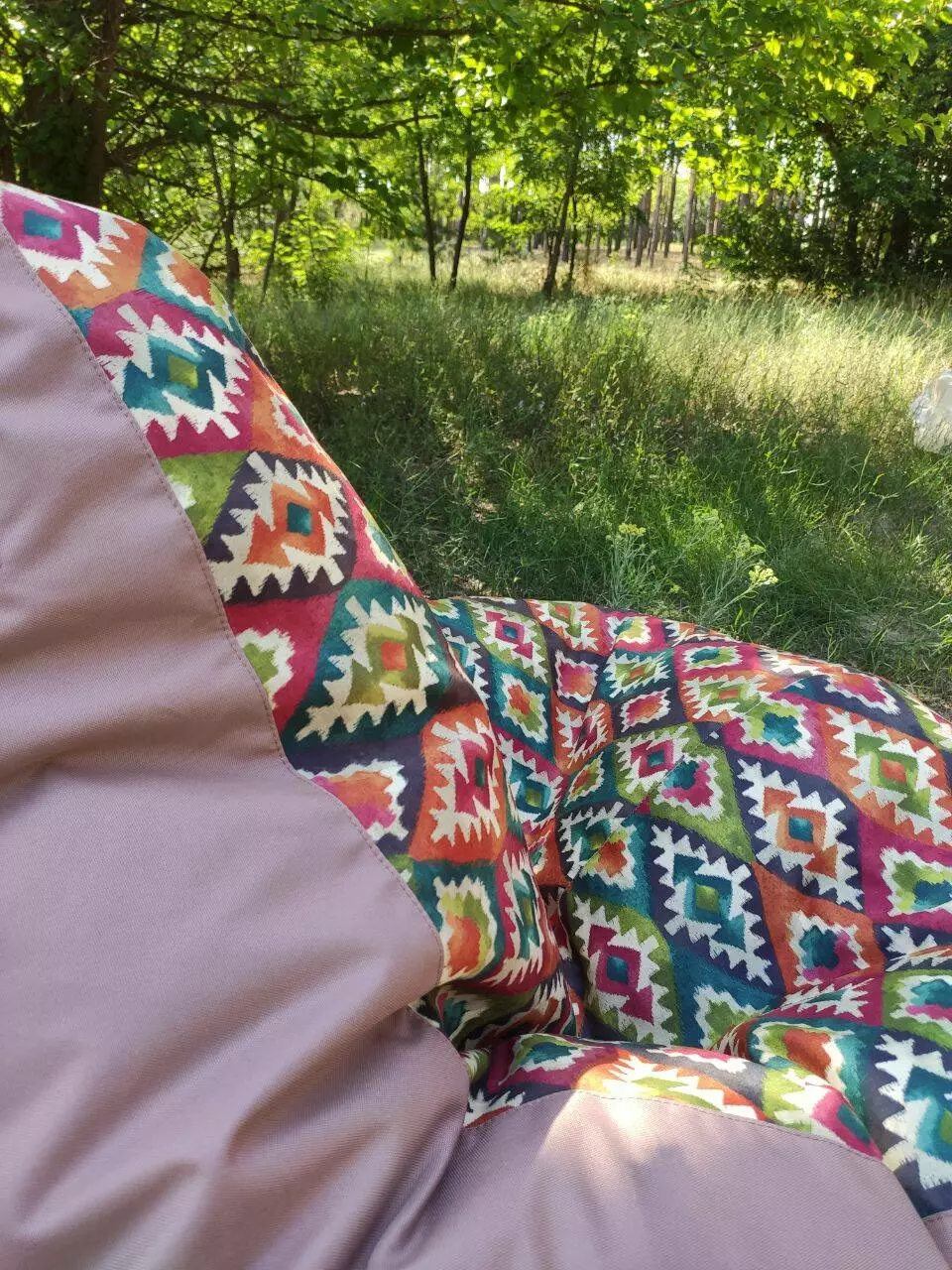 Пуф має ручку для зручного переносу та обов’язково люверси (отвори зверху) для виходу повітря.