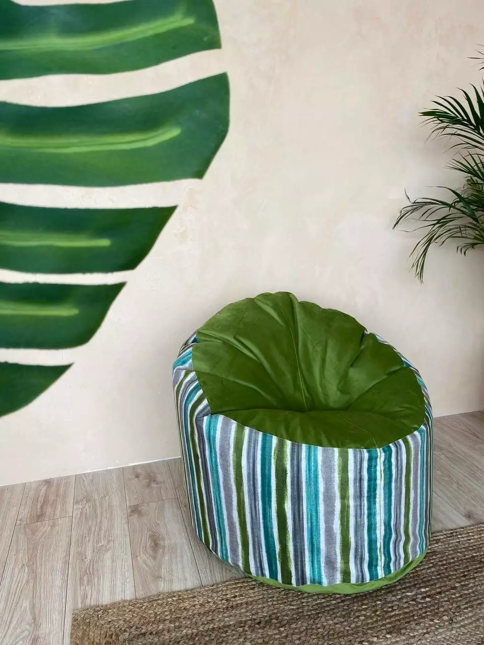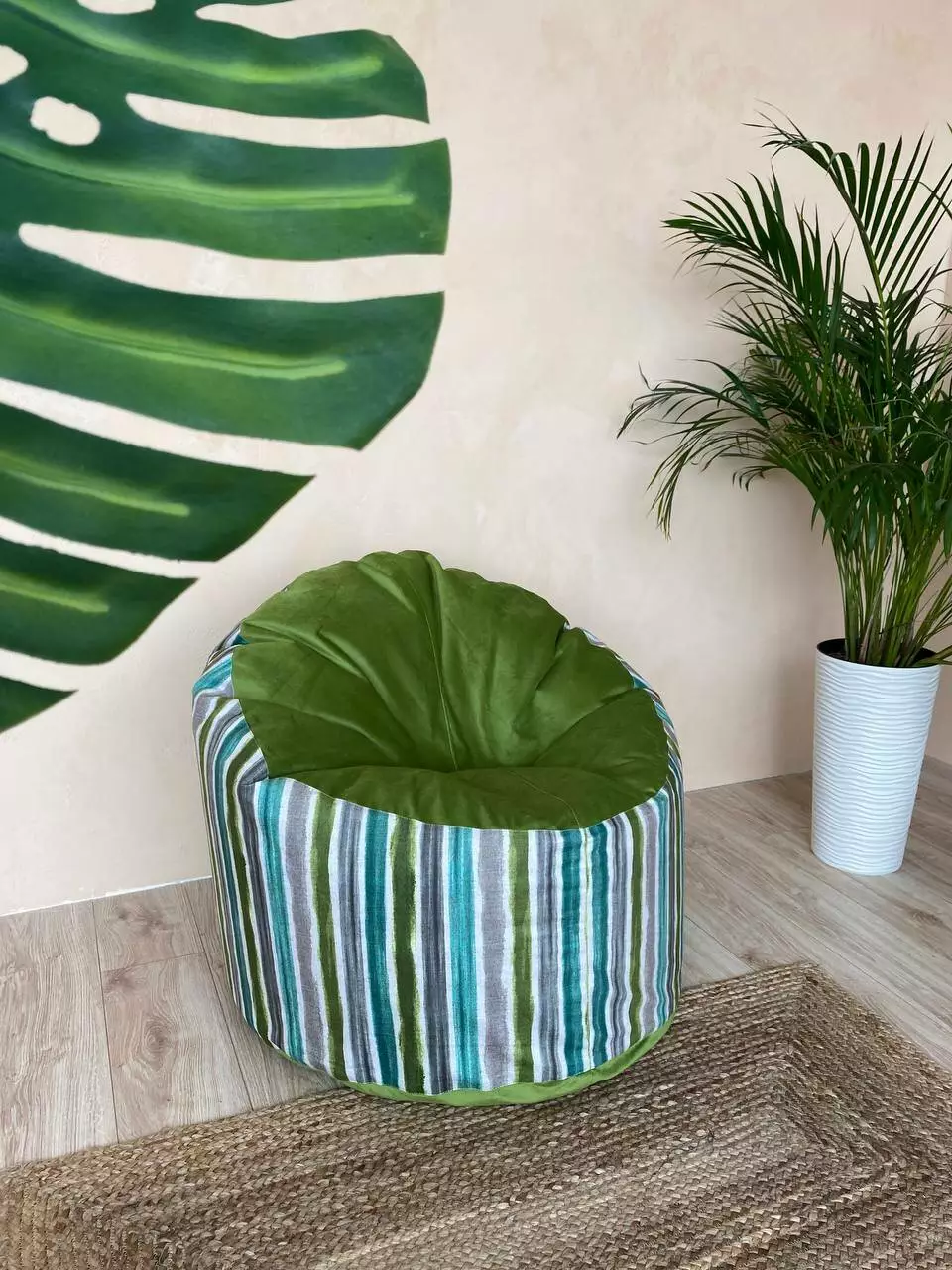 Пуф має ручку для зручного переносу та обов’язково люверси (отвори зверху) для виходу повітря.
