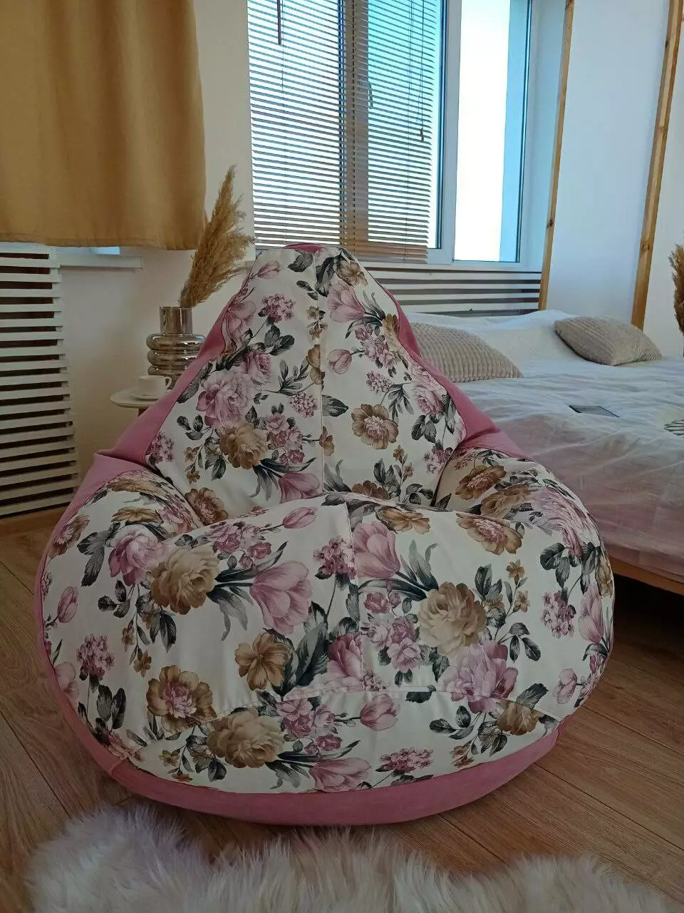 Пуф має ручку для зручного переносу та обов’язково люверси (отвори зверху) для виходу повітря.