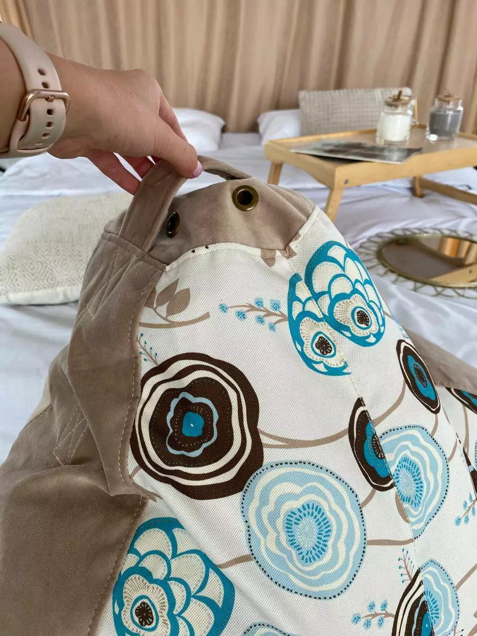 Пуф має ручку для зручного переносу та обов’язково люверси (отвори зверху) для виходу повітря.