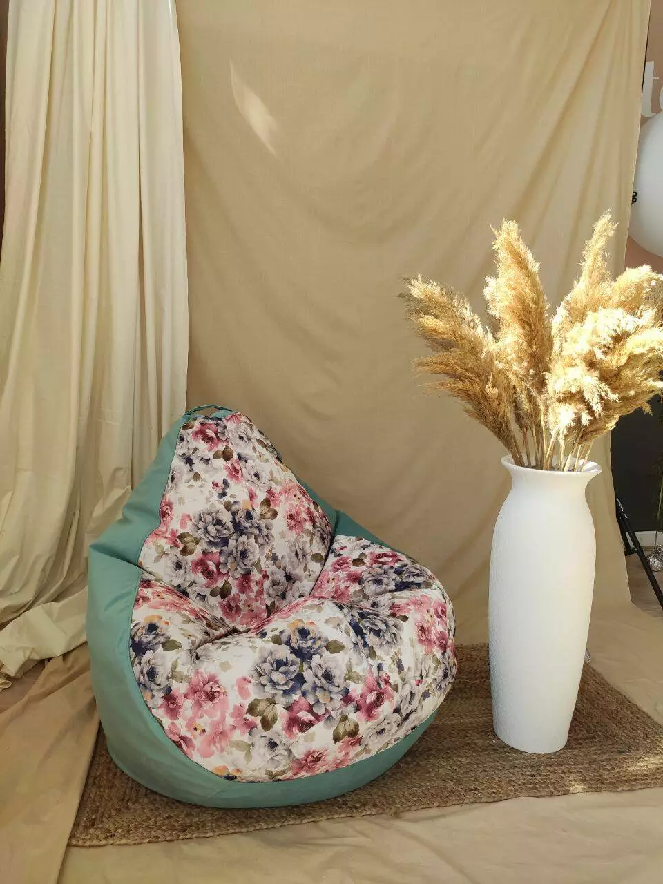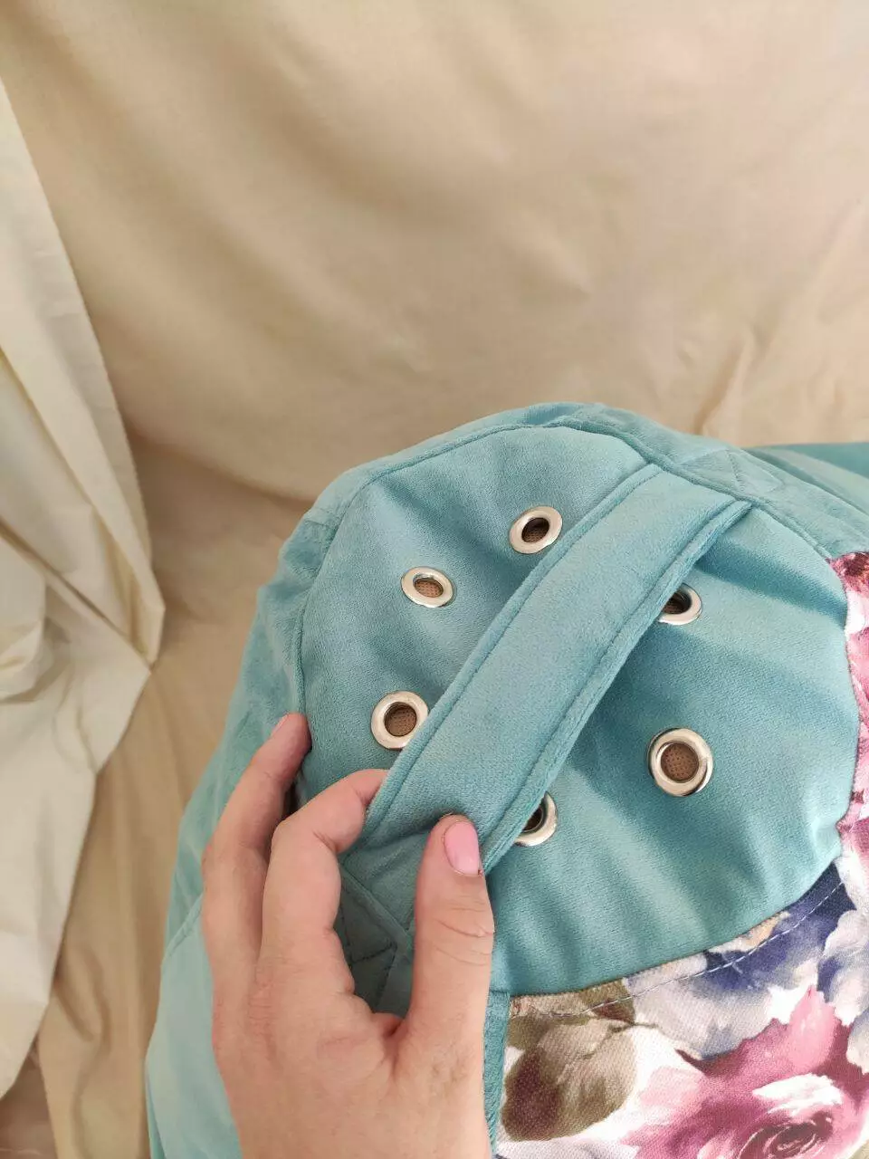 Пуф має ручку для зручного переносу та обов’язково люверси (отвори зверху) для виходу повітря.