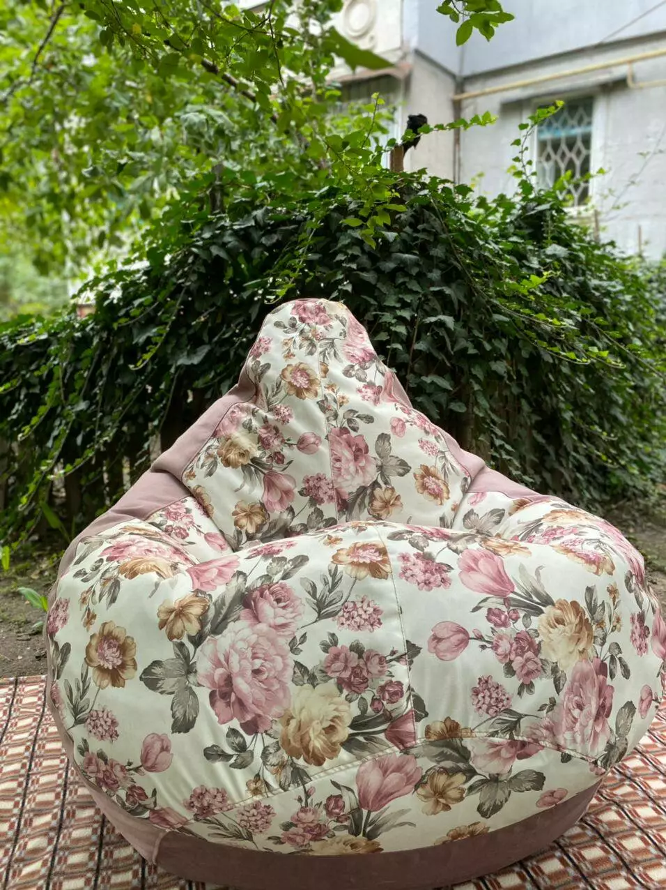 Пуф має ручку для зручного переносу та обов’язково люверси (отвори зверху) для виходу повітря.