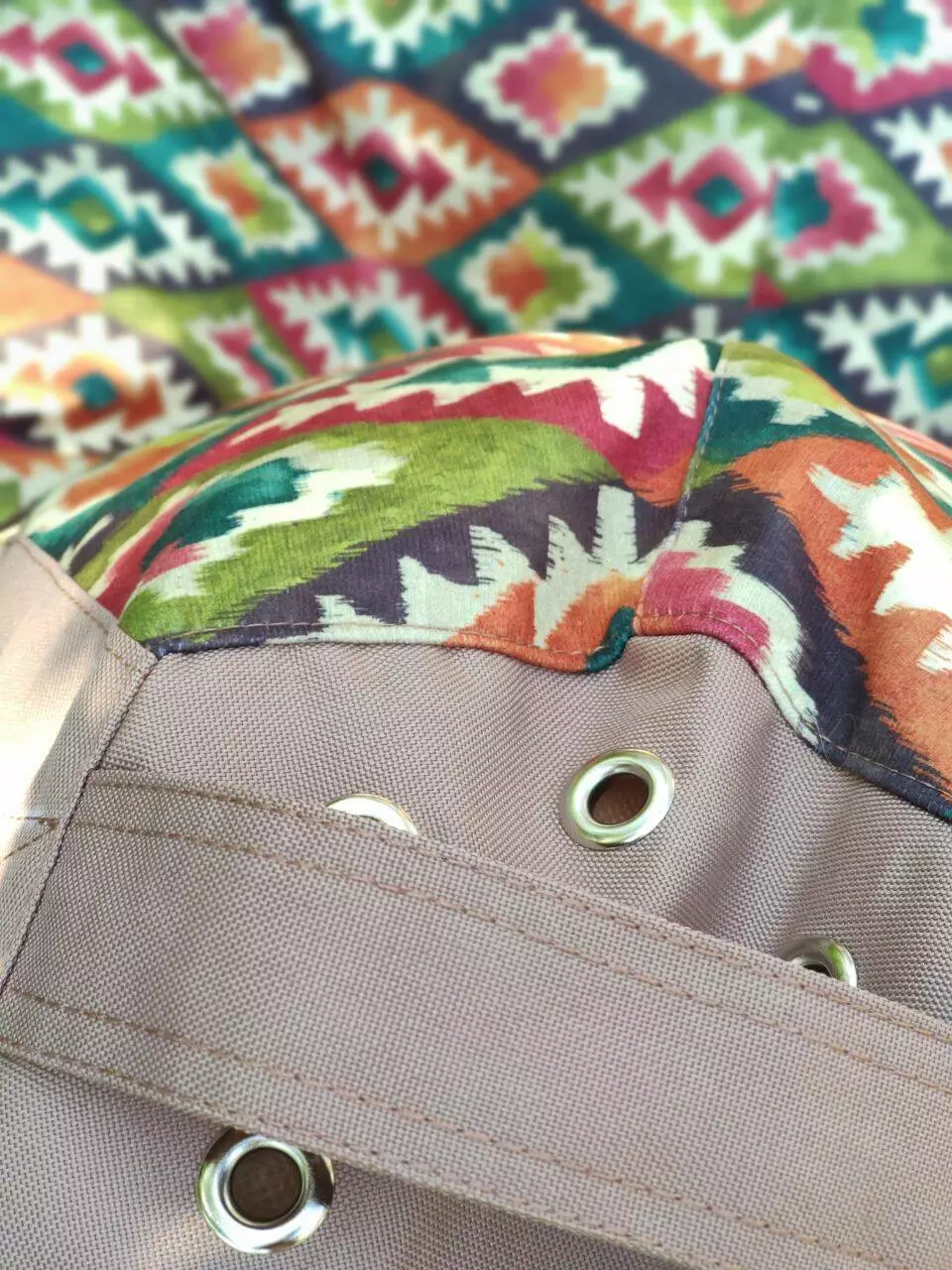 Пуф має ручку для зручного переносу та обов’язково люверси (отвори зверху) для виходу повітря.