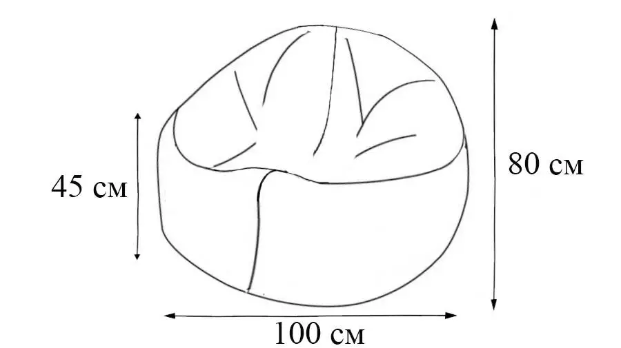 Діаметр 100 сантиметрів. Один з найкомфортніших і найгарніших форм пуфів.