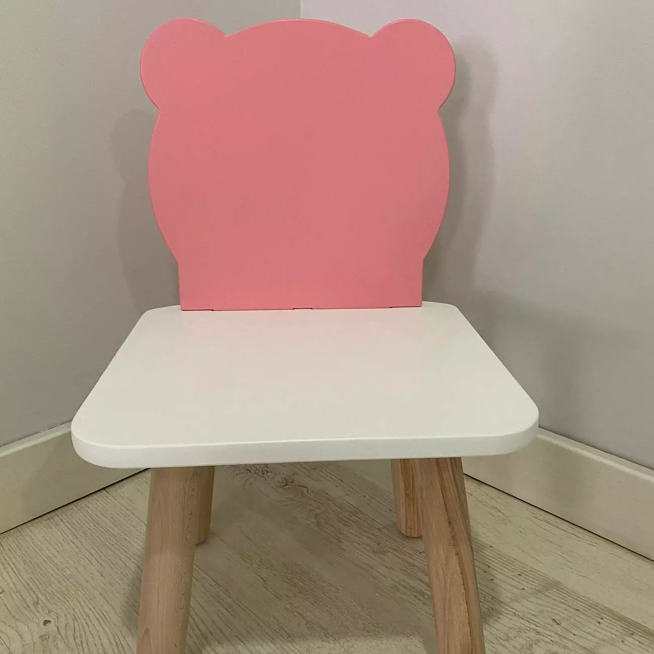 Стульчик дитячий ChildWood ведмедик рожевий+білий Kids Dream (Фанера)